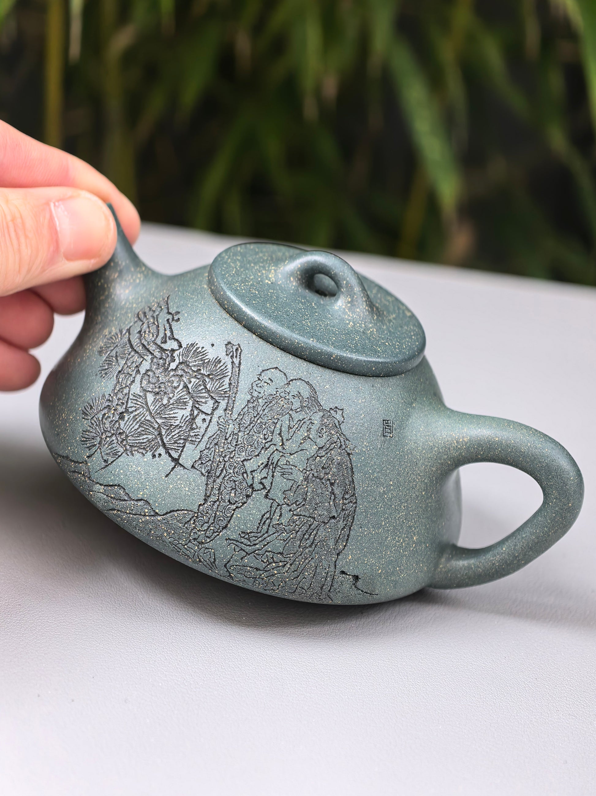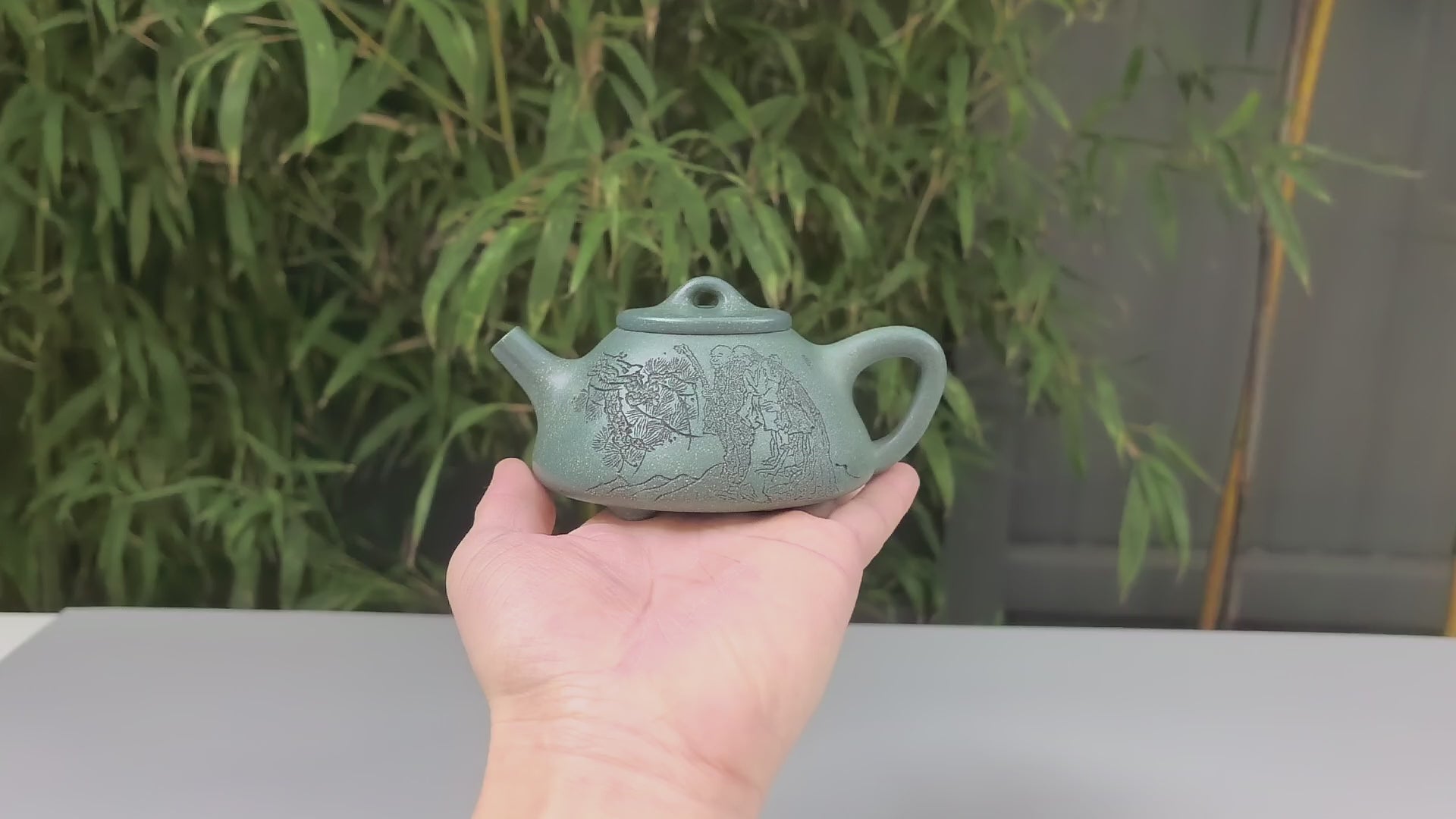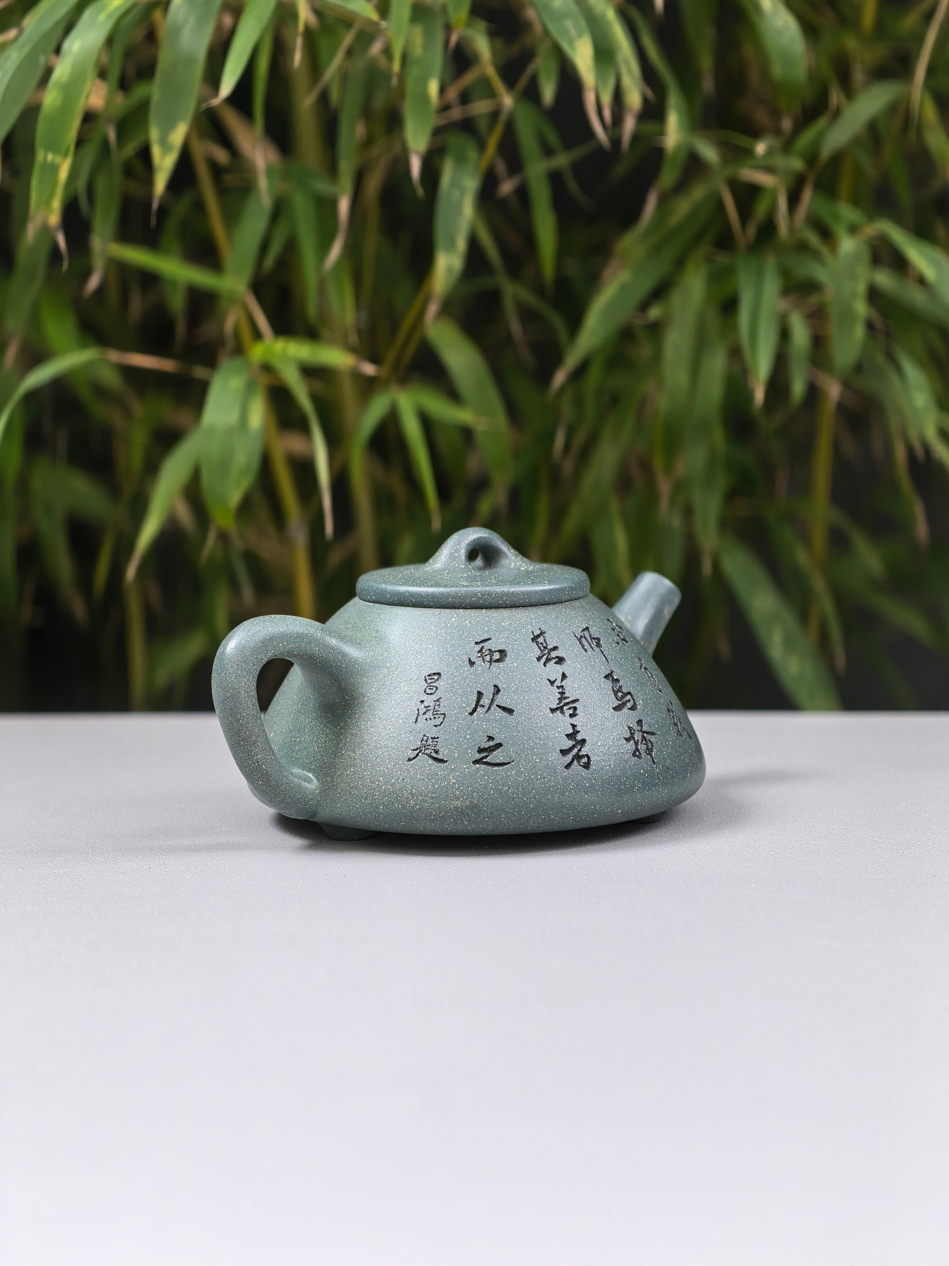 李昌鸿福利🧧紫砂泰斗传承·双国大师匠心之作【子冶石瓢壶】家藏景舟雪华绿泥 175cc
