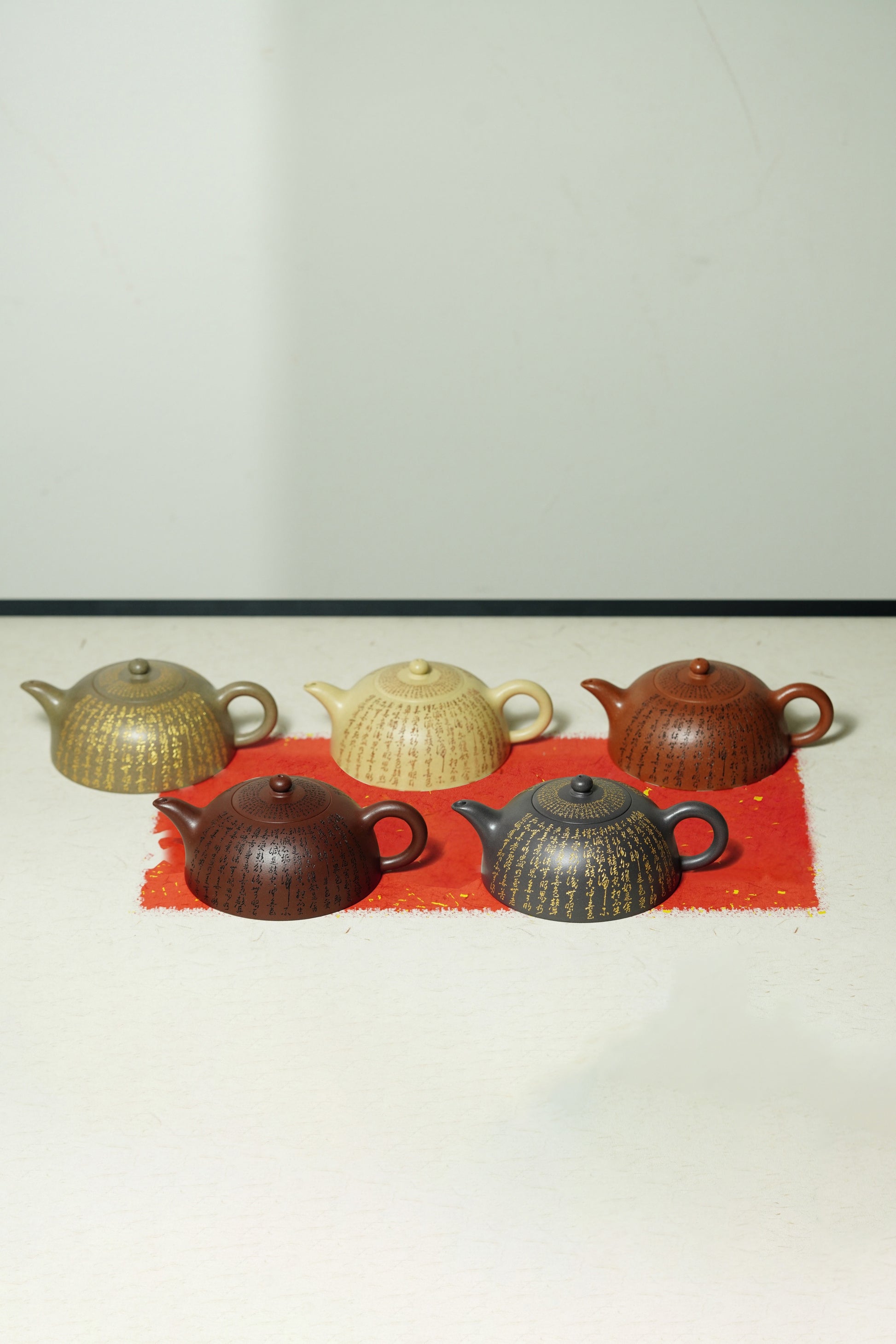 郑求标大师三心经《心经半月壶》五色土一套 紫砂心经刻绘泰斗·郑求标亲工