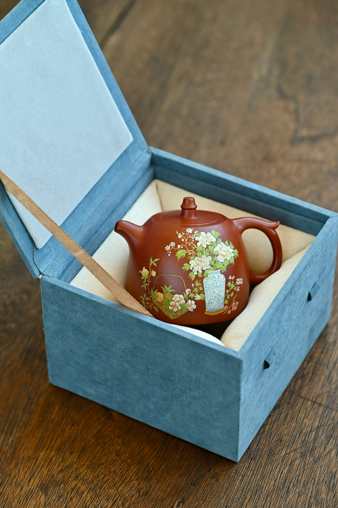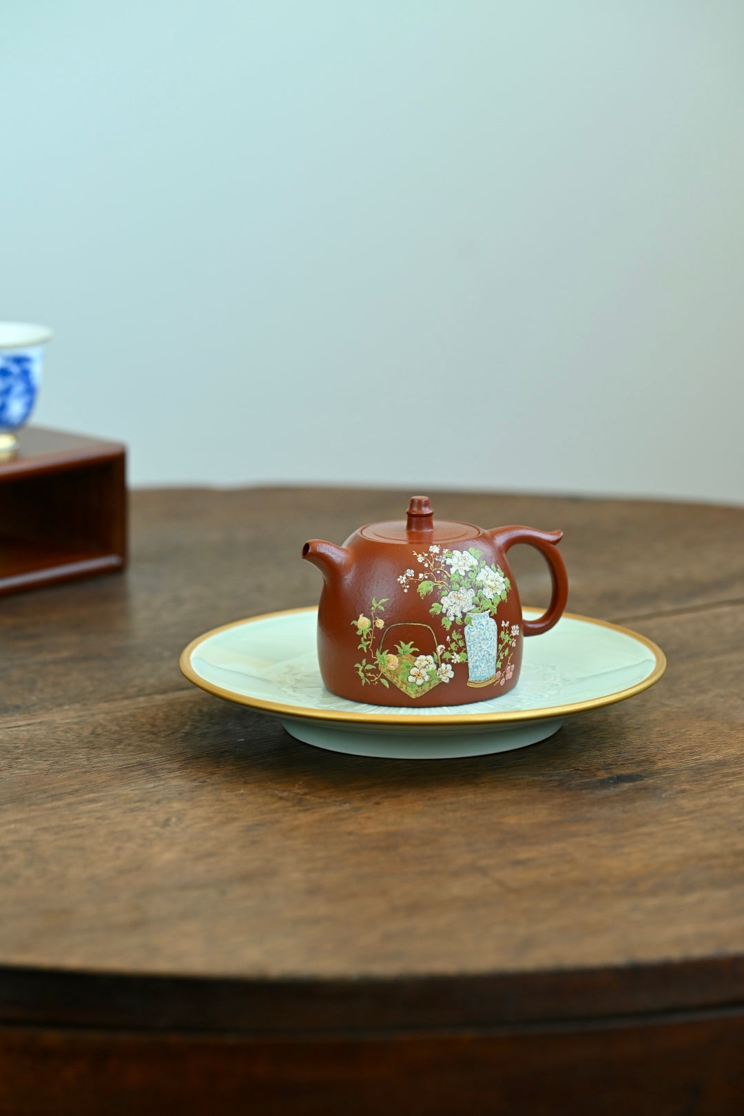 壶身线条体现出平和清净,无为之韵。汲水思源乃此壶蕴含的人文意识,方圆周正是此壶酝酿的视觉美感。精巧不失典雅,灵妙天然。