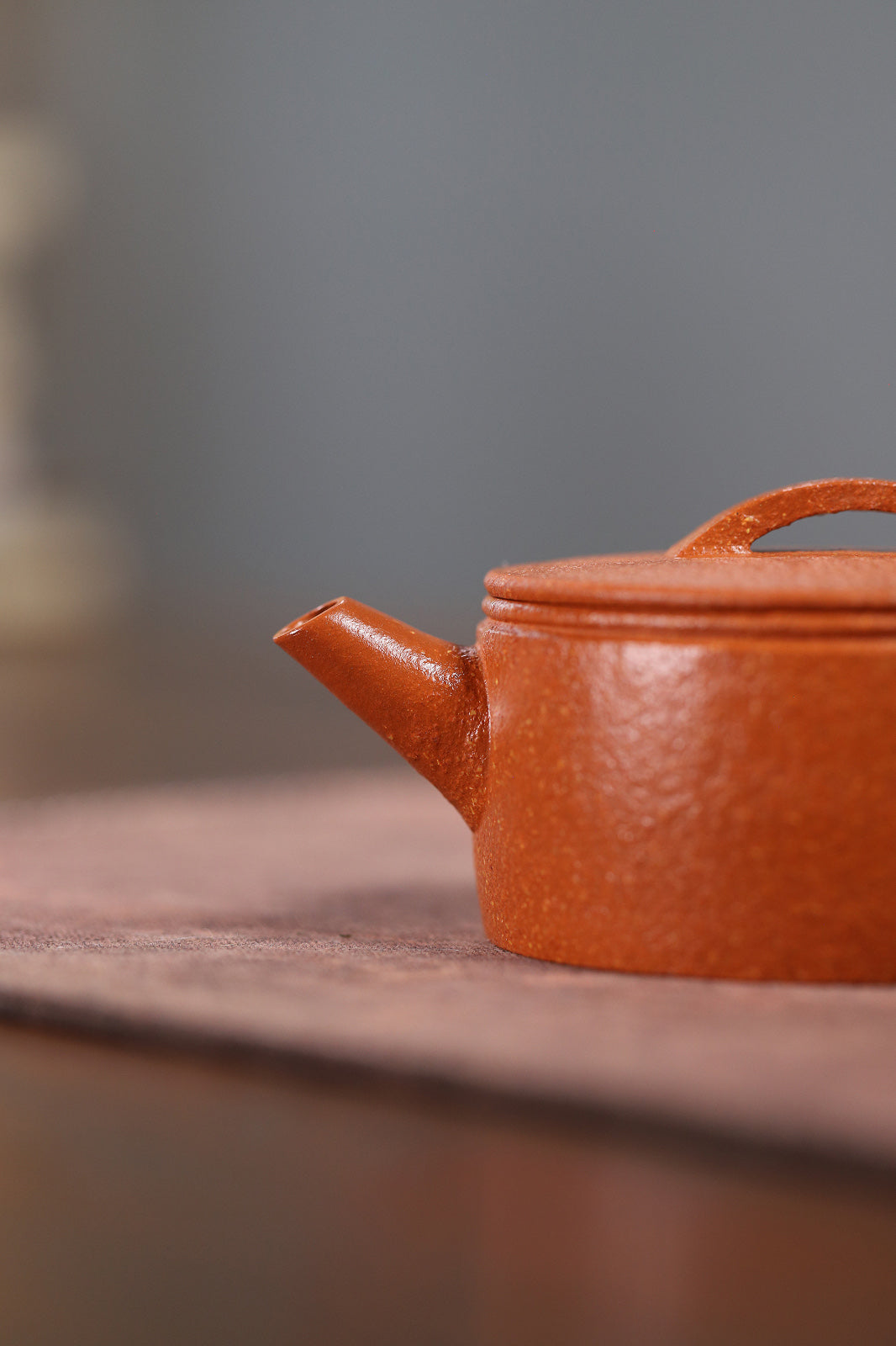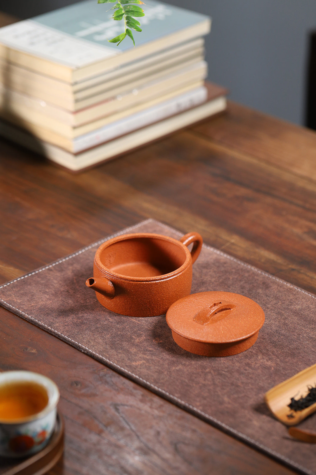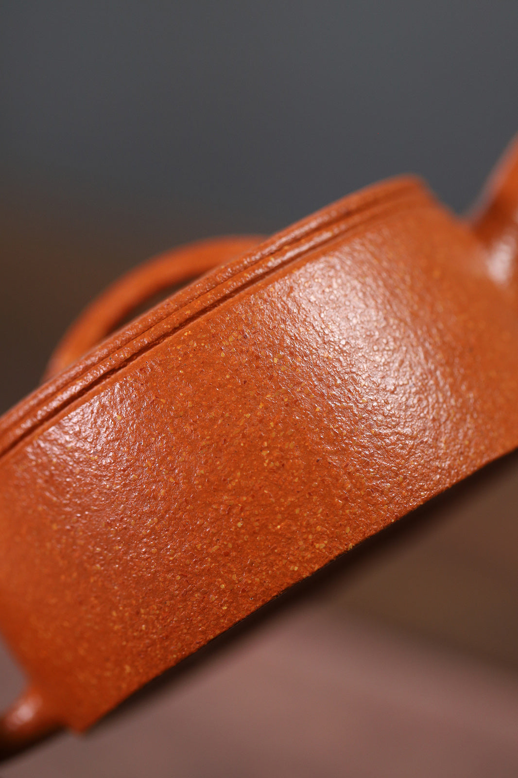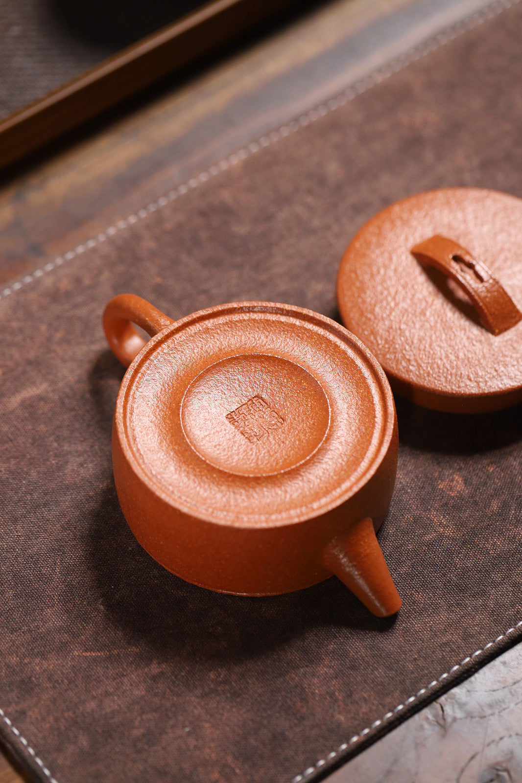 澄炼如金!砂色凝润如脂,大水潭冷金黄段泥蕴藏于黄石石英岩层下部,离地面约30米左右,原矿呈现淡绿色,表面有水锈蚀斑,带少量红色朱泥斑纹。熟泥可塑性较好,砂质感与粘酥都比较适宜成型,烧成温度1160℃呈现金黄灿色,极其罕见。明代周高起在他著的《阳羡茗壶系》书中记载,命名冷金黄。纵观明清传世的紫砂作品中,也偶然见到冷金黄砂色作品,能达到冷金黄砂色的品级非常难得