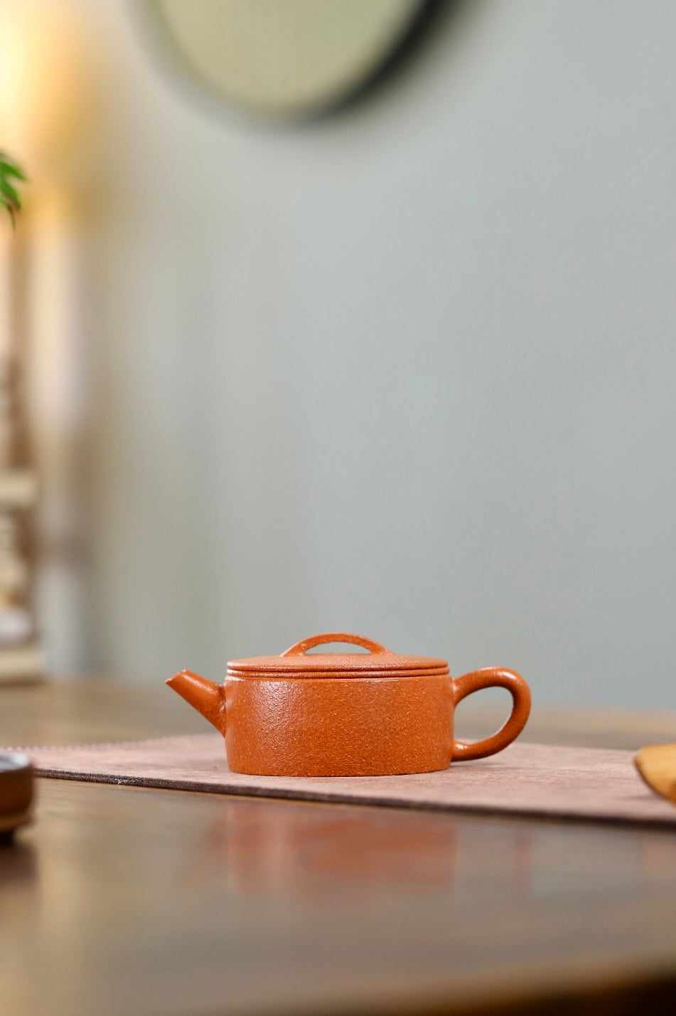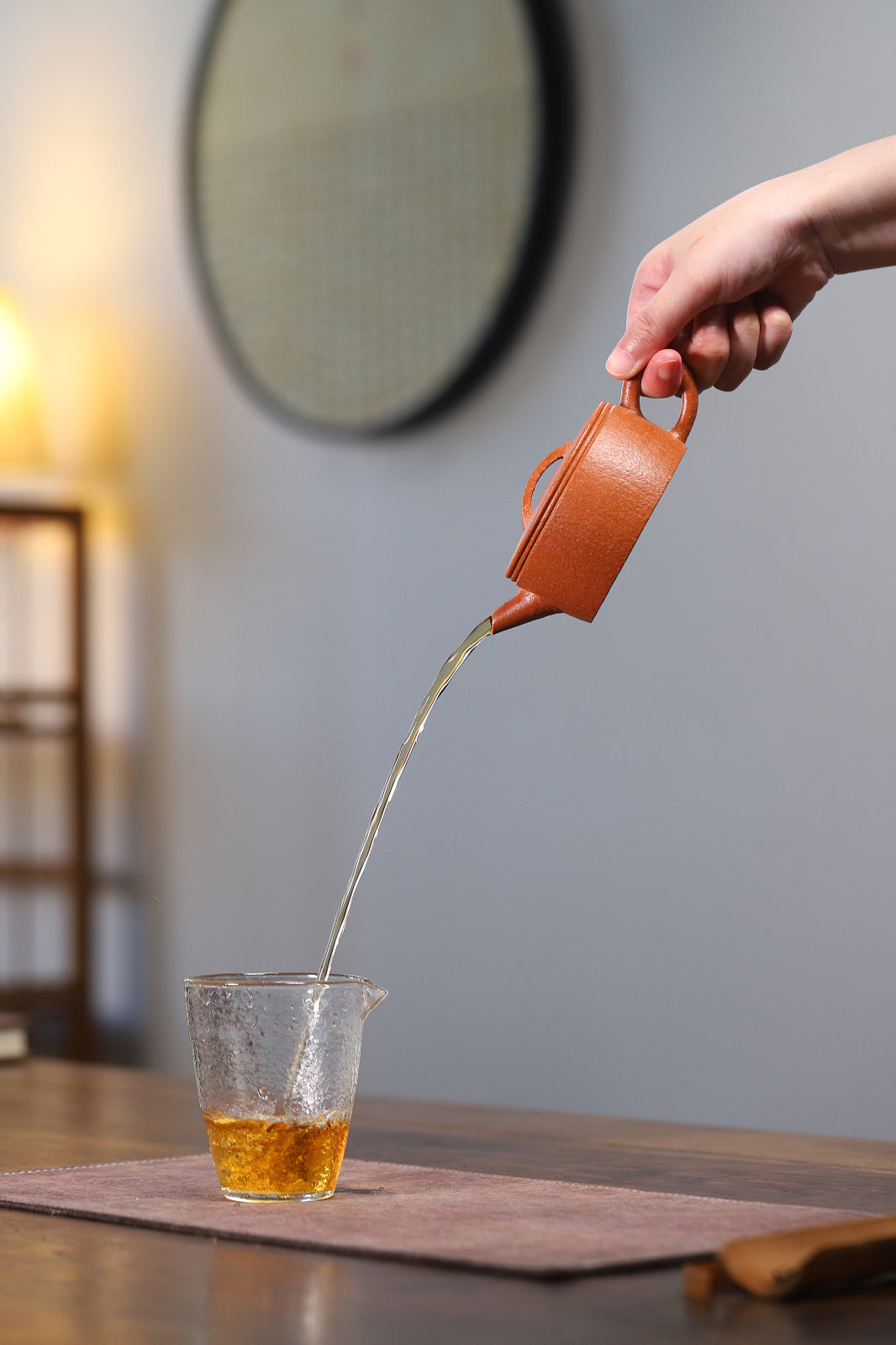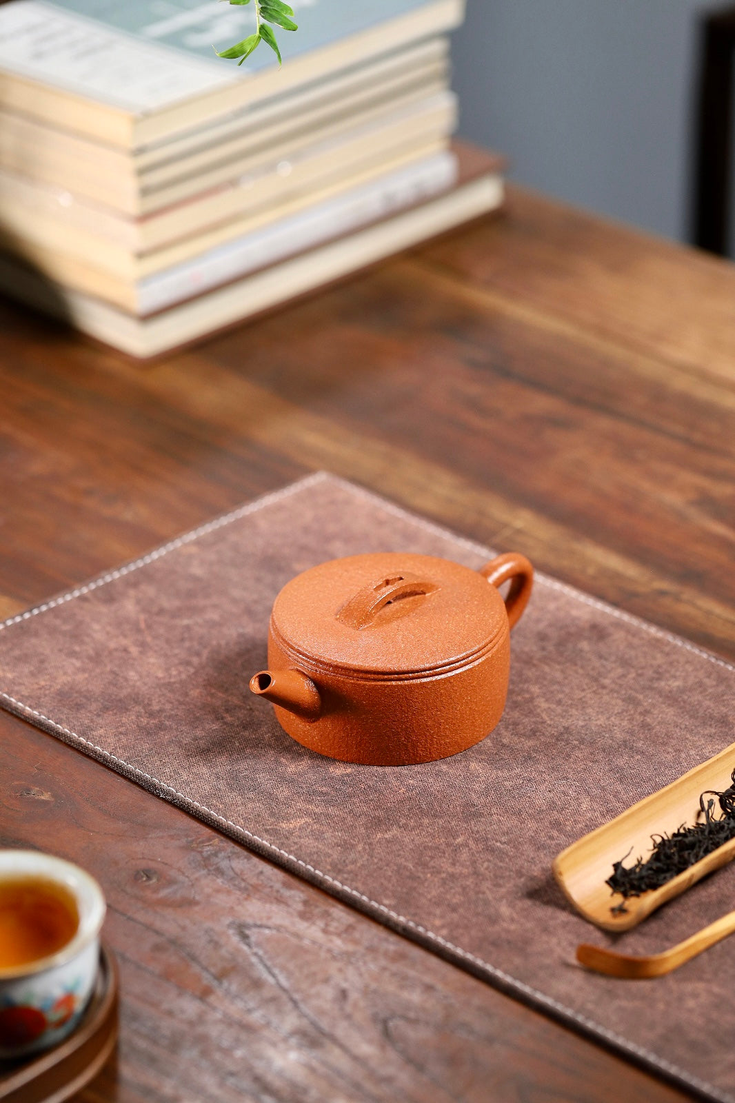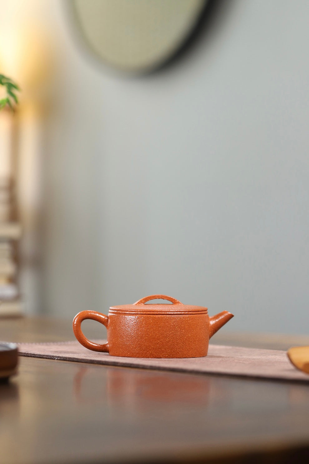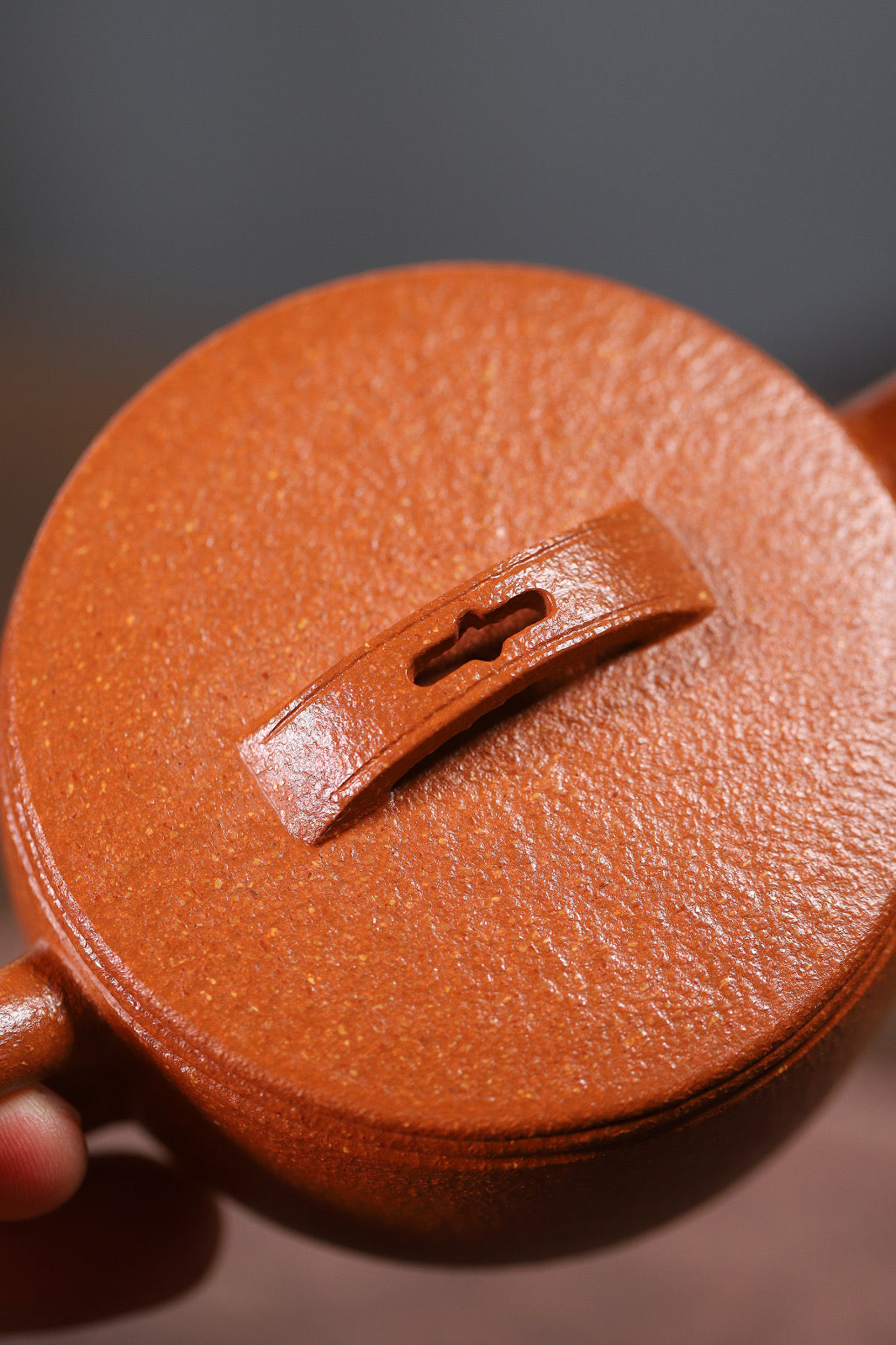 澄炼如金!砂色凝润如脂,大水潭冷金黄段泥蕴藏于黄石石英岩层下部,离地面约30米左右,原矿呈现淡绿色,表面有水锈蚀斑,带少量红色朱泥斑纹。熟泥可塑性较好,砂质感与粘酥都比较适宜成型,烧成温度1160℃呈现金黄灿色,极其罕见。明代周高起在他著的《阳羡茗壶系》书中记载,命名冷金黄。纵观明清传世的紫砂作品中,也偶然见到冷金黄砂色作品,能达到冷金黄砂色的品级非常难得