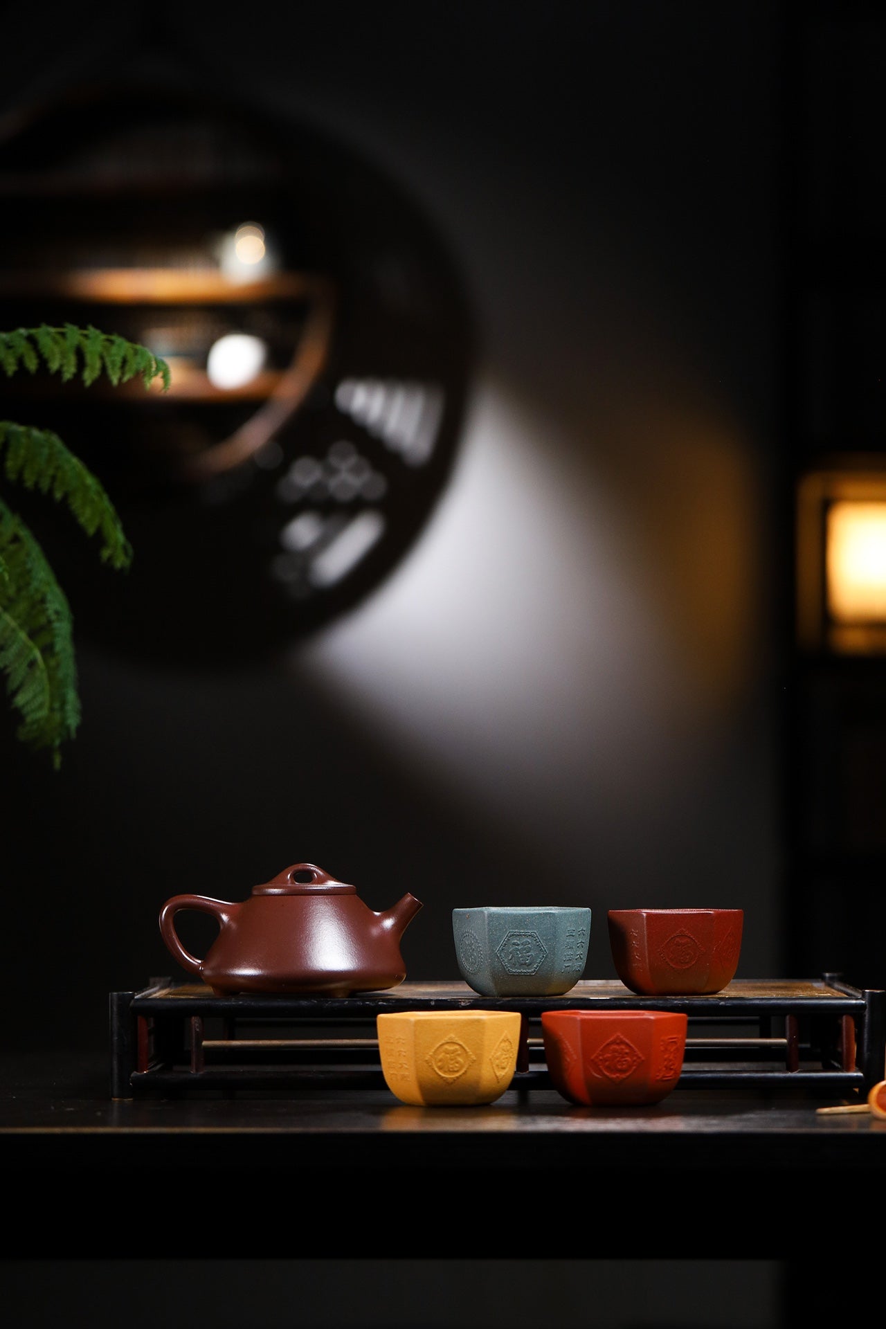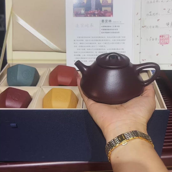 套装福利【石瓢套装一壶四杯】泥料 壶80目老紫泥