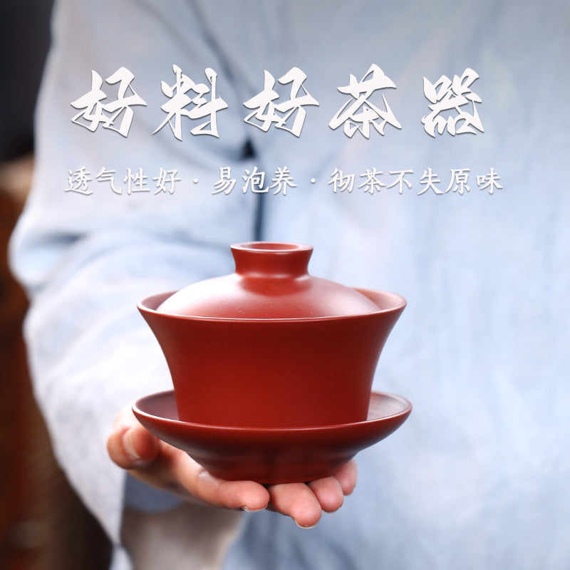 宜兴原矿紫砂180CC/260CC茶具大红袍盖碗陶瓷批发大容量喝水杯配件泡茶器