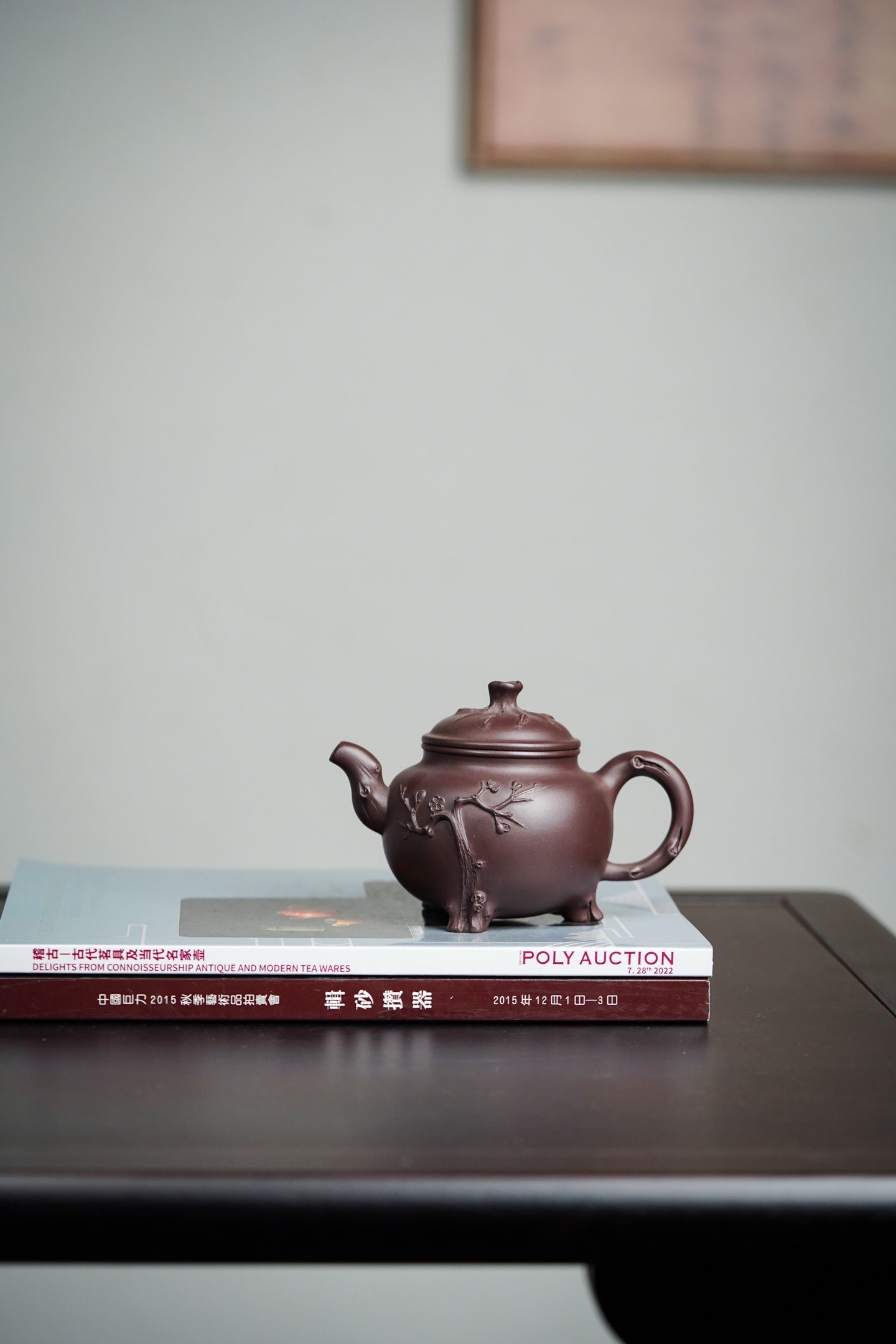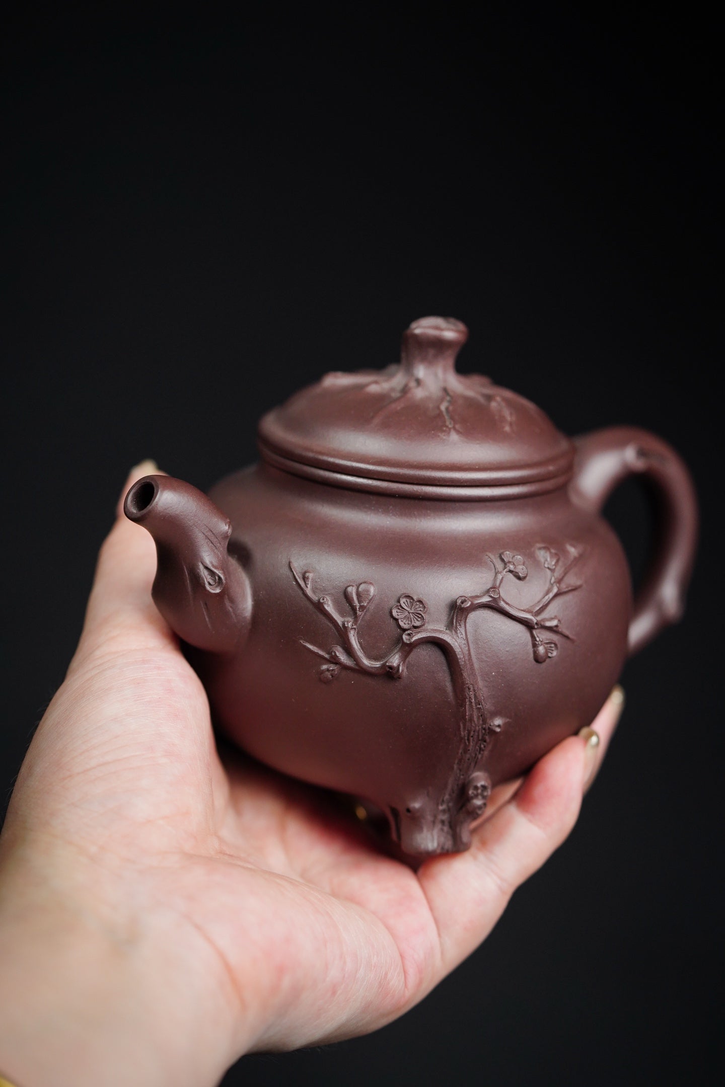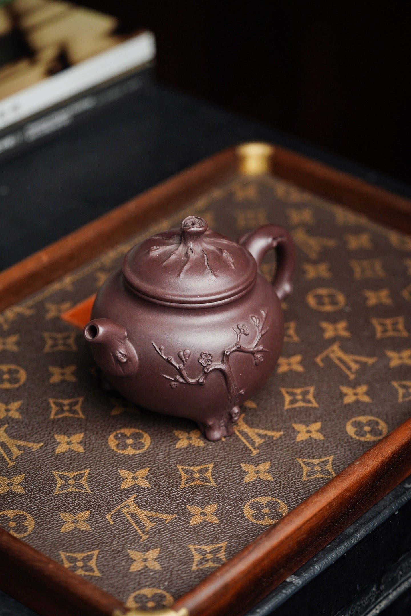 把梅桩的老辣生命力与松的劲道展现的尤其到位,梅花尽显层次感,枝干化作壶流与把壶,好似从树桩中生长出来一般,一气呵成的苍劲生命力。