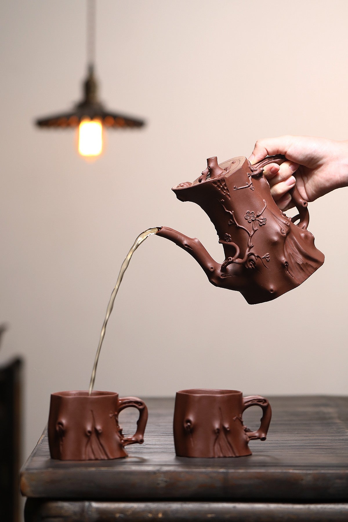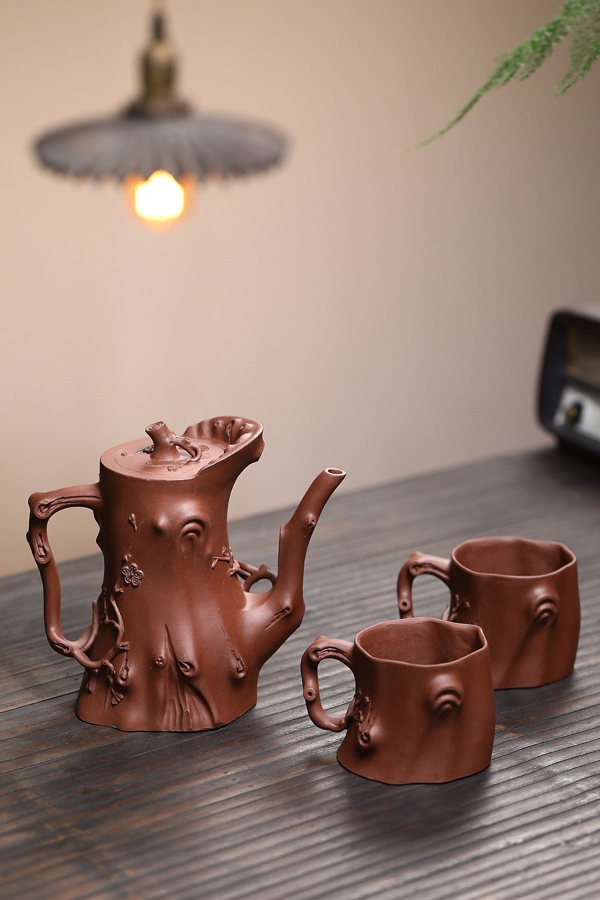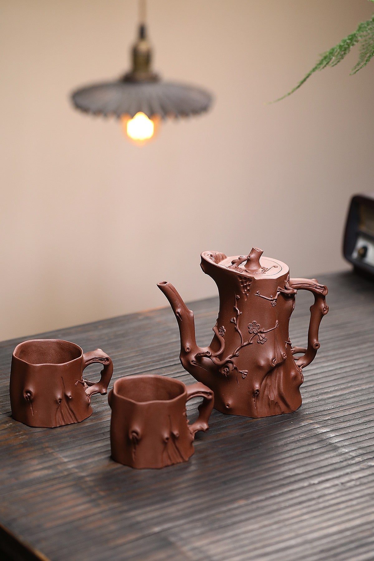 省大师勇淑英作品收藏【梅桩套组】 极品紫泥 600cc 江苏省陶瓷艺术大师