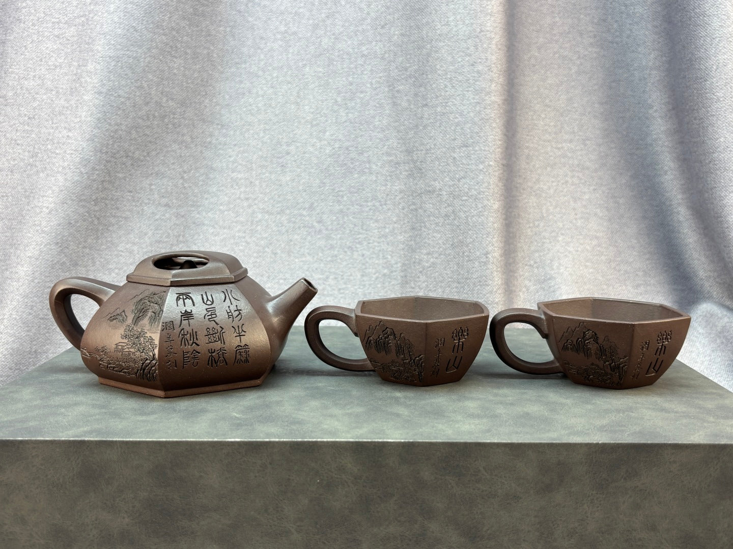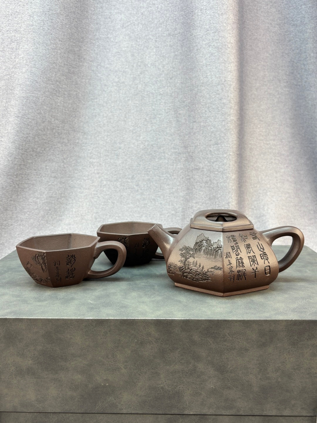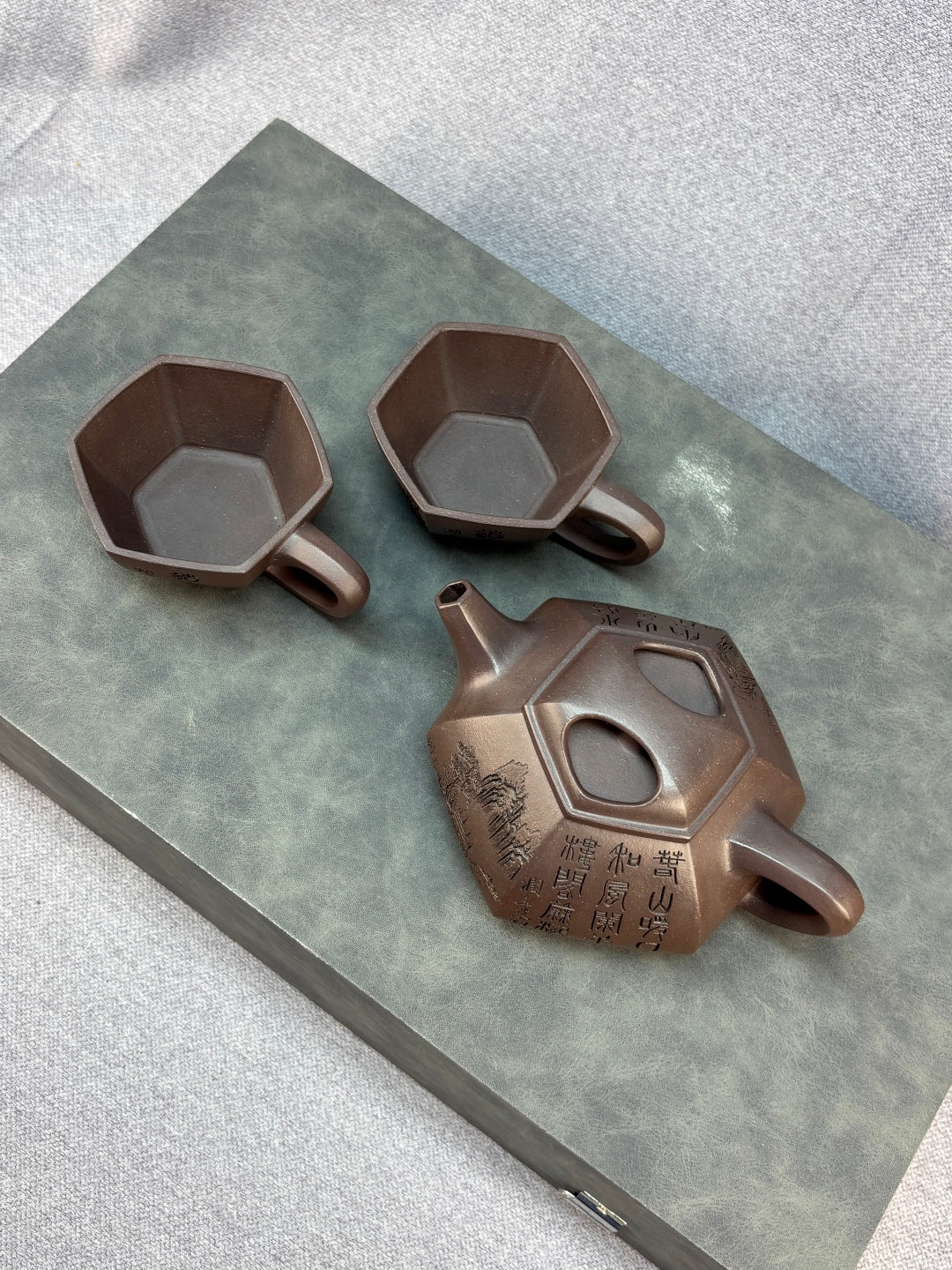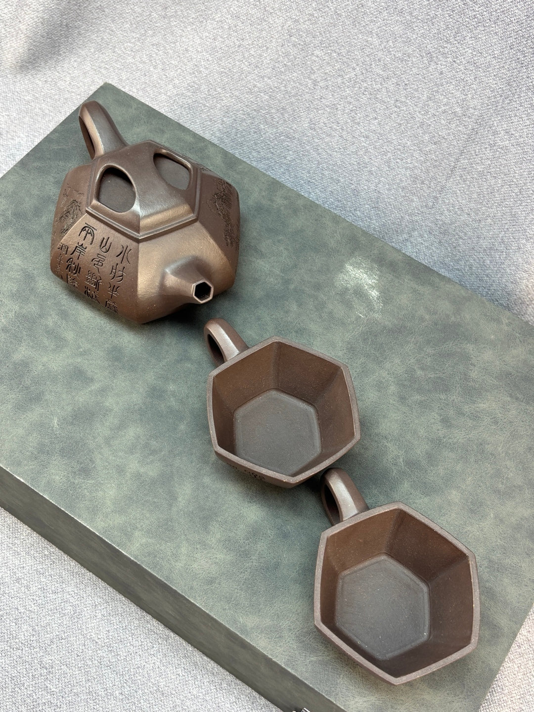 乾隆青灰段代表泥料,程辉大师福利价😊紫砂艺术领军人物·程辉大师《六方牛盖石瓢套组》收藏级重器!