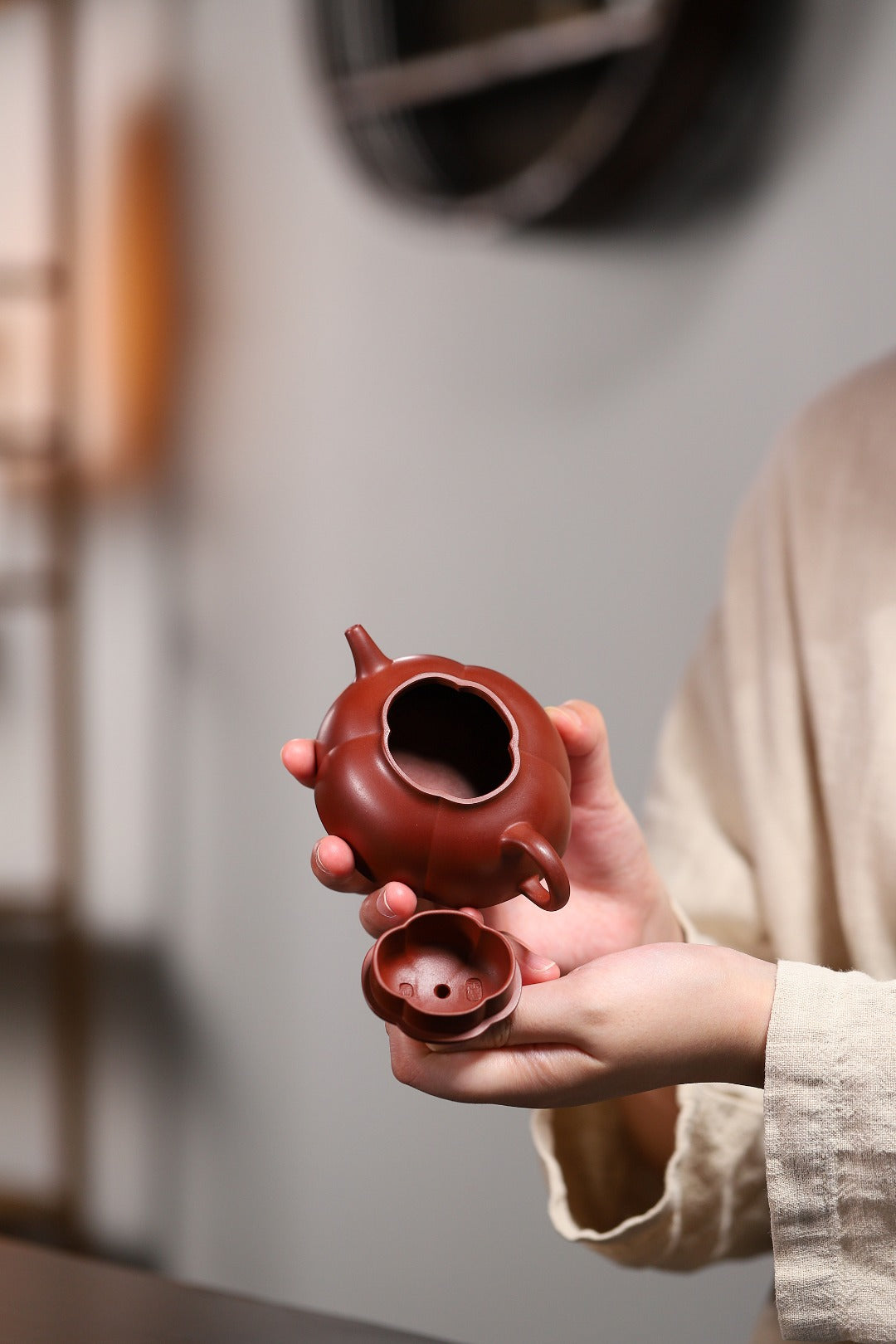 【筋纹海棠】 泥料原矿朱泥 容量130cc 孔数7孔