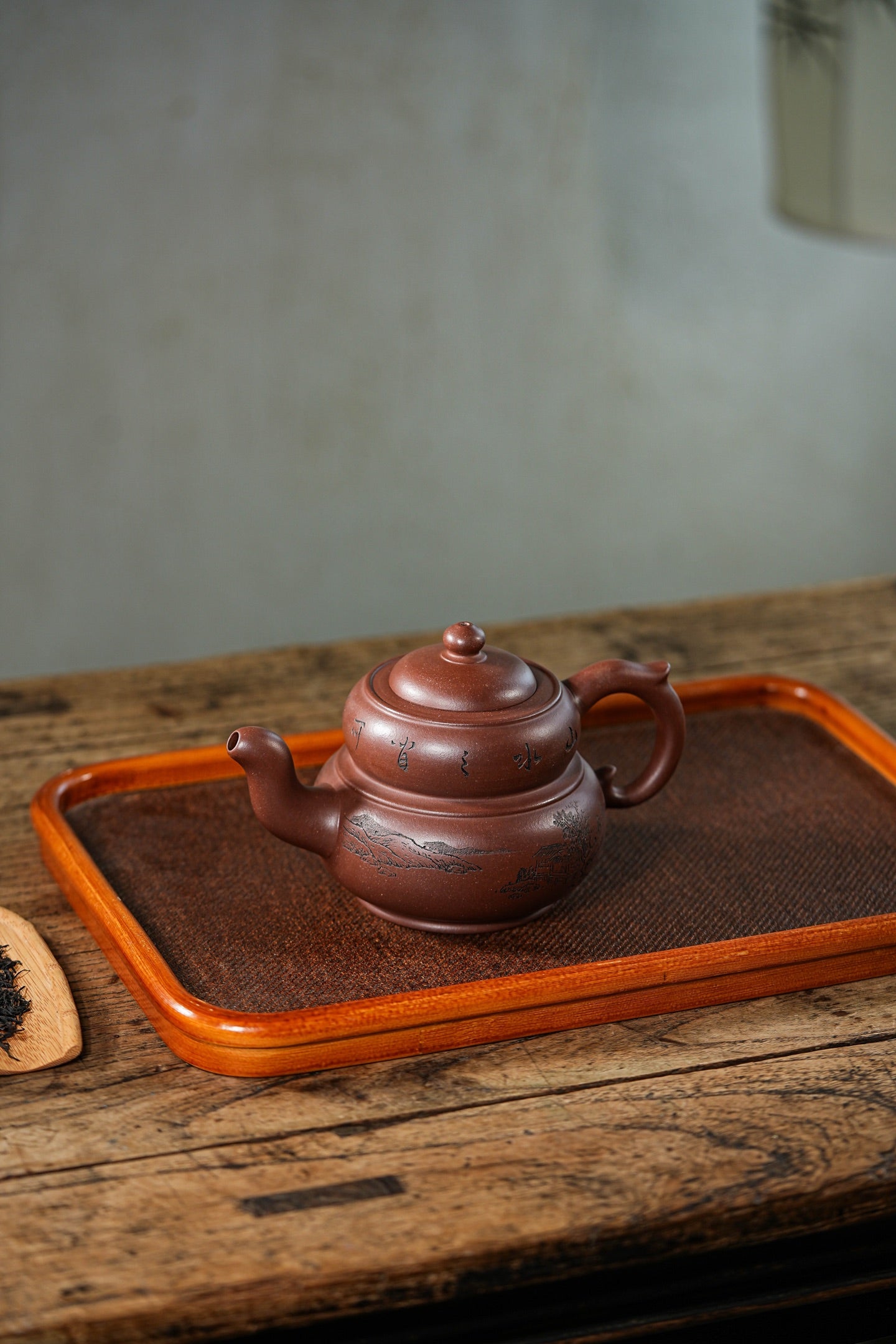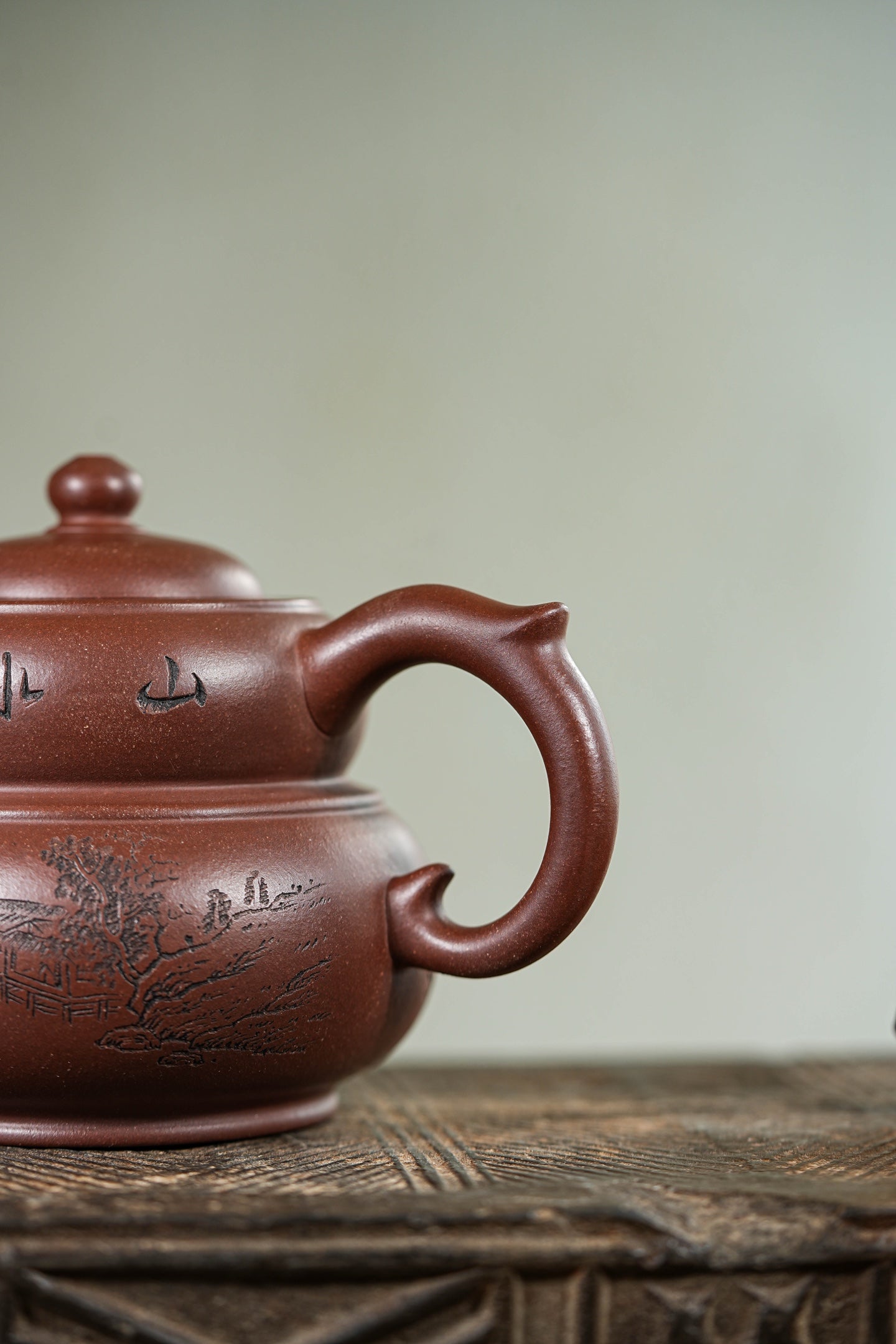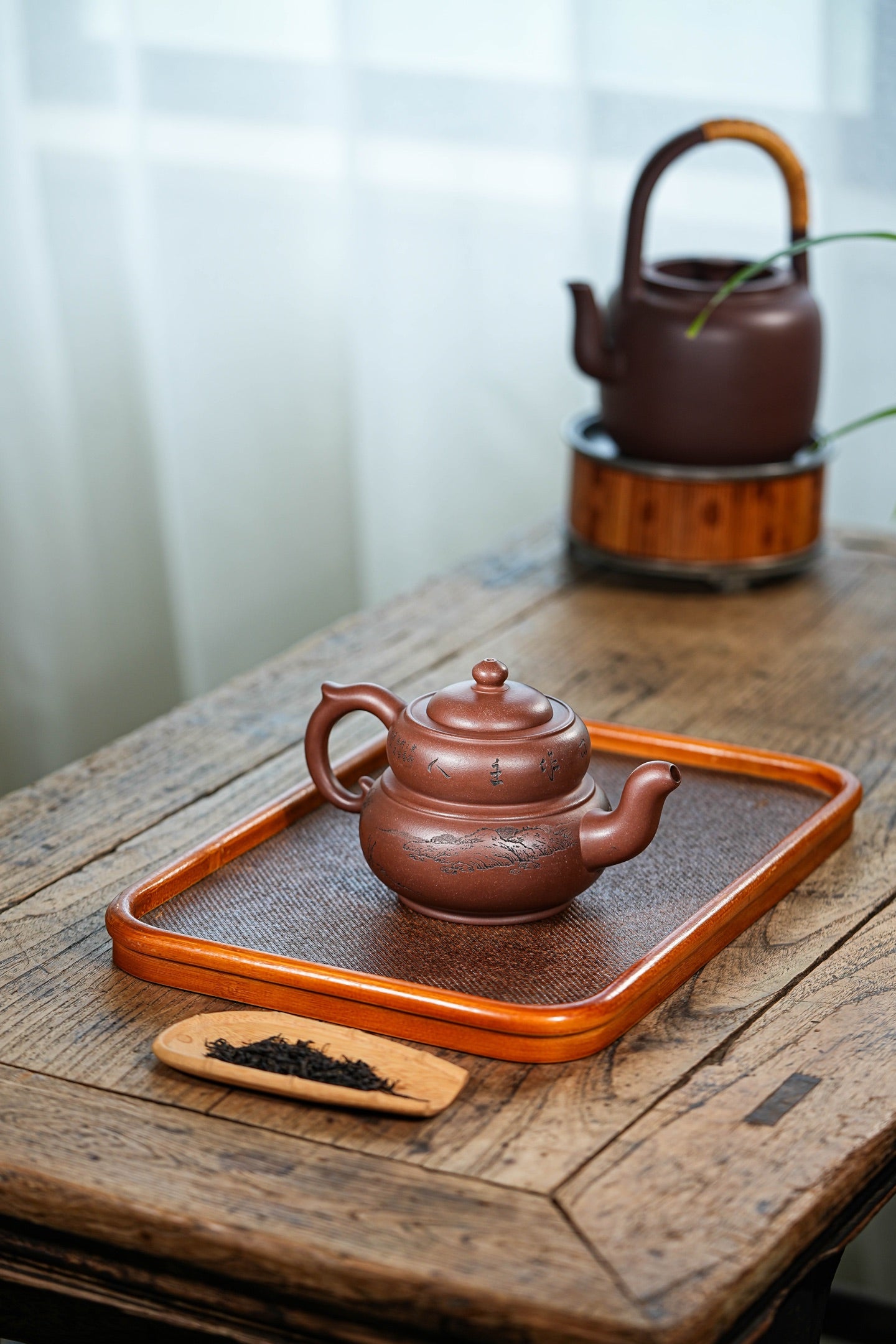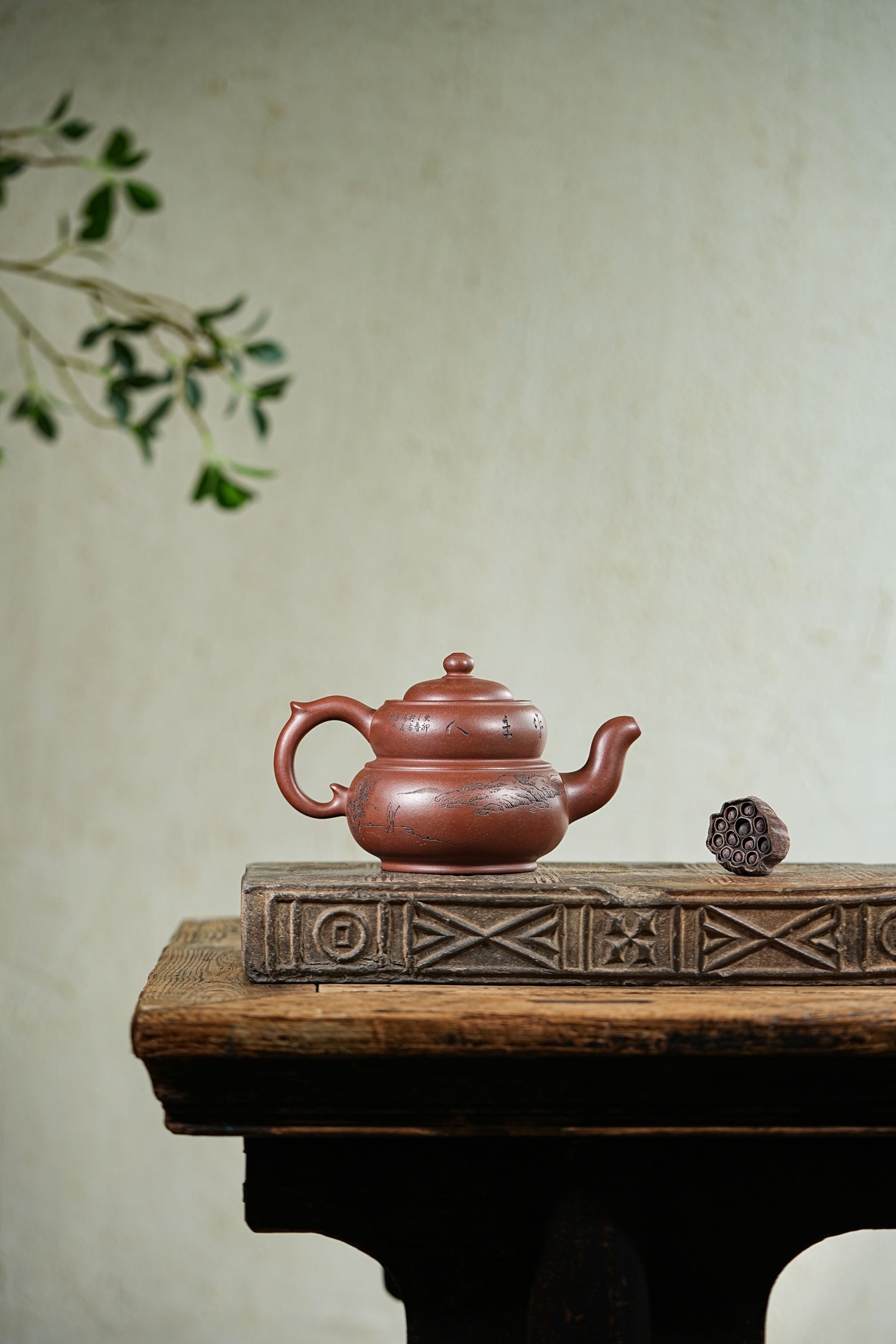 【简述】此壶整体仿造葫芦,葫芦也是我国古老的传统吉祥物,谐音“福禄”。它的外形圆滚有曲线,看来相当福气,加上肚量大的特色,仿佛能够广吸福纳财。自然、尽显韵味、整体富贵而雍容,实为佳作。