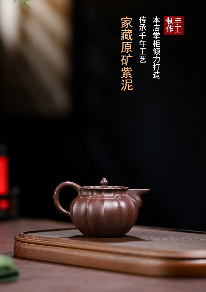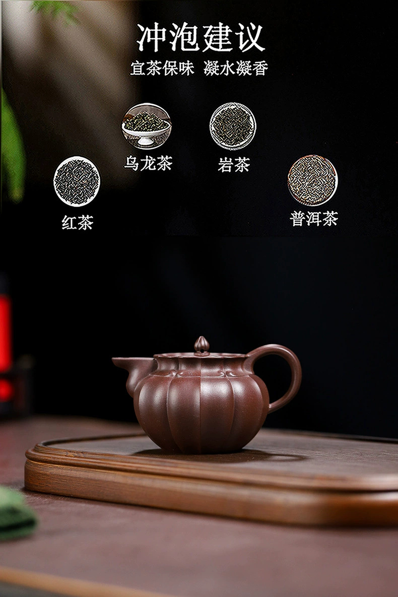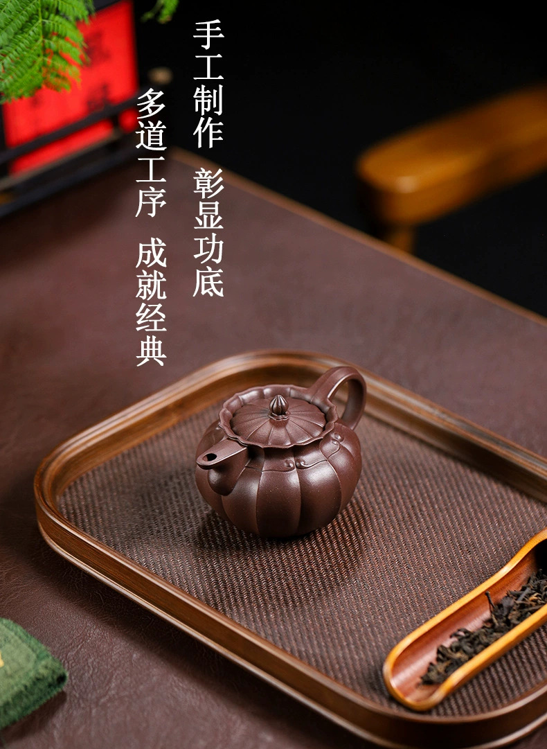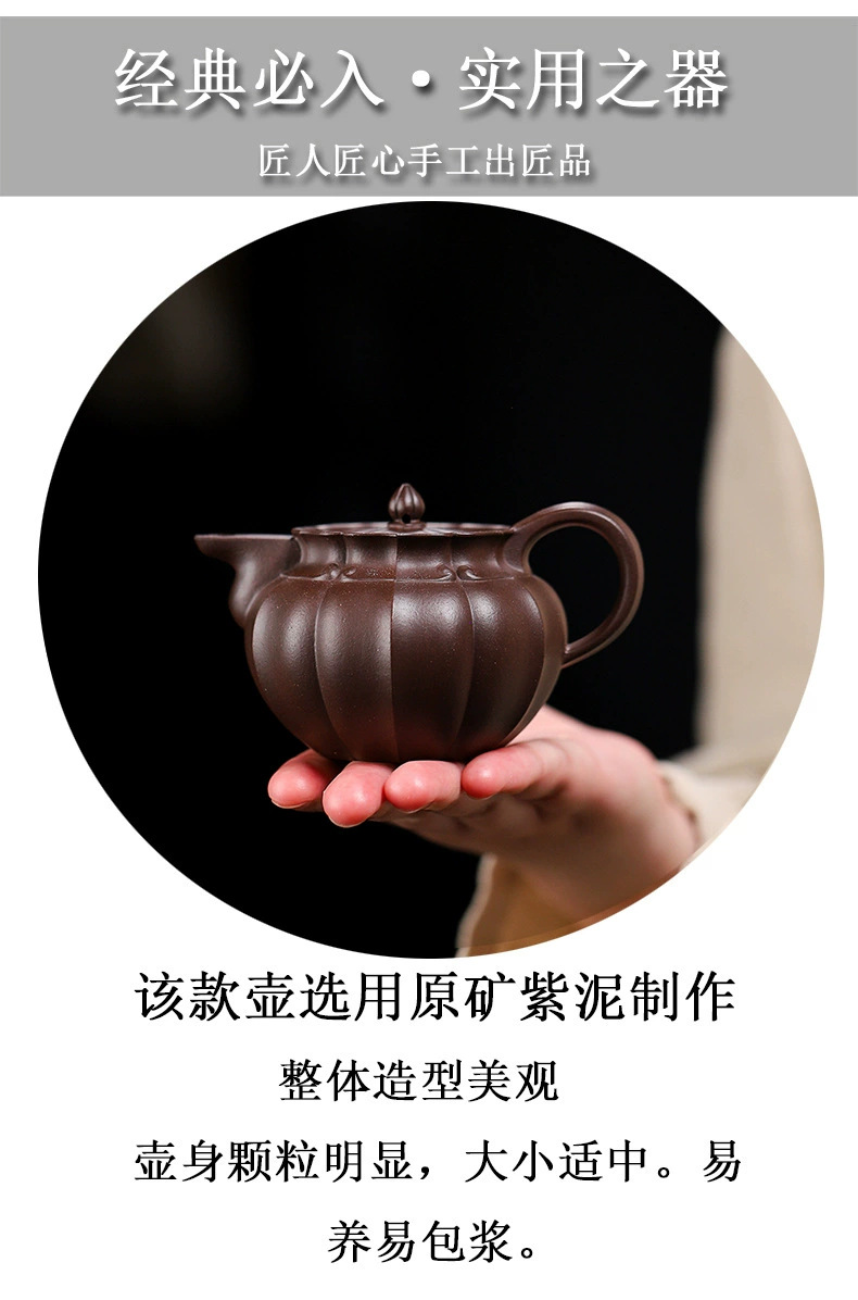 handmade teapot 一手货源宜兴高中端紫砂壶原矿紫泥紫砂壶家用手工筋纹僧帽紫砂壶