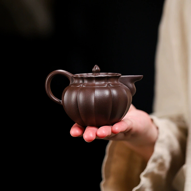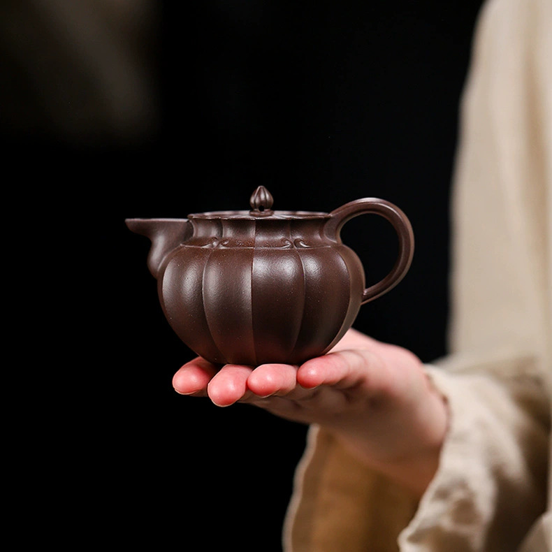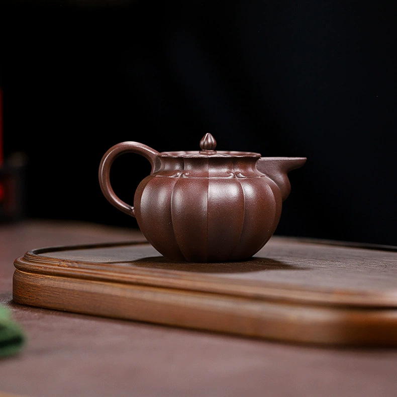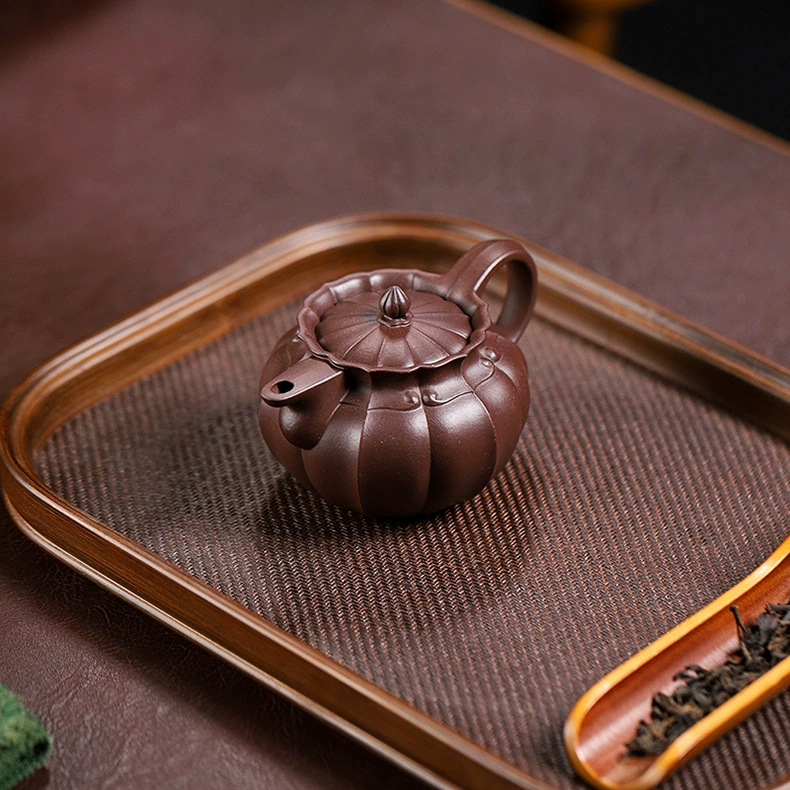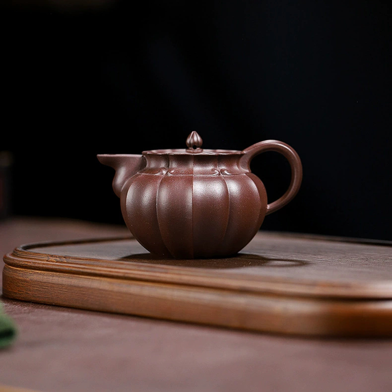 handmade teapot 一手货源宜兴高中端紫砂壶原矿紫泥紫砂壶家用手工筋纹僧帽紫砂壶