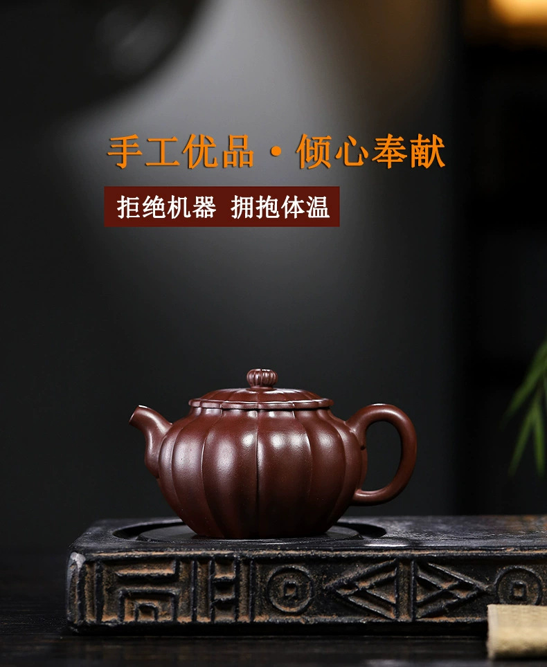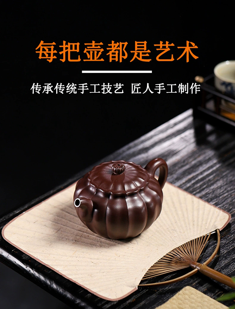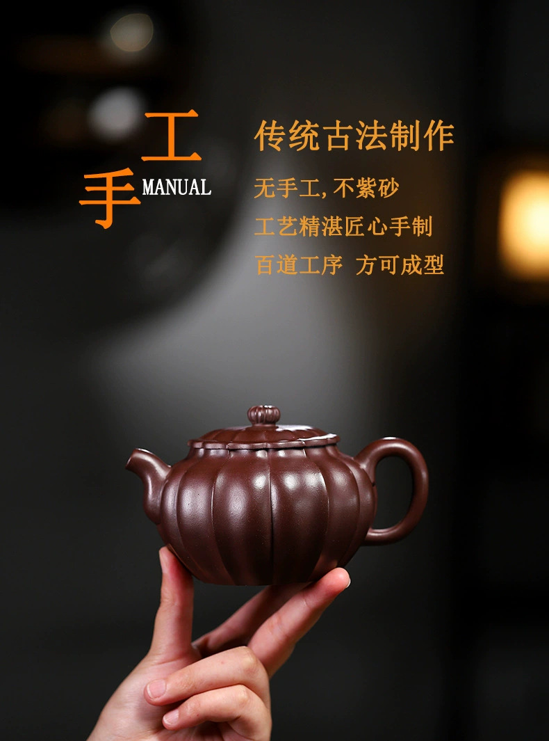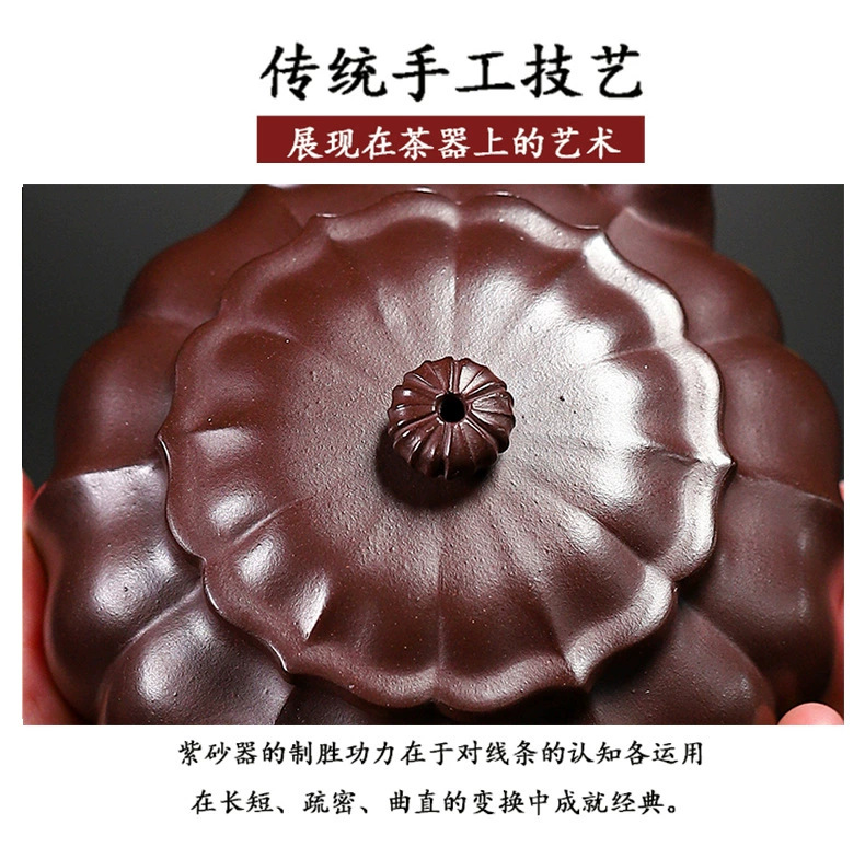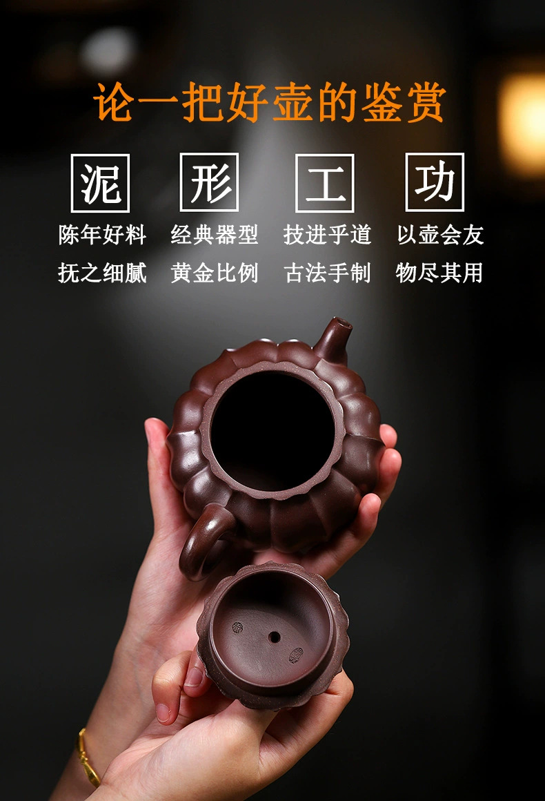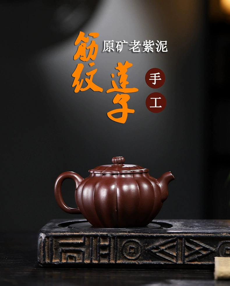 handmade teapot 宜兴原矿手工紫砂壶老紫泥锦囊器紫砂壶筋纹莲子紫砂壶