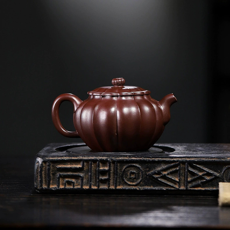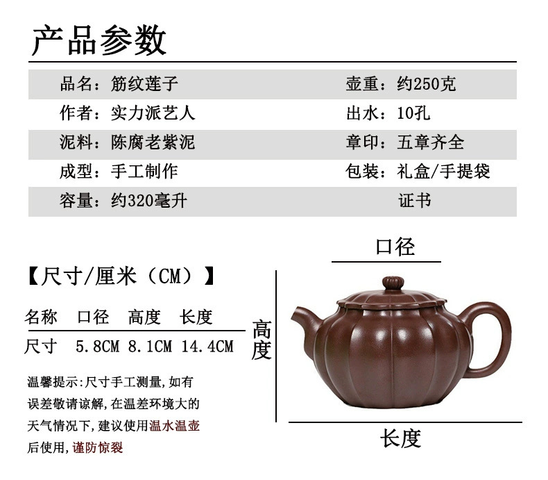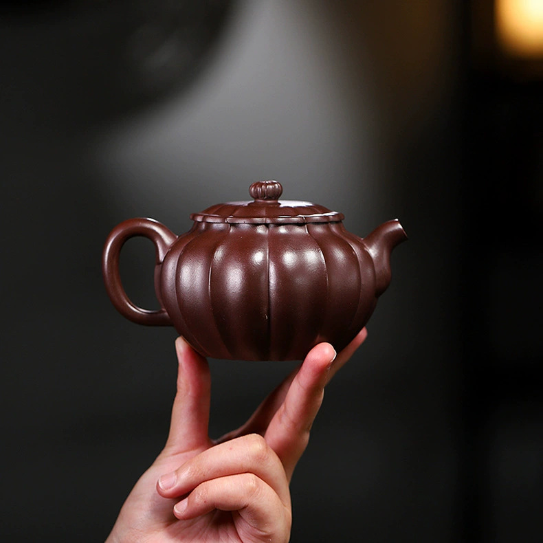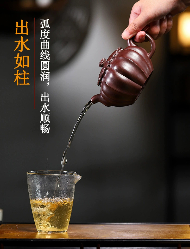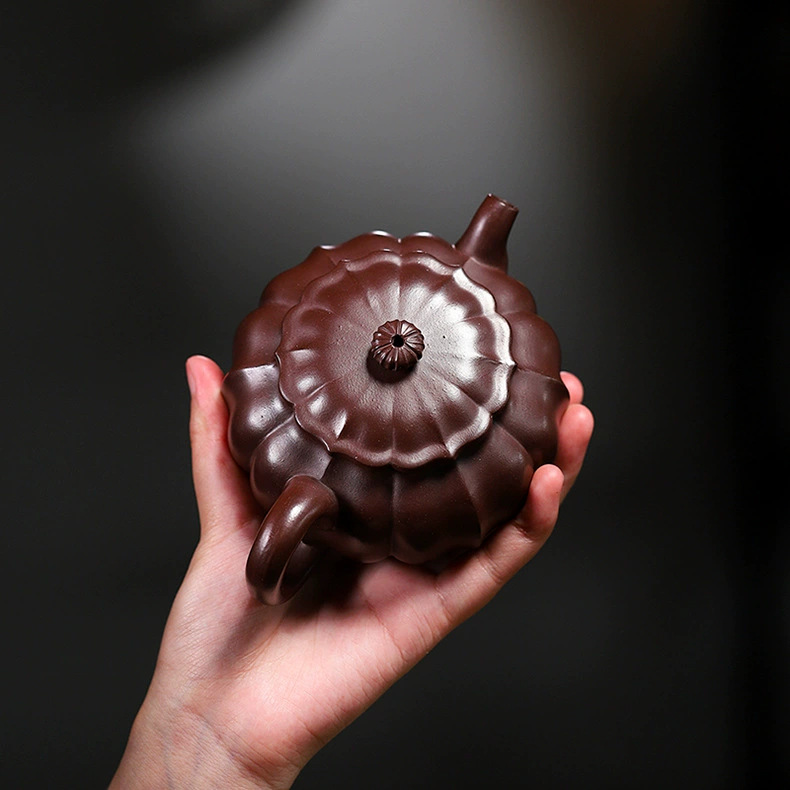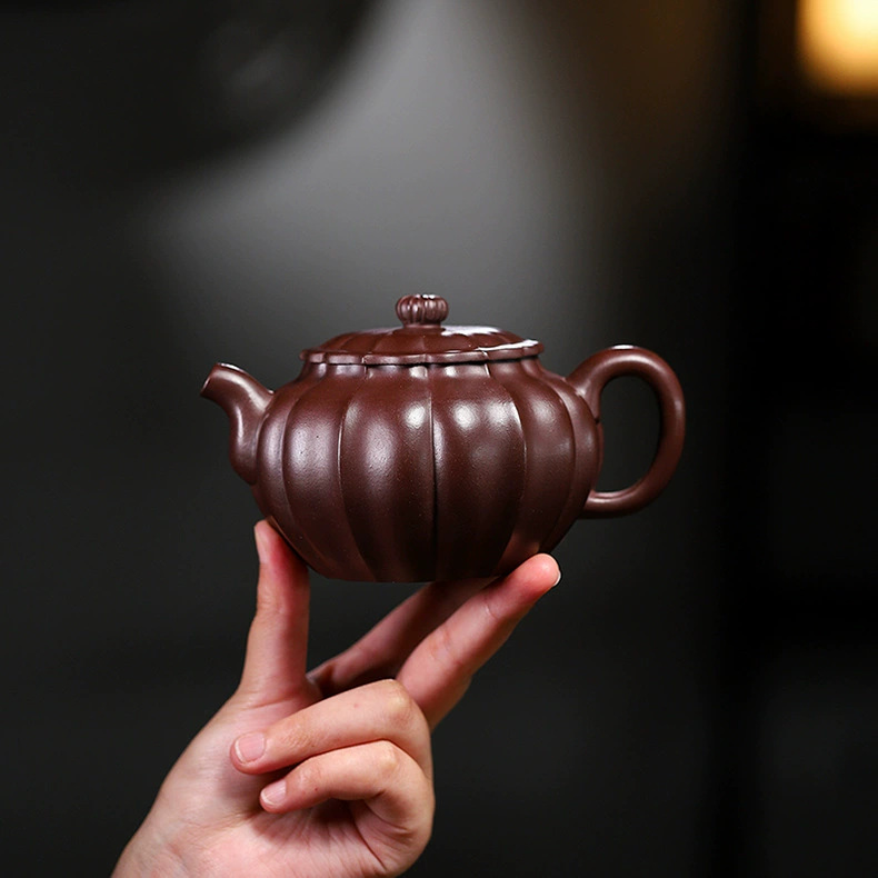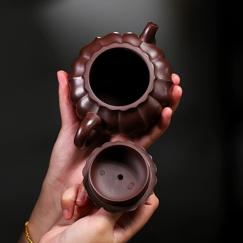 handmade teapot 宜兴原矿手工紫砂壶老紫泥锦囊器紫砂壶筋纹莲子紫砂壶