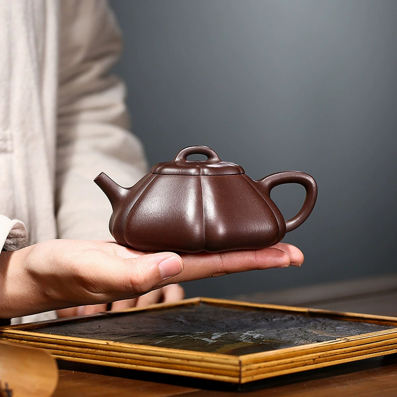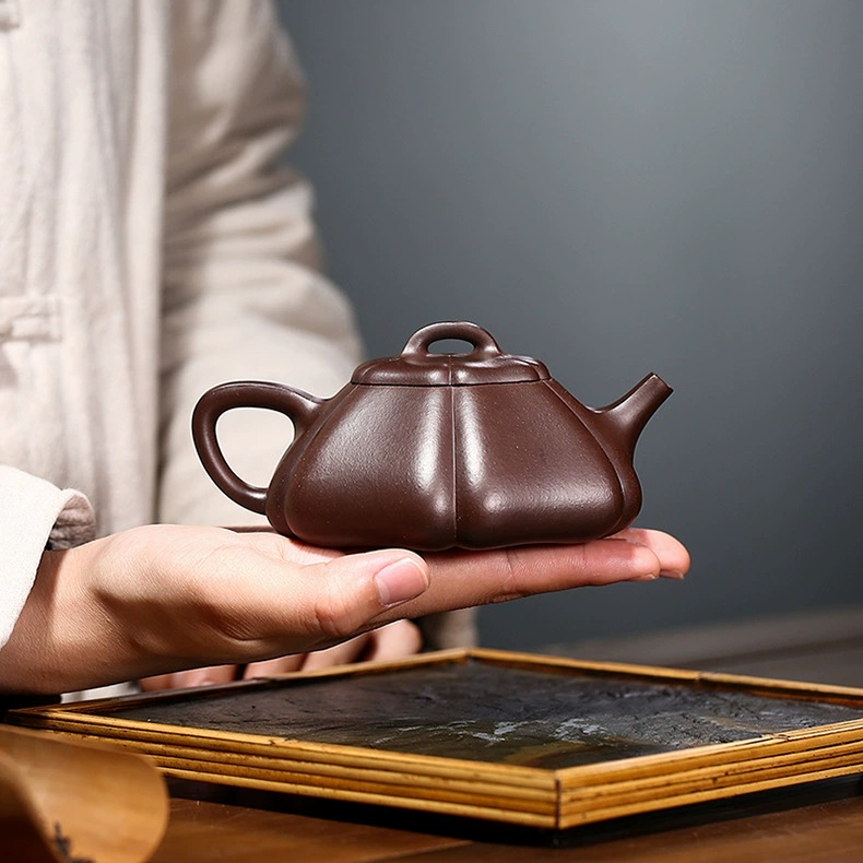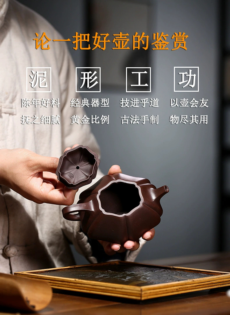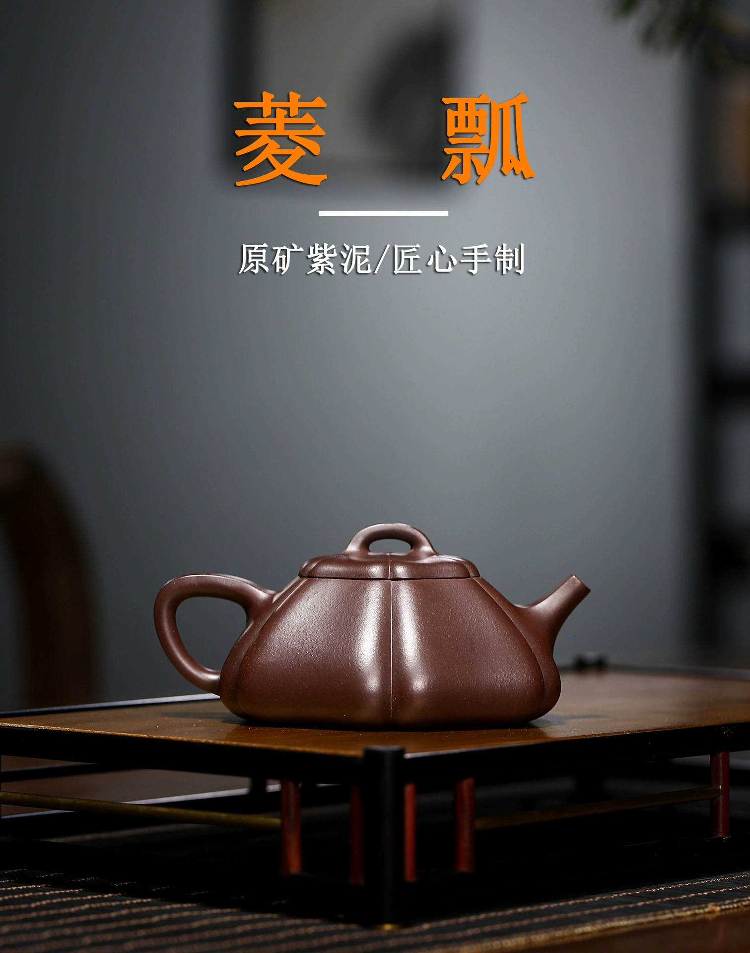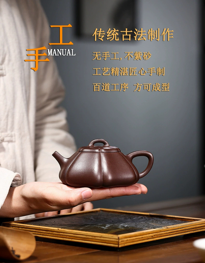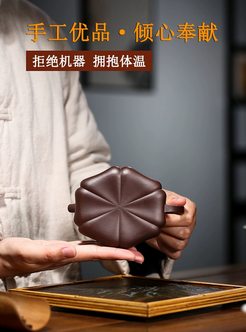 handmade teapot 源头工厂批发宜兴手工紫砂壶家用高中端紫砂壶原矿紫泥菱瓢紫砂壶