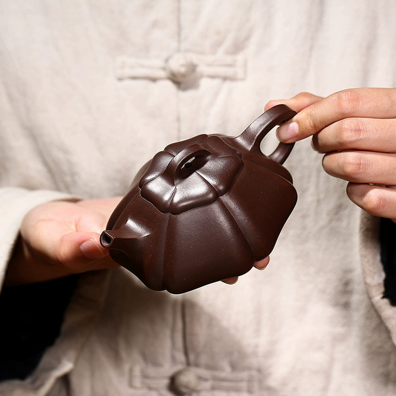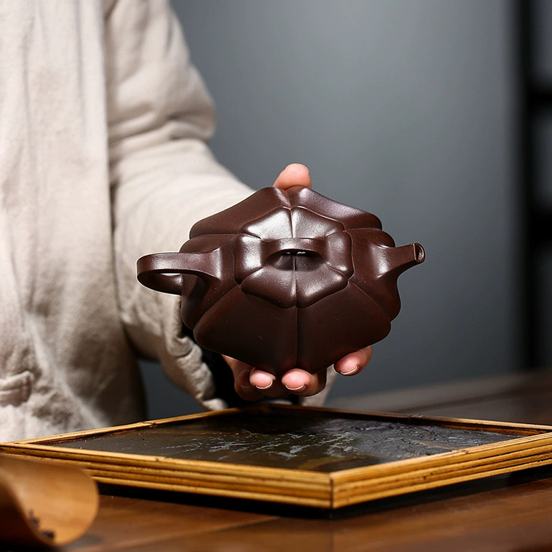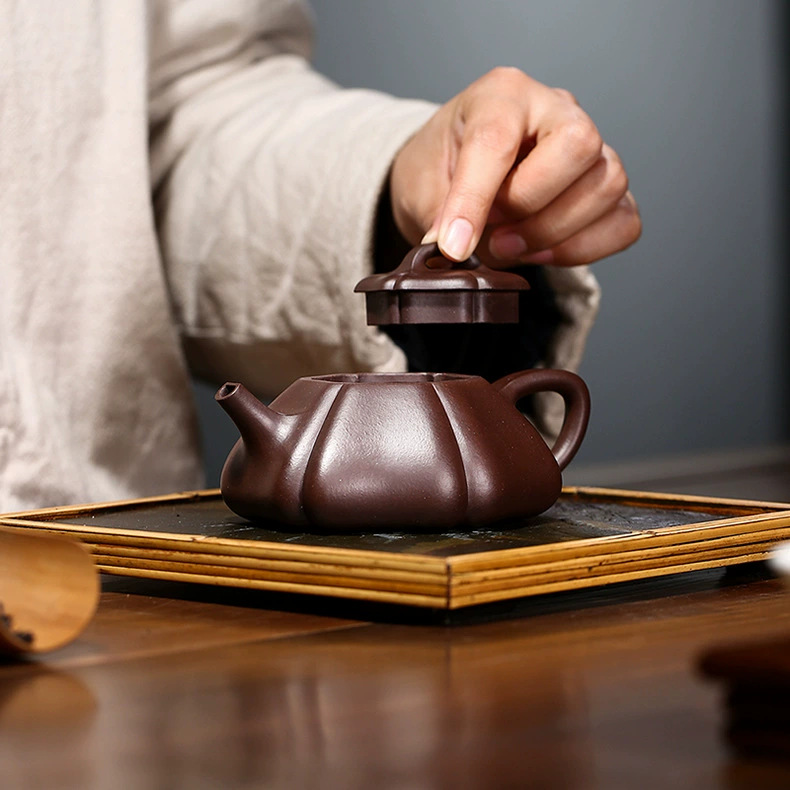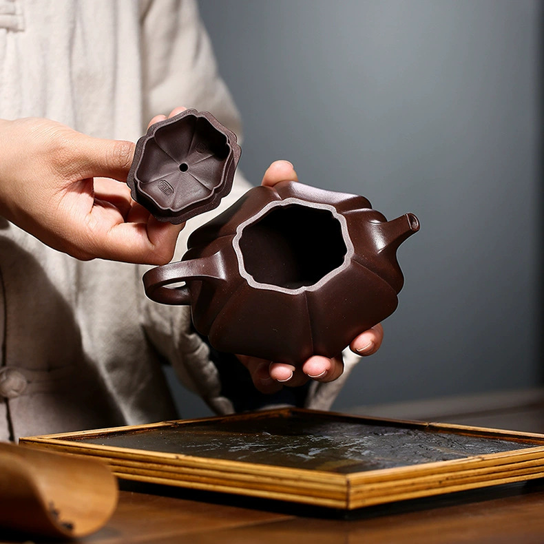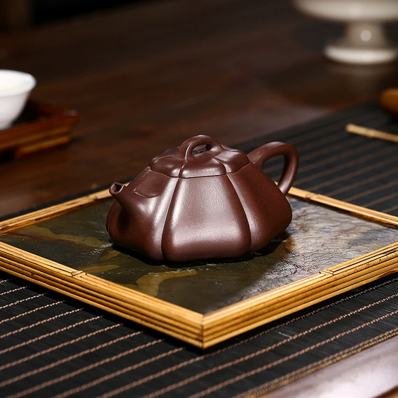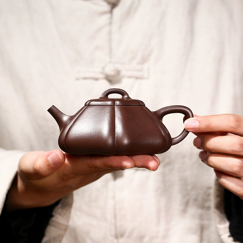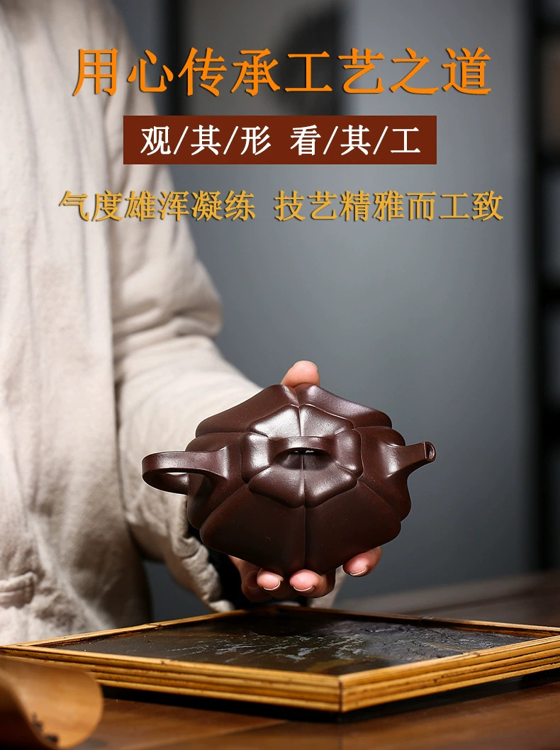 handmade teapot 源头工厂批发宜兴手工紫砂壶家用高中端紫砂壶原矿紫泥菱瓢紫砂壶