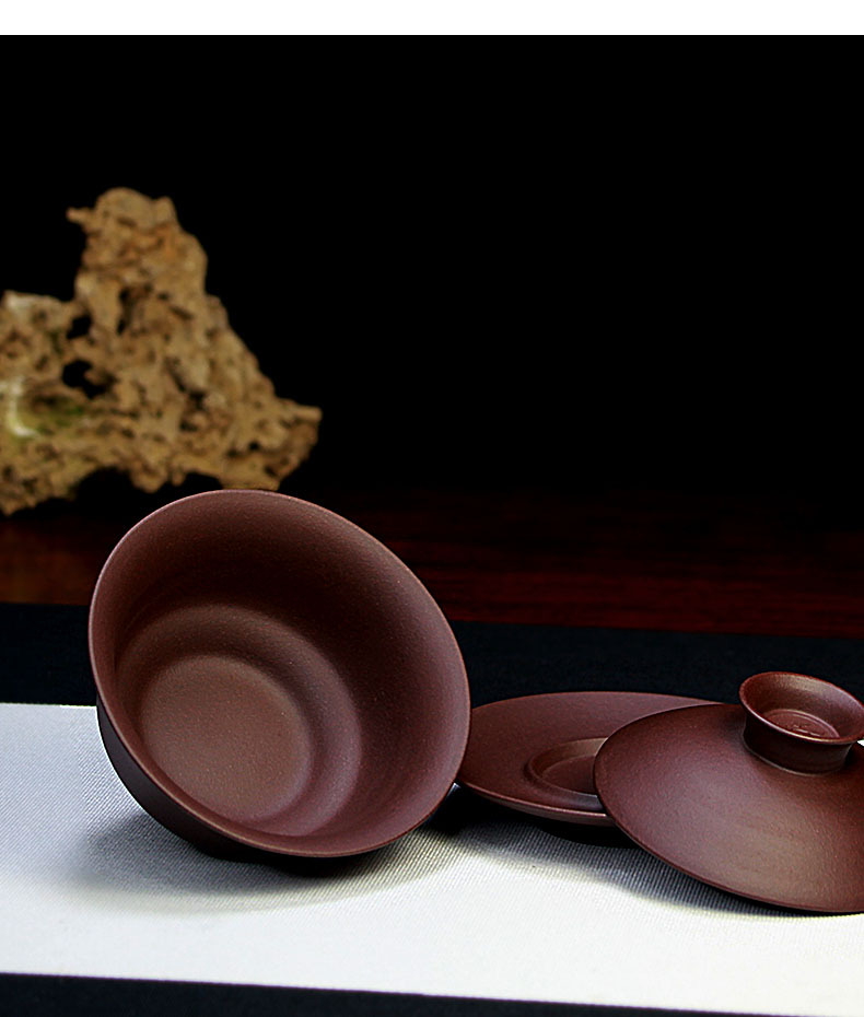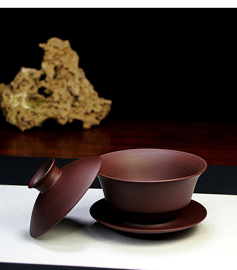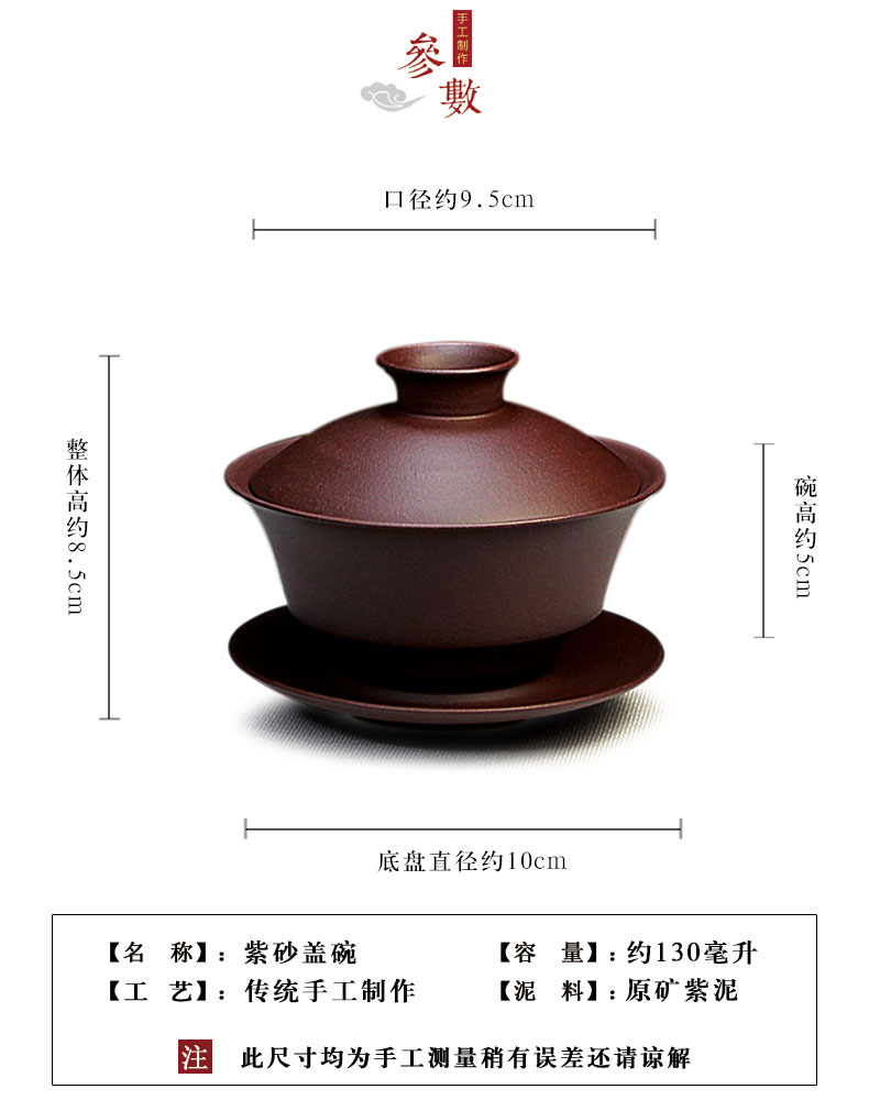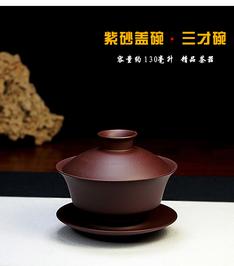 宜兴紫砂盖碗三才碗130CC批发家用泡茶具精品手工原矿紫泥