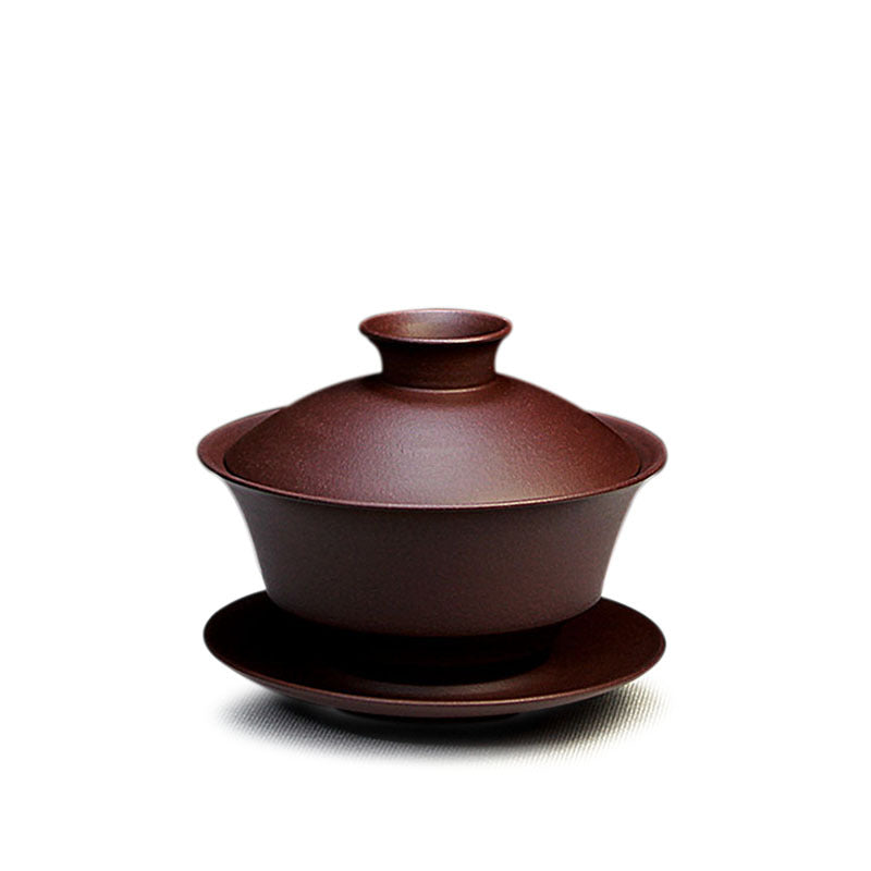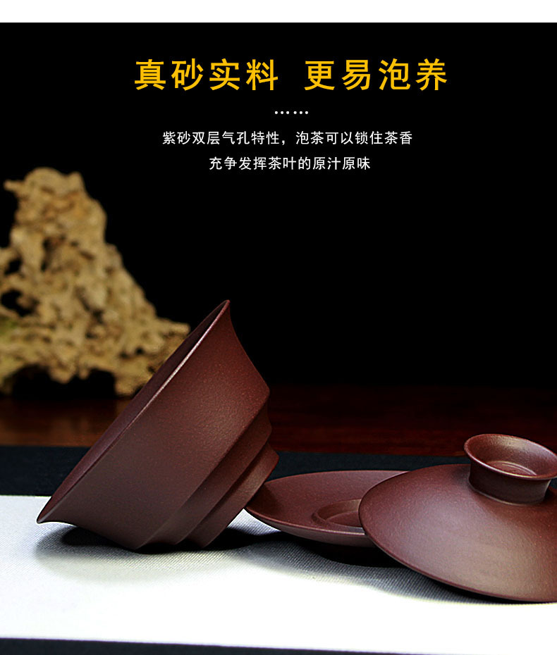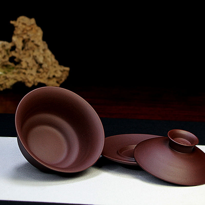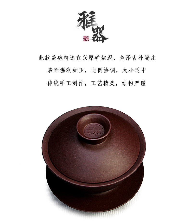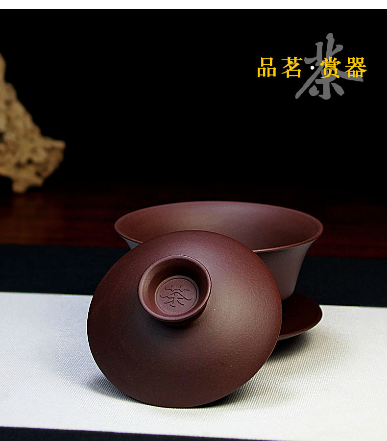 宜兴紫砂盖碗三才碗130CC批发家用泡茶具精品手工原矿紫泥