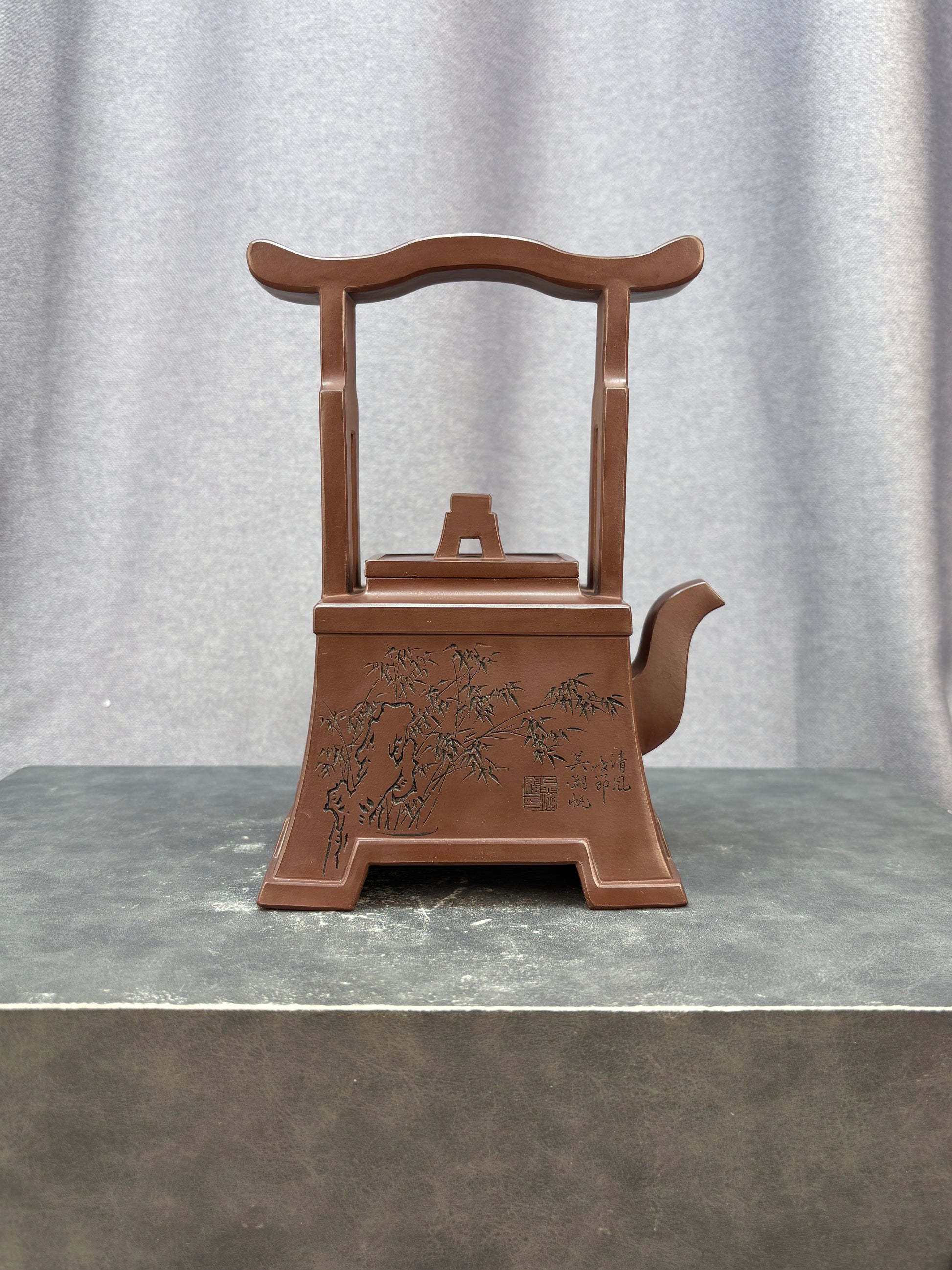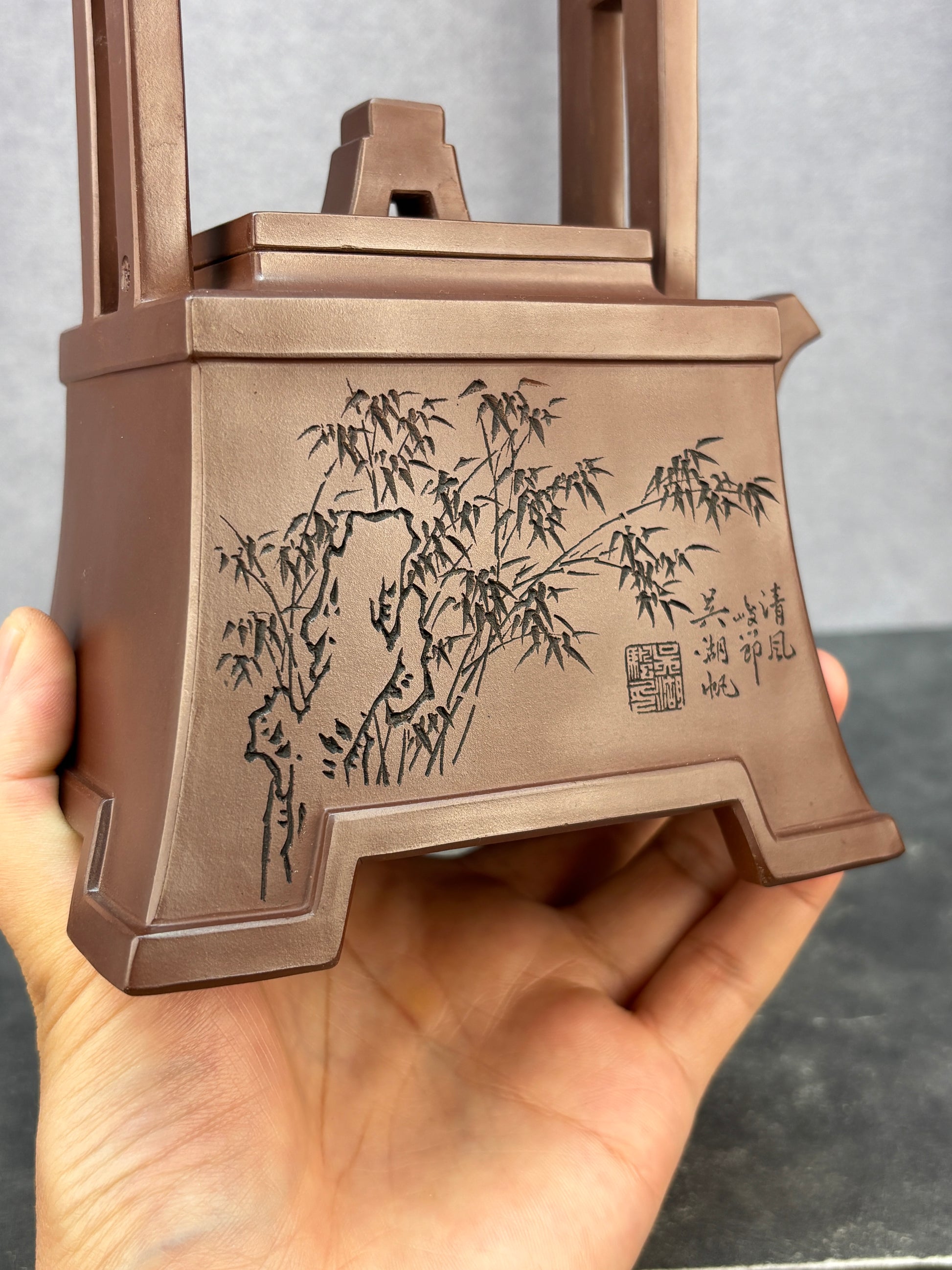 程辉大师佳作福利·紫砂界的功勋级重器《方石提梁》原矿极品老紫泥 580cc
