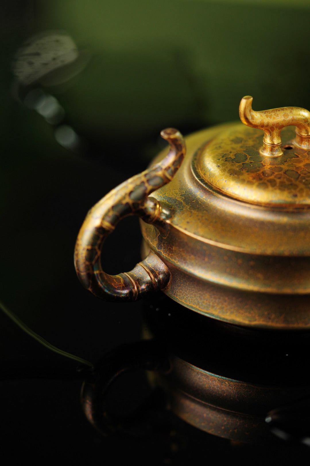 纯金打底的工艺赋予壶身尊贵质感,黄金在中国文化中象征财富、地位与高贵,用此壶泡茶,既是茶道仪式的升华,也是主人高品质生活态度的彰显。