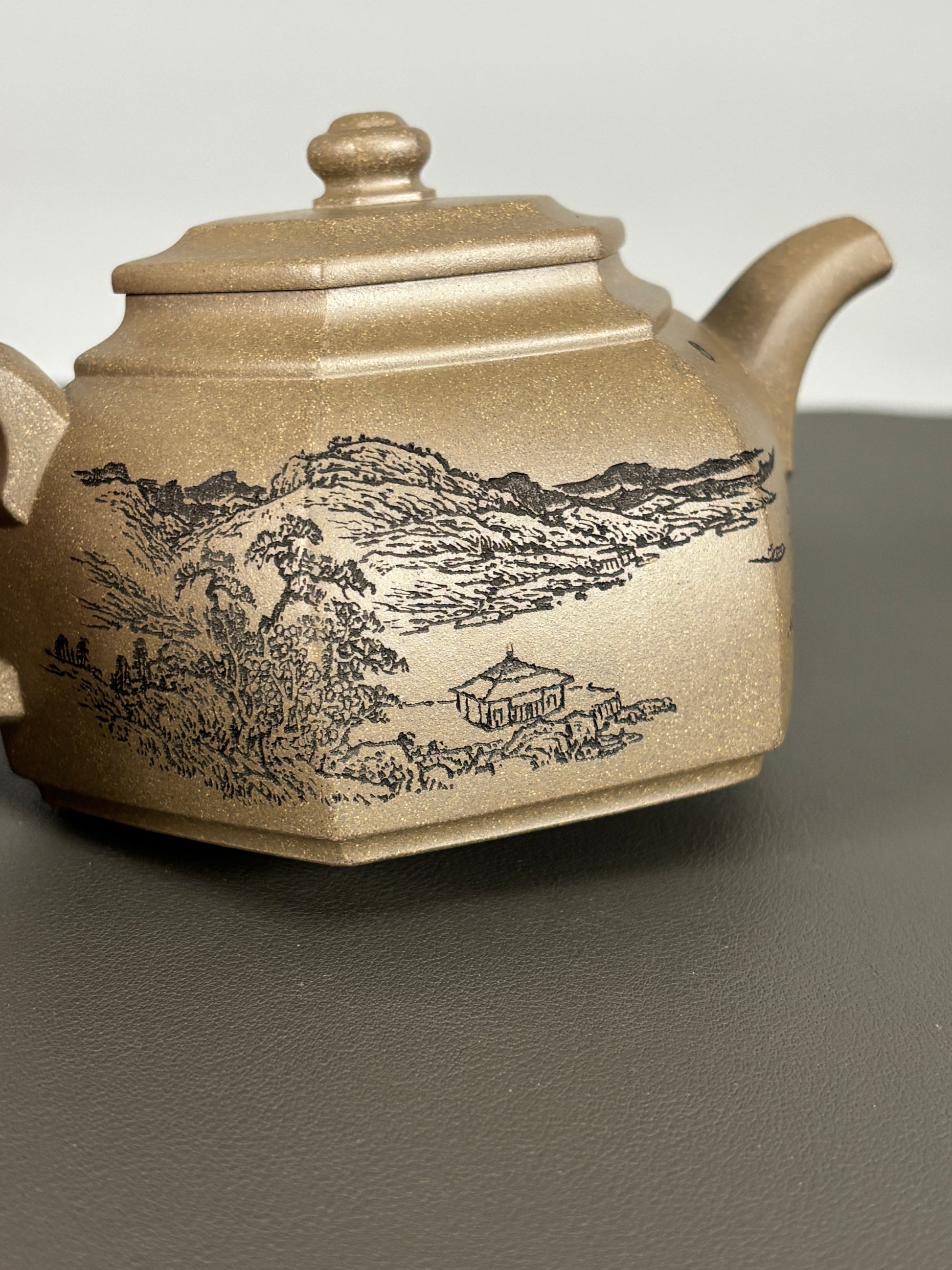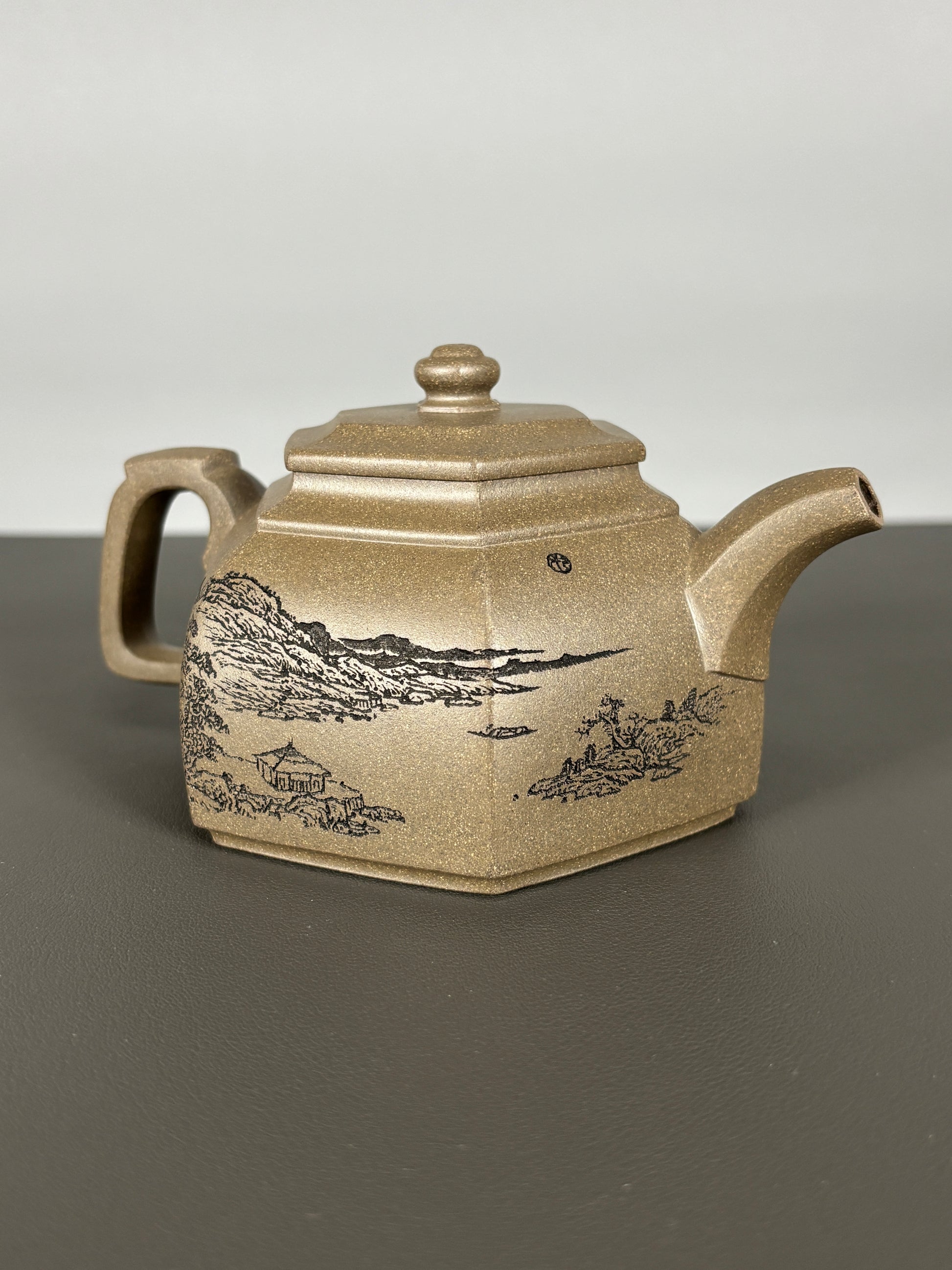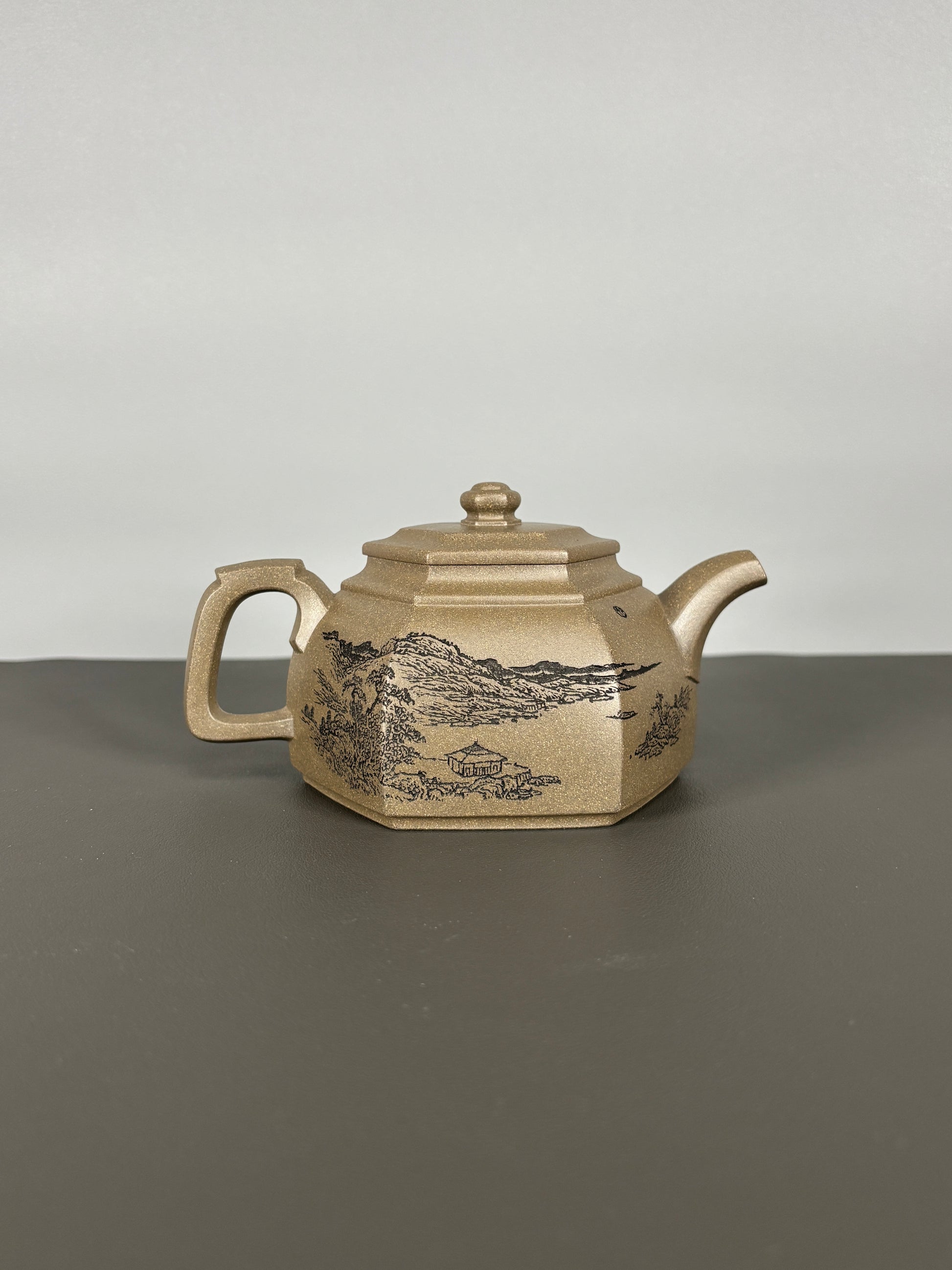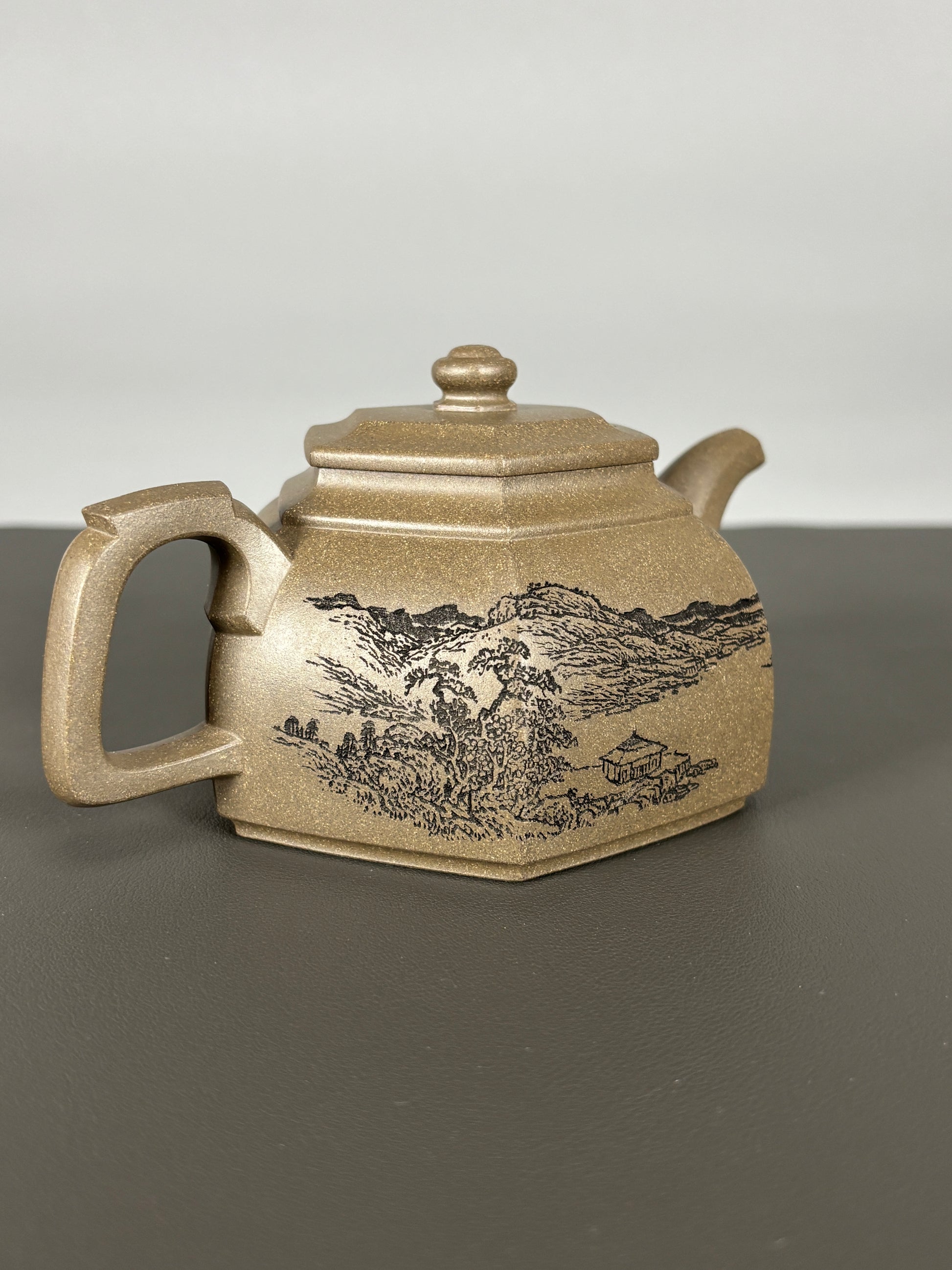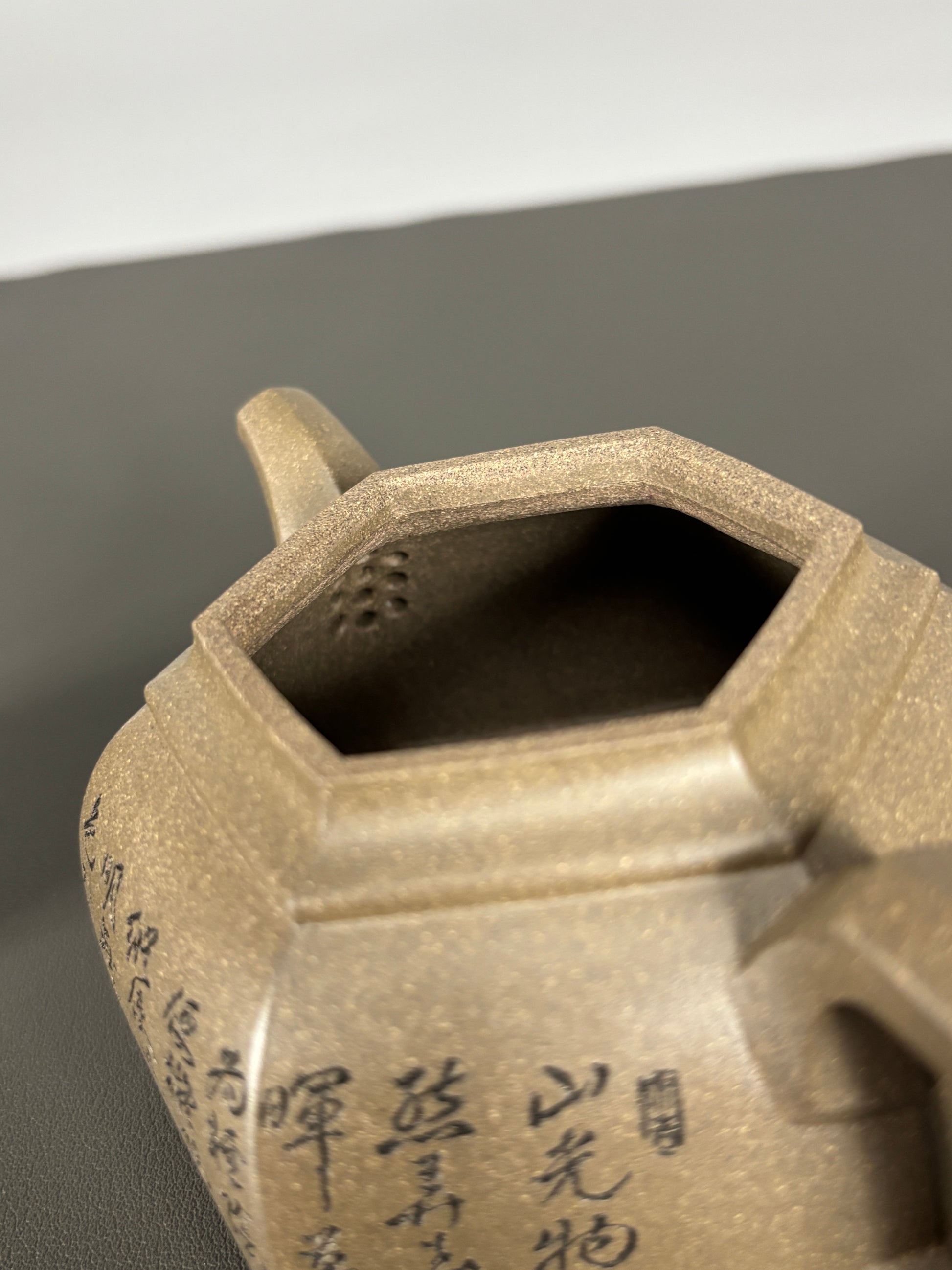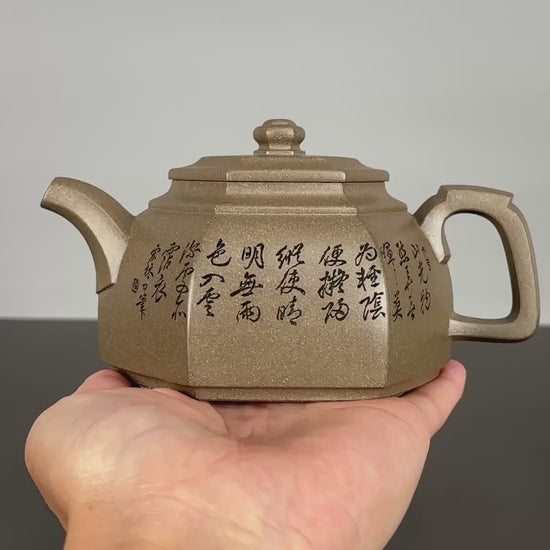 中国紫砂界当代陶刻山水巨匠·陈宏林大师精刻【六方古盉】潜力无限原矿优质青段泥·300cc