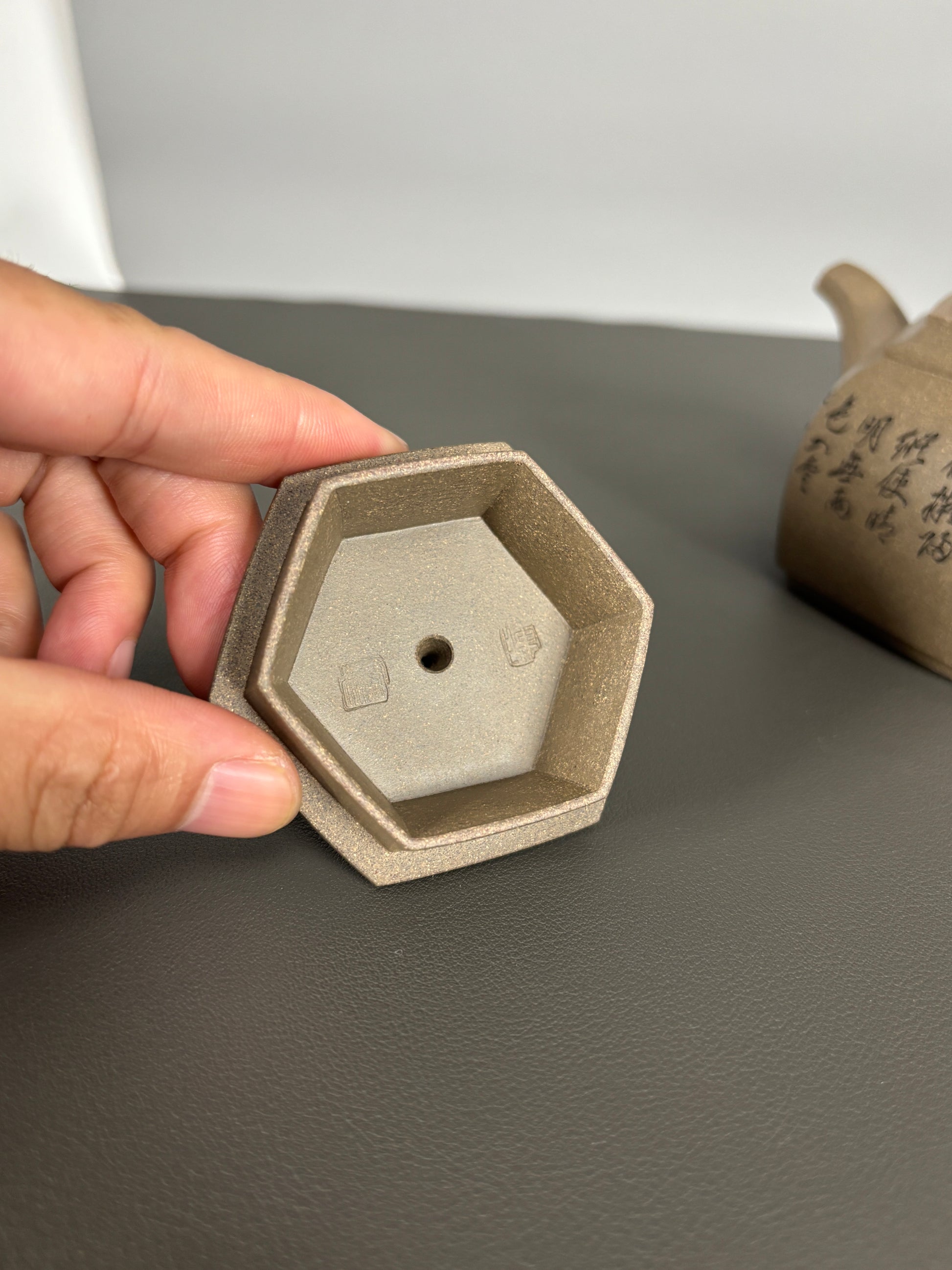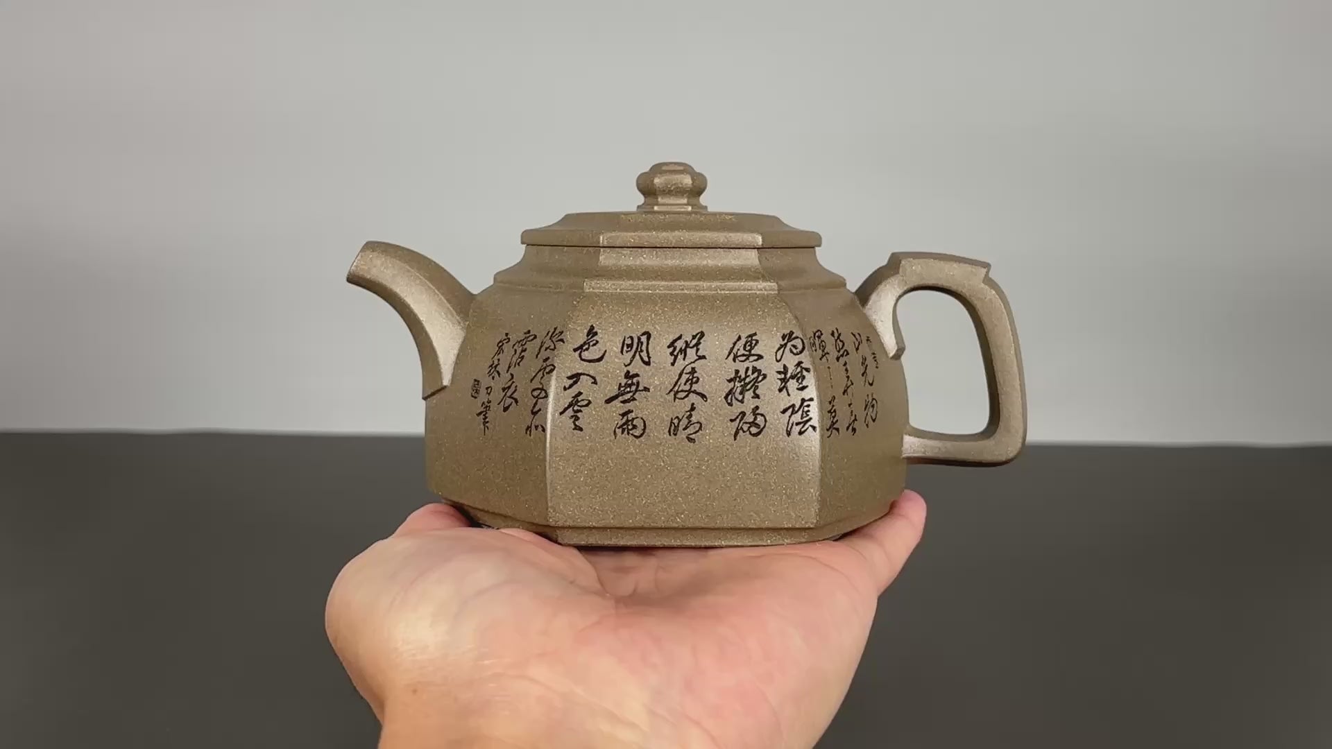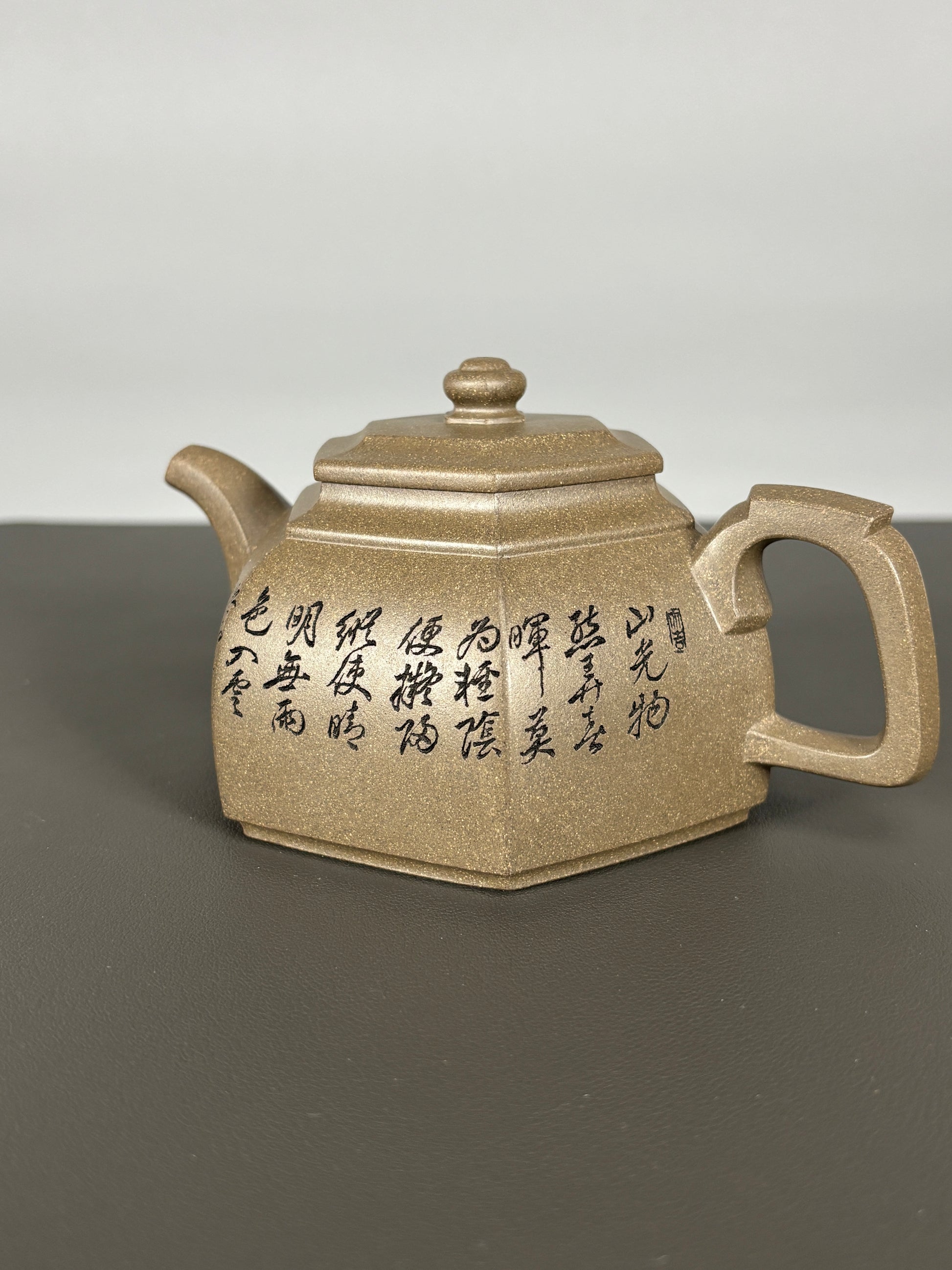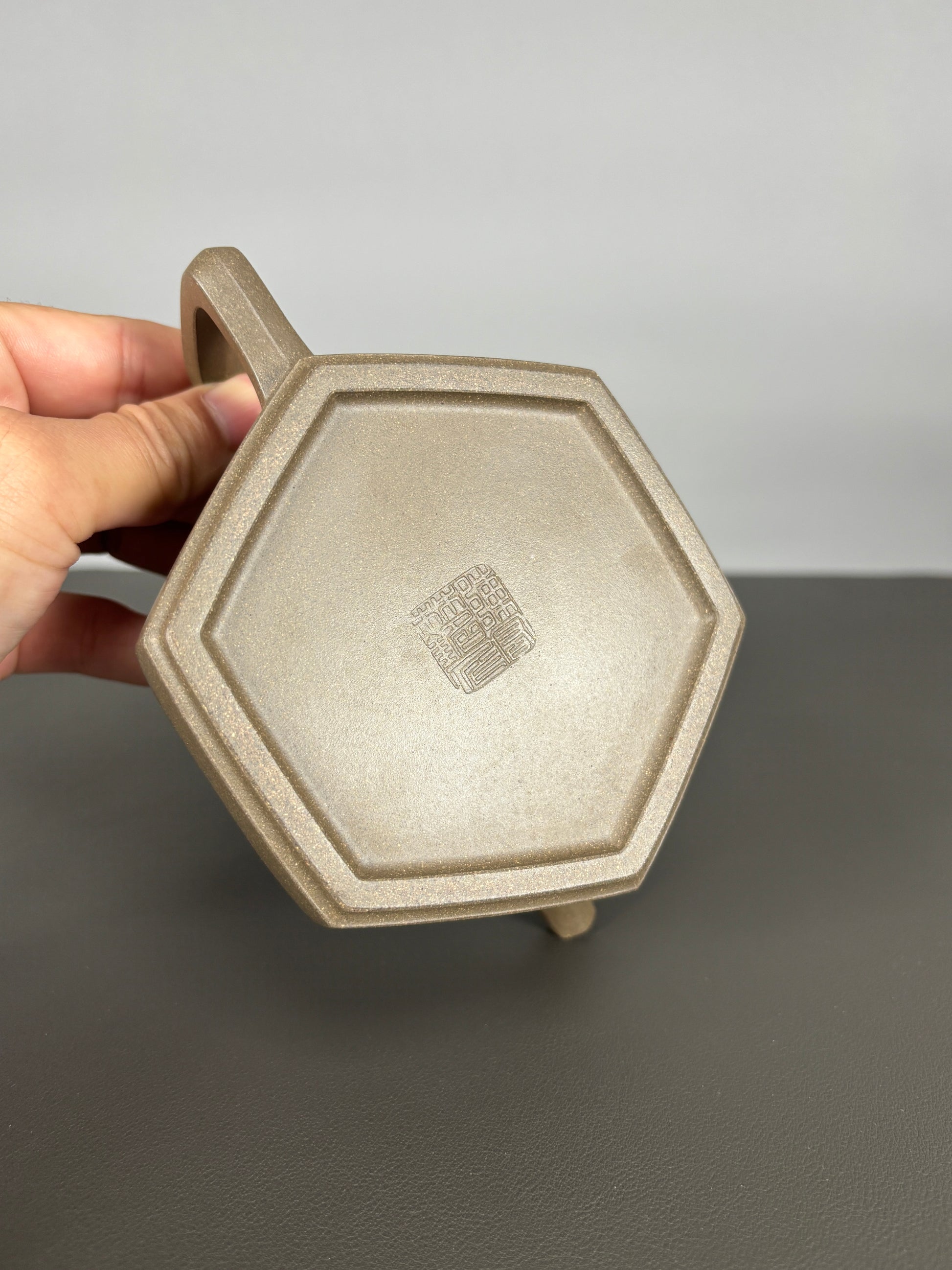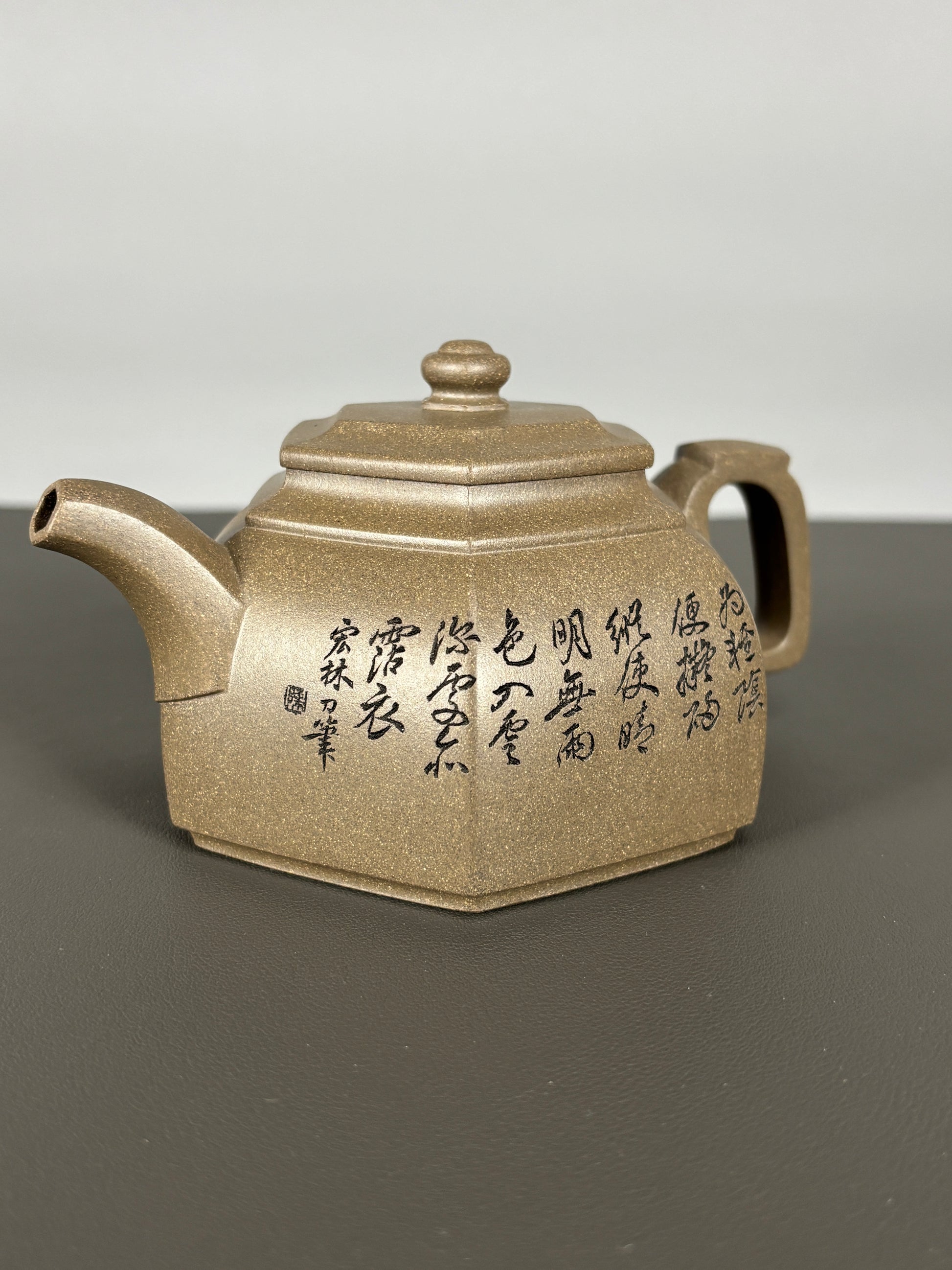 中国紫砂界当代陶刻山水巨匠·陈宏林大师精刻【六方古盉】潜力无限原矿优质青段泥·300cc
