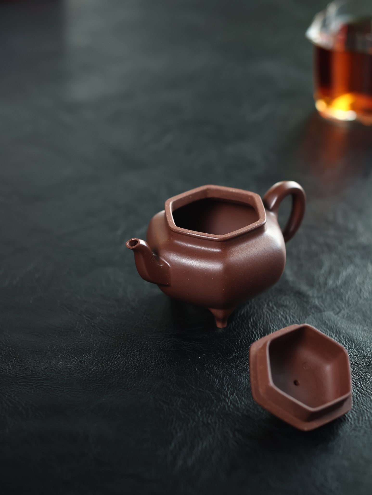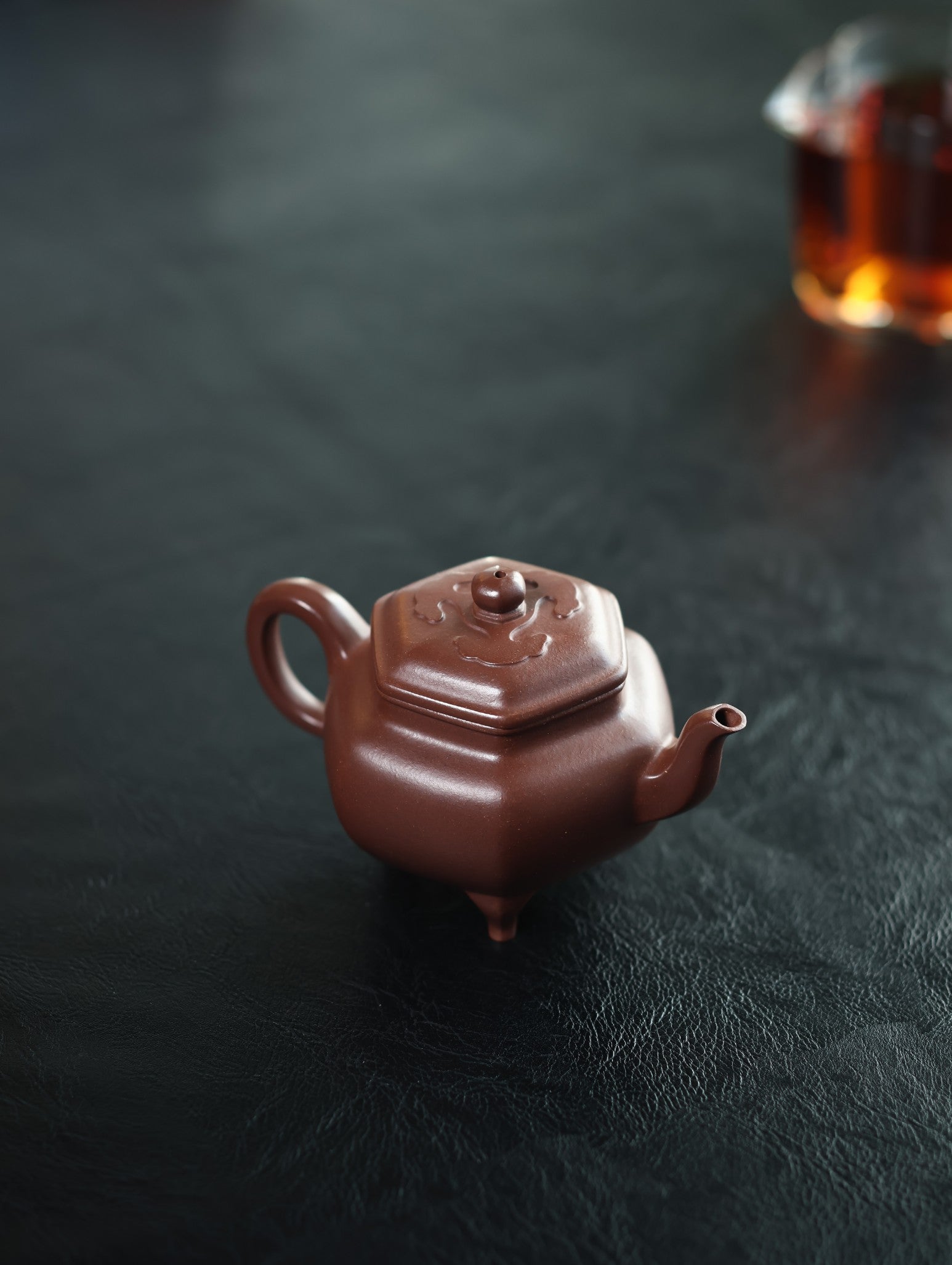 大彬如意为明代时大彬设计制作而成,有“明代良陶让一时”之说。时大彬设计此壶,既有“事事如意”的寓意,又有以三足撑体寓意“鼎立”之势。此壶选用六方壶工艺,全手工泥片镶接成型,成型难度大,壶器型素净雅致、古朴,壶身浑圆,六方口盖宽阔,三弯嘴内敛,气息庄端,且聚气,尤为出彩的部分为三乳足(亦称“象足”),使得整个壶型稳重,支撑整个壶体,使之大气不洪。推荐收藏。
