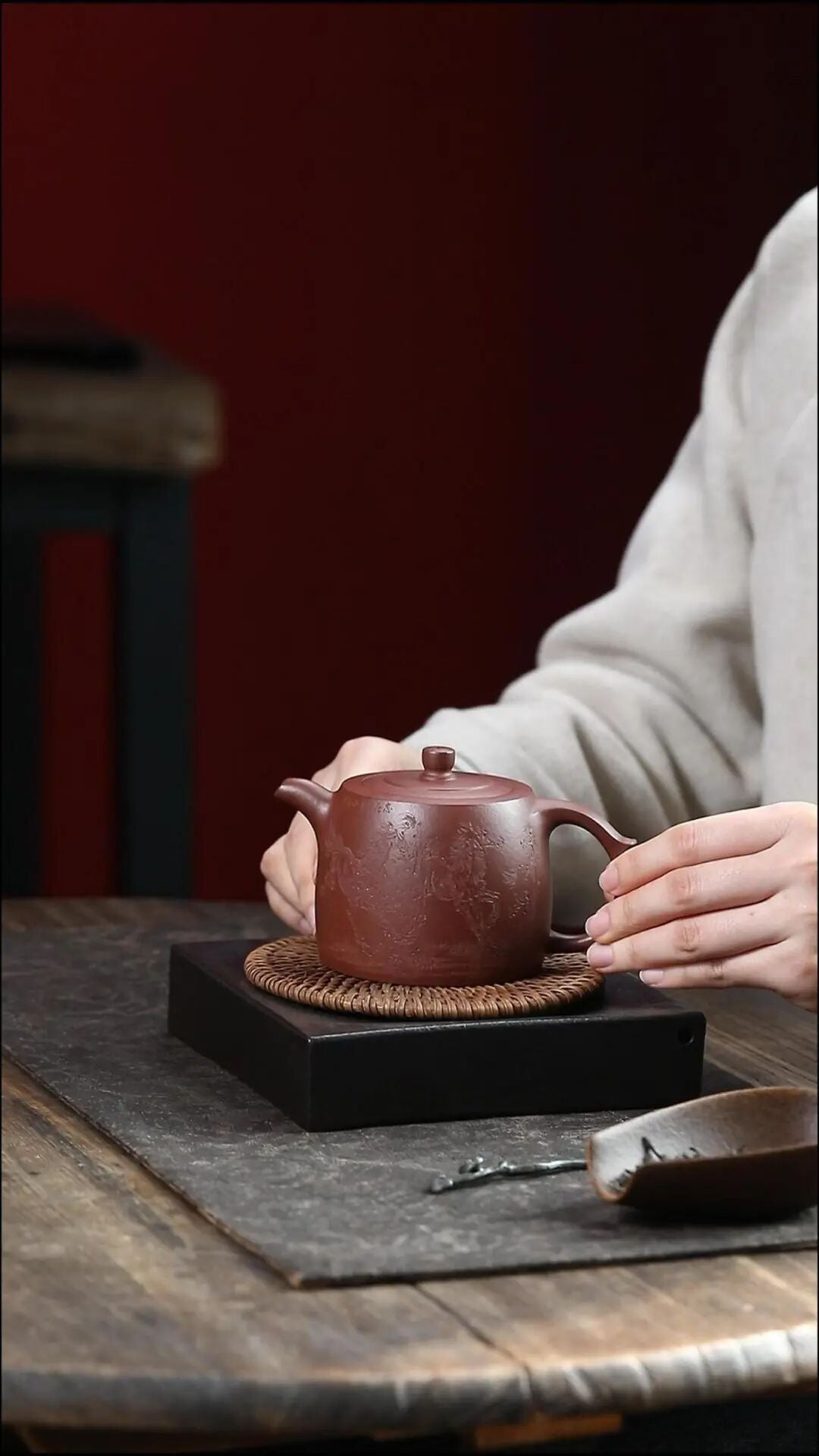 一面是当代紫砂工艺师的匠心。将二维平面的画作,转化为三维立体的壶器装饰,需要极高的艺术再创造能力。工艺师不仅理解了徐悲鸿马的精神内核,更通过紫砂语言进行了完美转译。