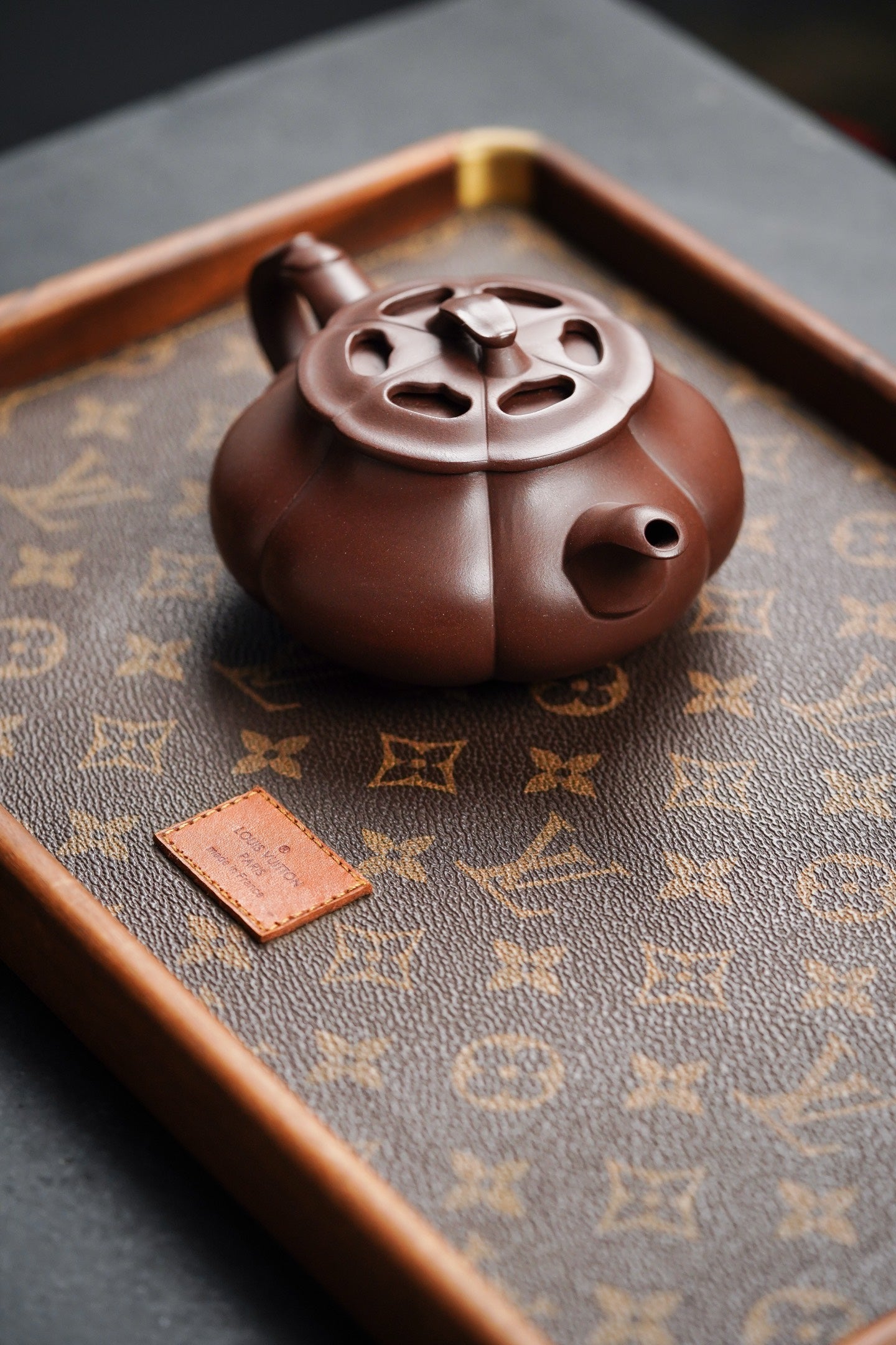线条柔顺不失力道,改为锦囊后不失原款器型的稳重大气感,钮把嘴的配合巧妙精准,短直流延壶腹弧度斜向上伸,出水畅顺。弱水三千,仅饮一瓢!