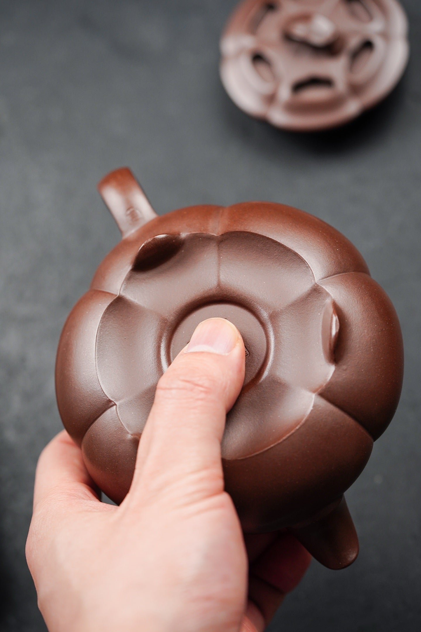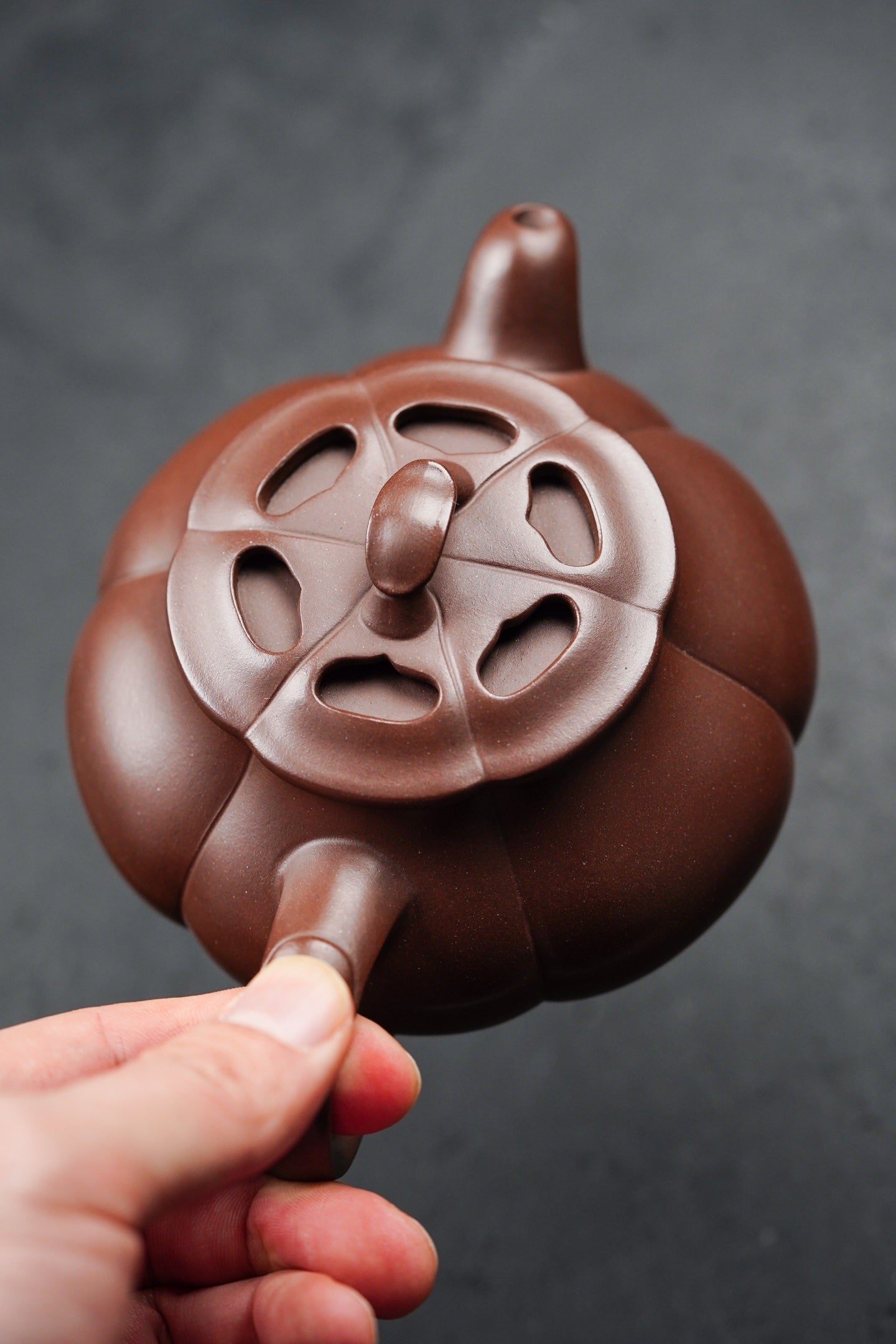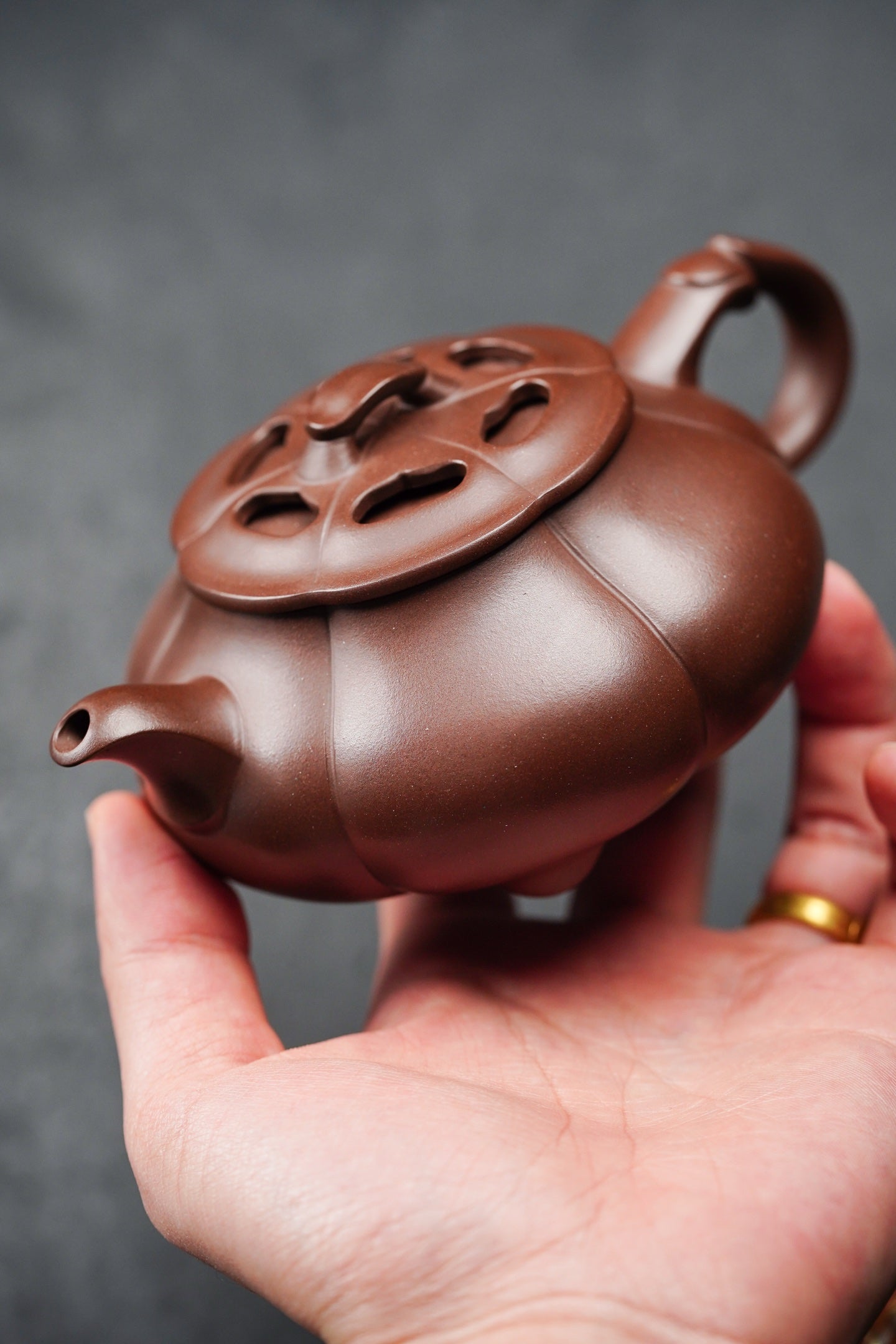 筋纹简瓢·镂空设计 240cc·原矿深井老紫泥 弱水三千,仅饮一瓢
