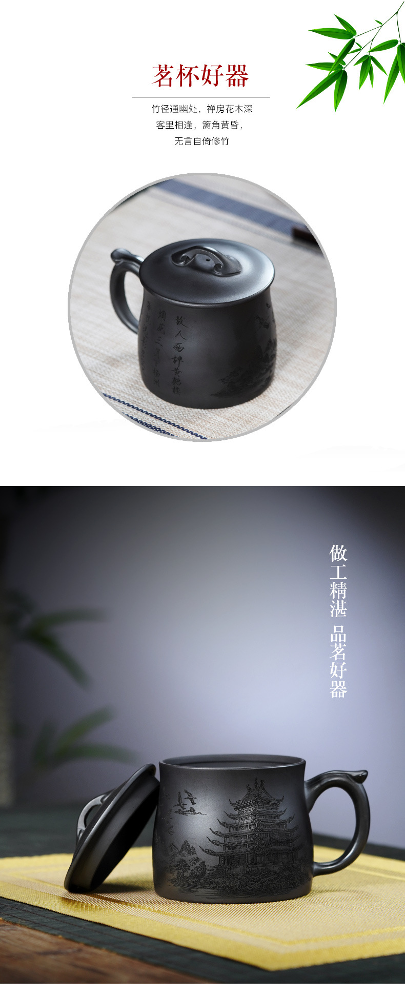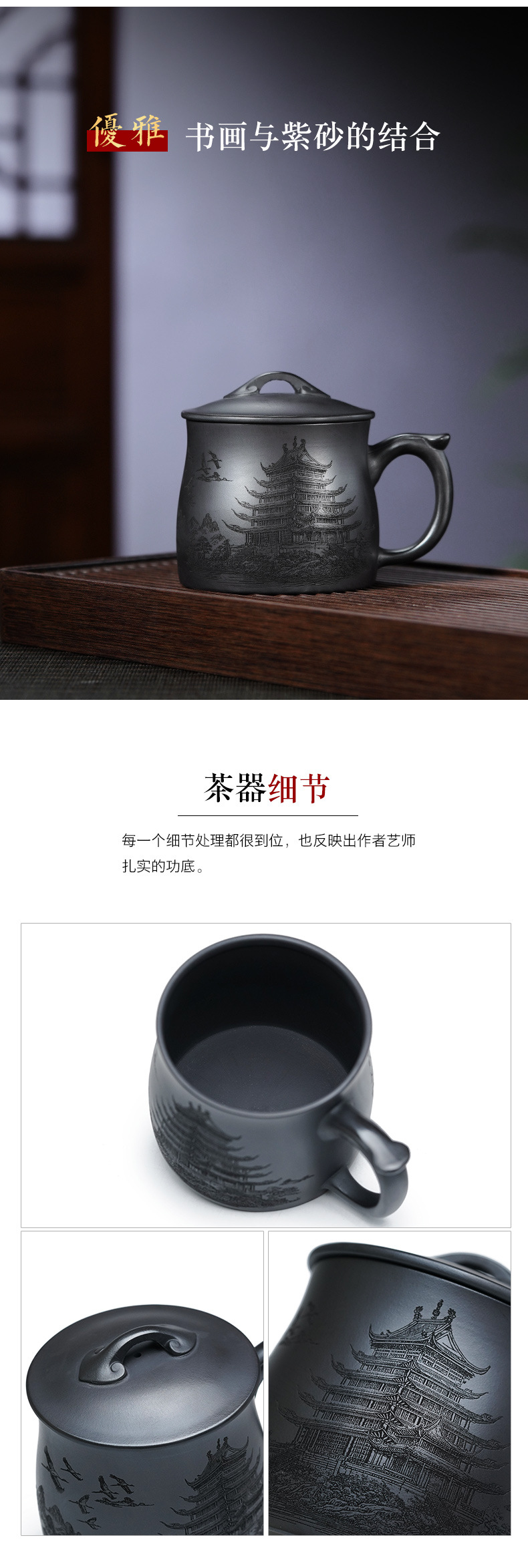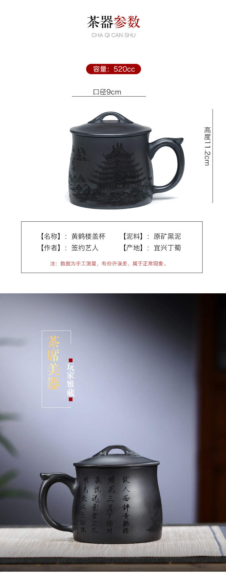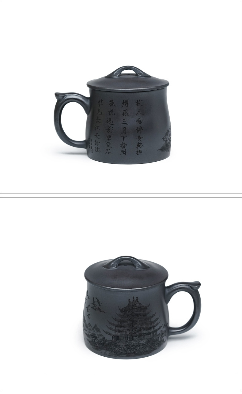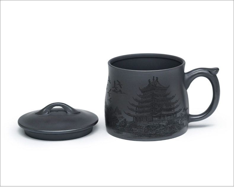 purple clay cup Yellow Crane Tower Purple Sand Cover Cup Handmade