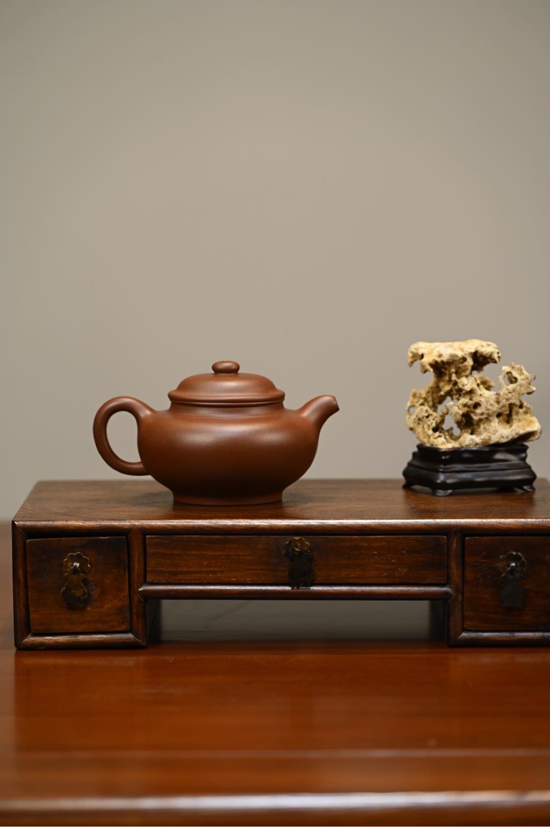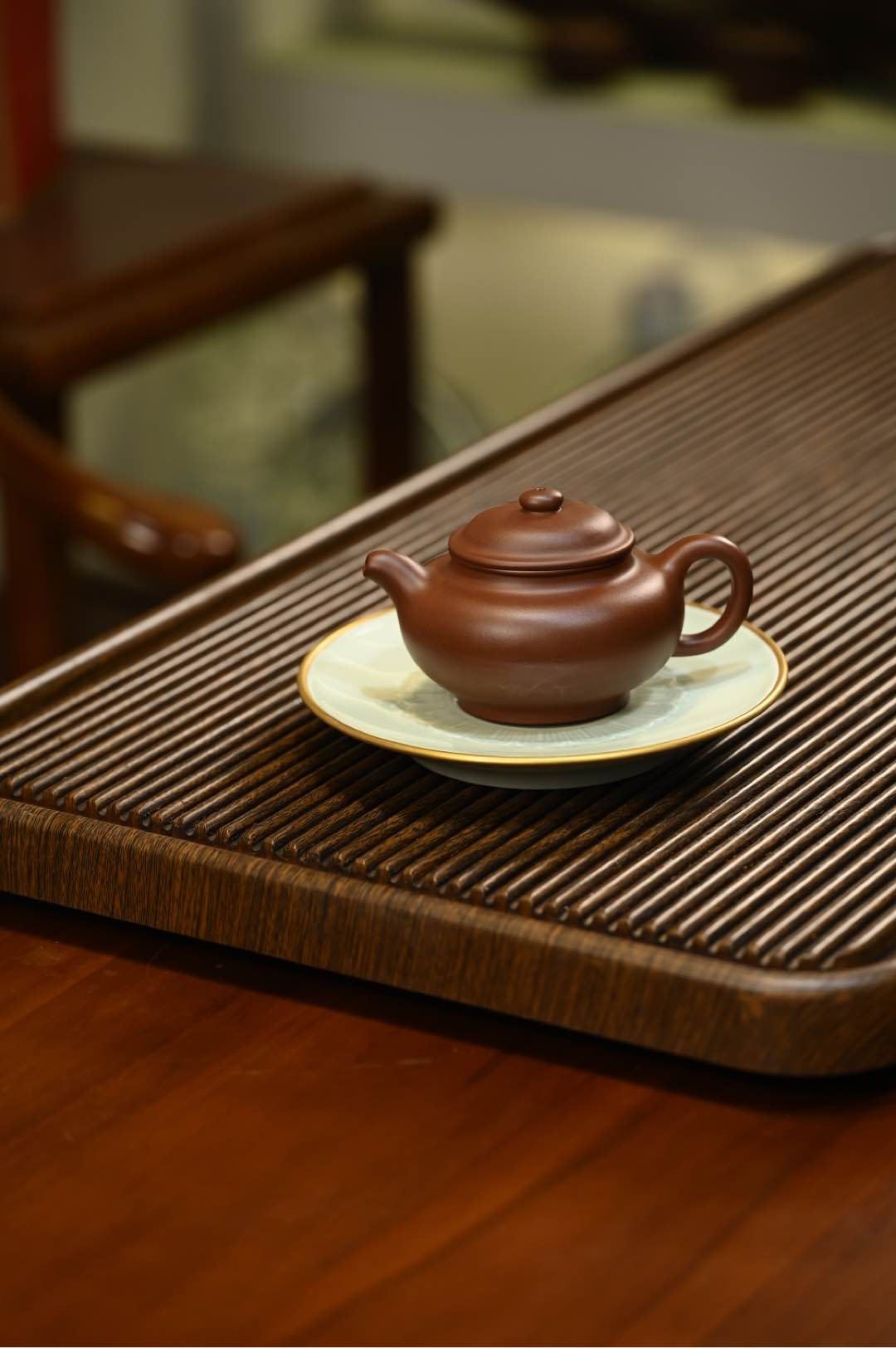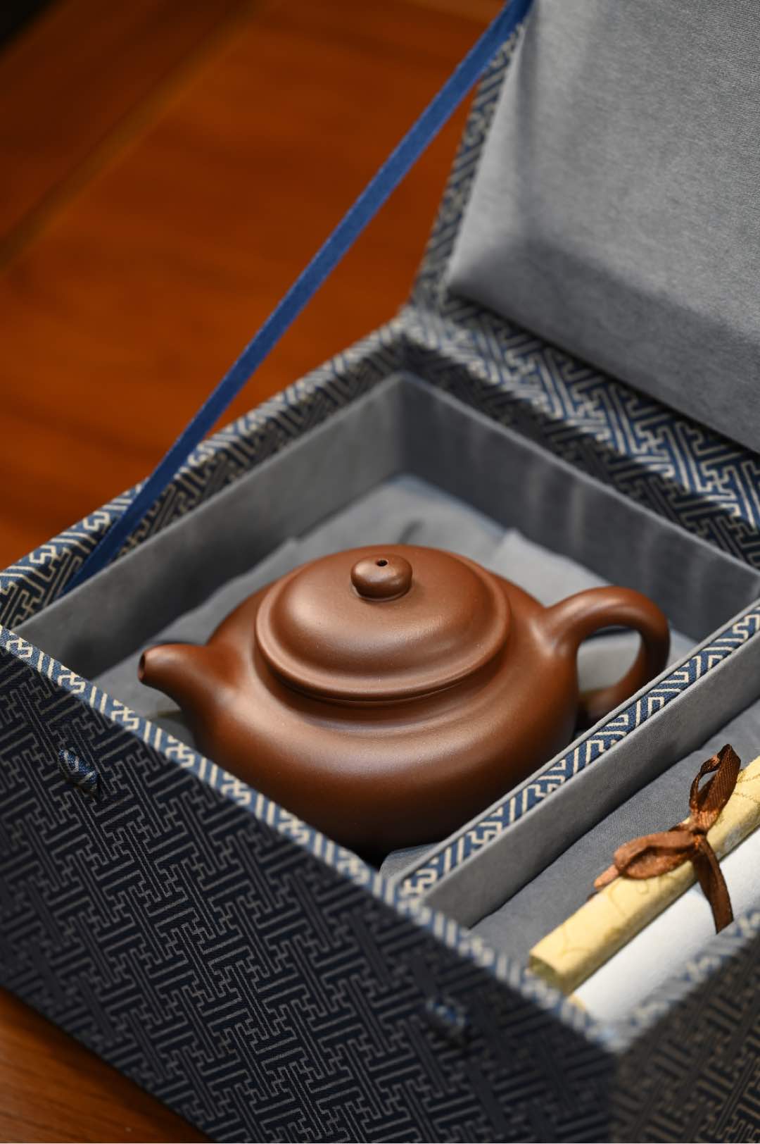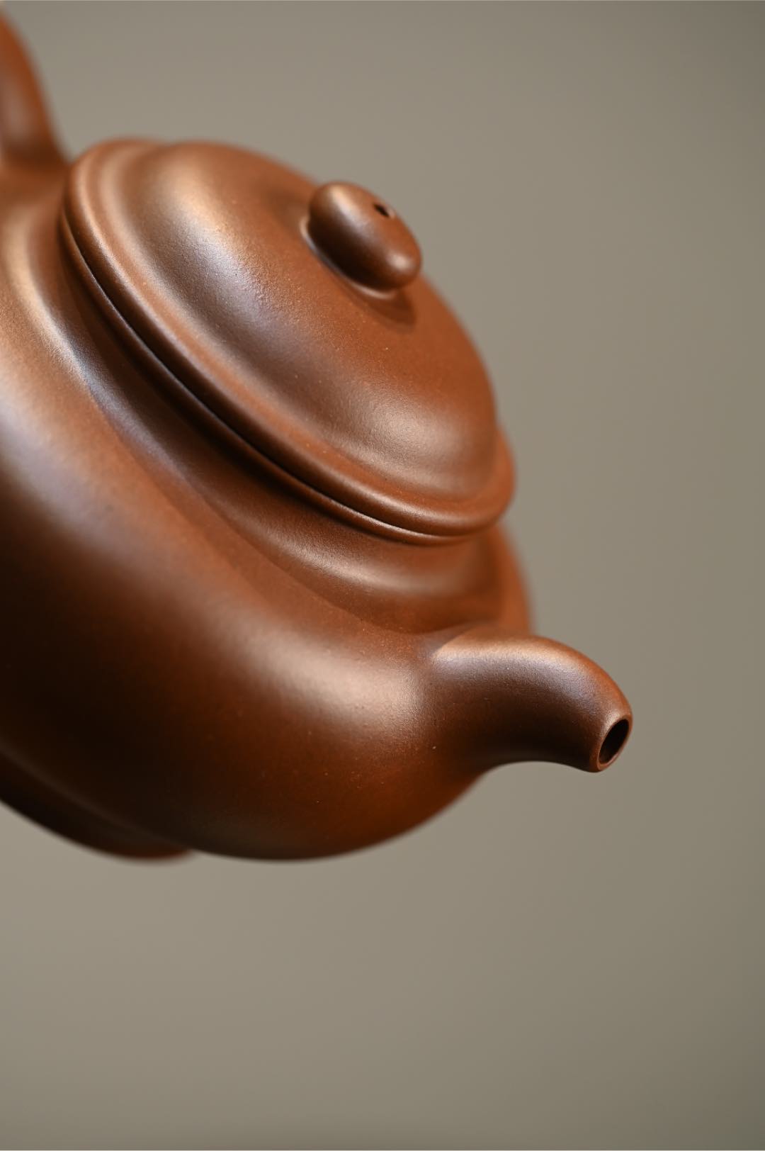 造型简洁大气,莹润饱满,壶嘴、壶把朴素自然,一改纤巧糜繁之风,精练不失高雅,美观灵动,以简练线条体现其内蕴,昂扬挺拔,气韵夺人。