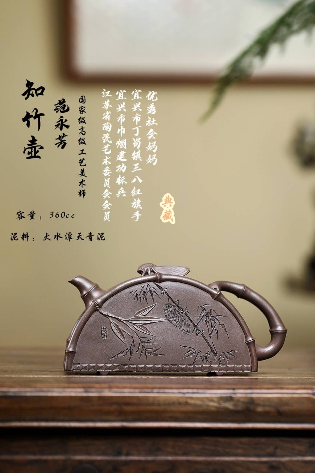 【小四方·松】 刘彩萍(国家级工艺美术师)原矿青段泥 容量 250cc