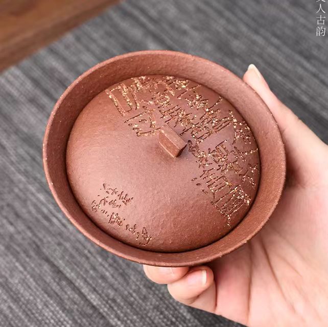 全纯手工100CC宜兴原矿正宗紫砂清凤盖碗茶杯单个刻绘高档茶具套装礼品