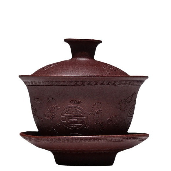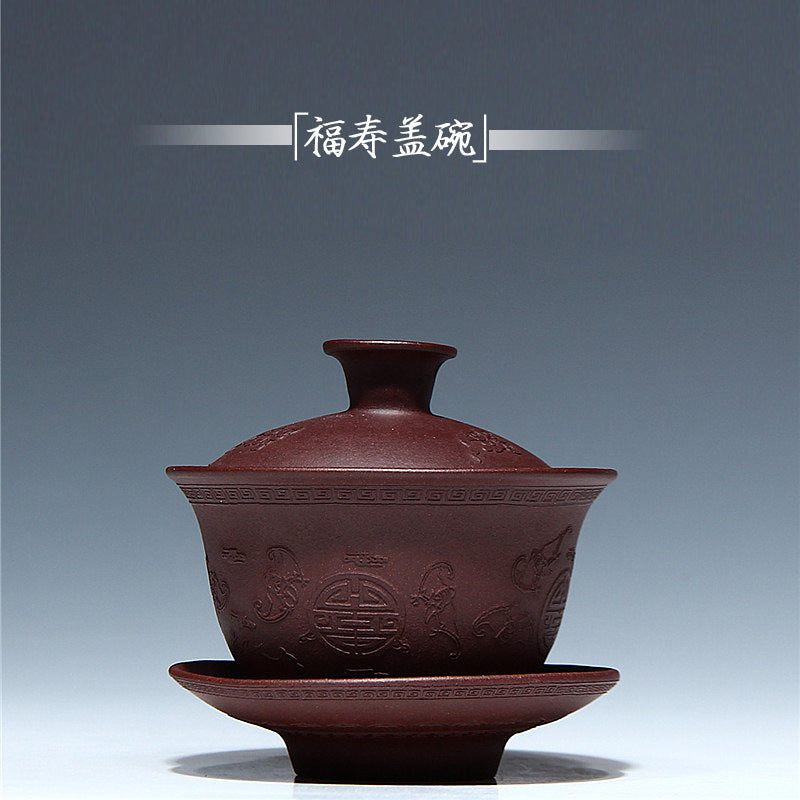宜兴紫砂盖碗 紫砂茶碗批发原矿正品小号福寿三才碗110毫升