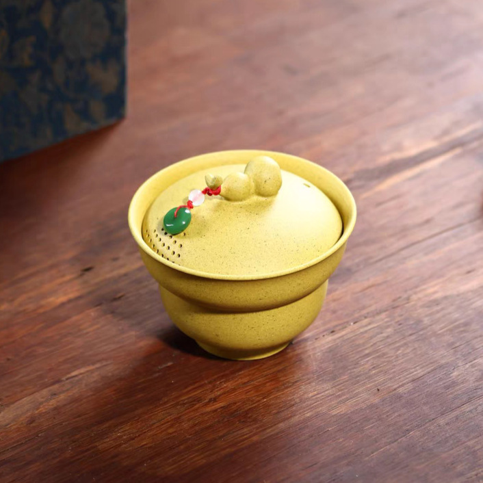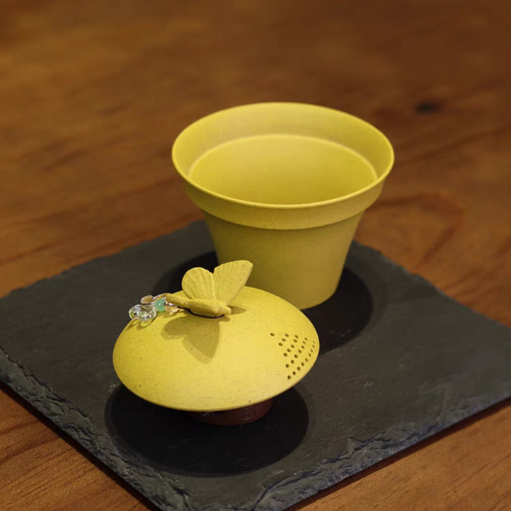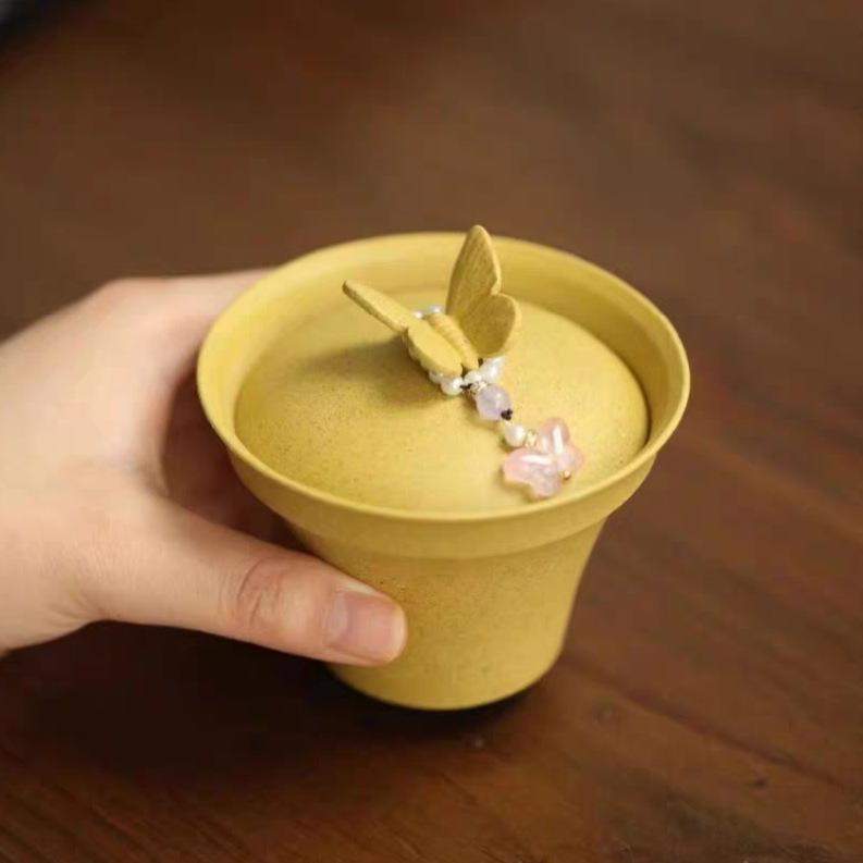 原矿紫砂精品茶具手工茶杯盖碗 套组 泡茶碗杯 玉兰花蝴蝶葫芦