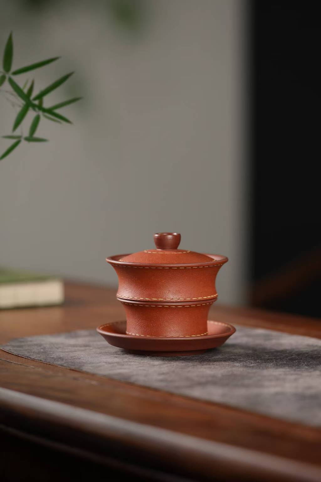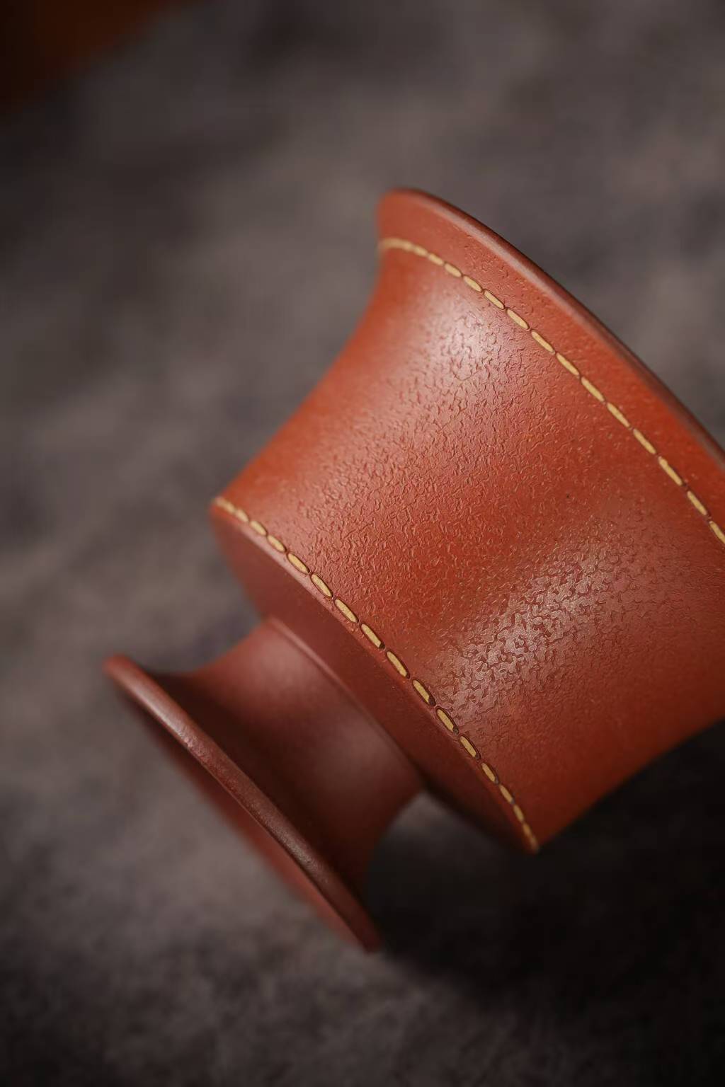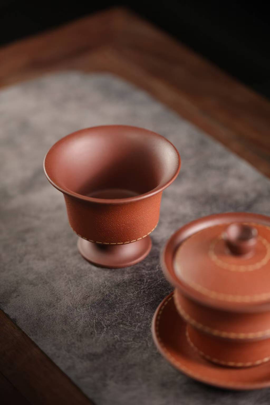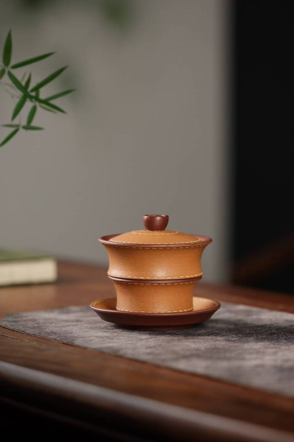 宜兴紫砂三才盖碗150CC/110CC创意皮革纹功夫茶具茶杯双色粉浆