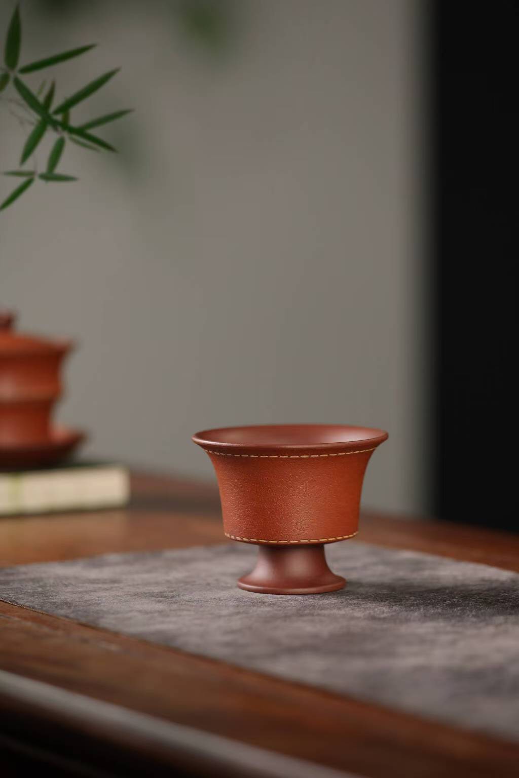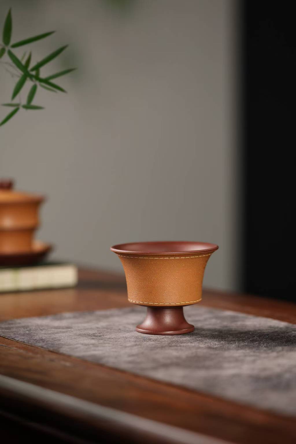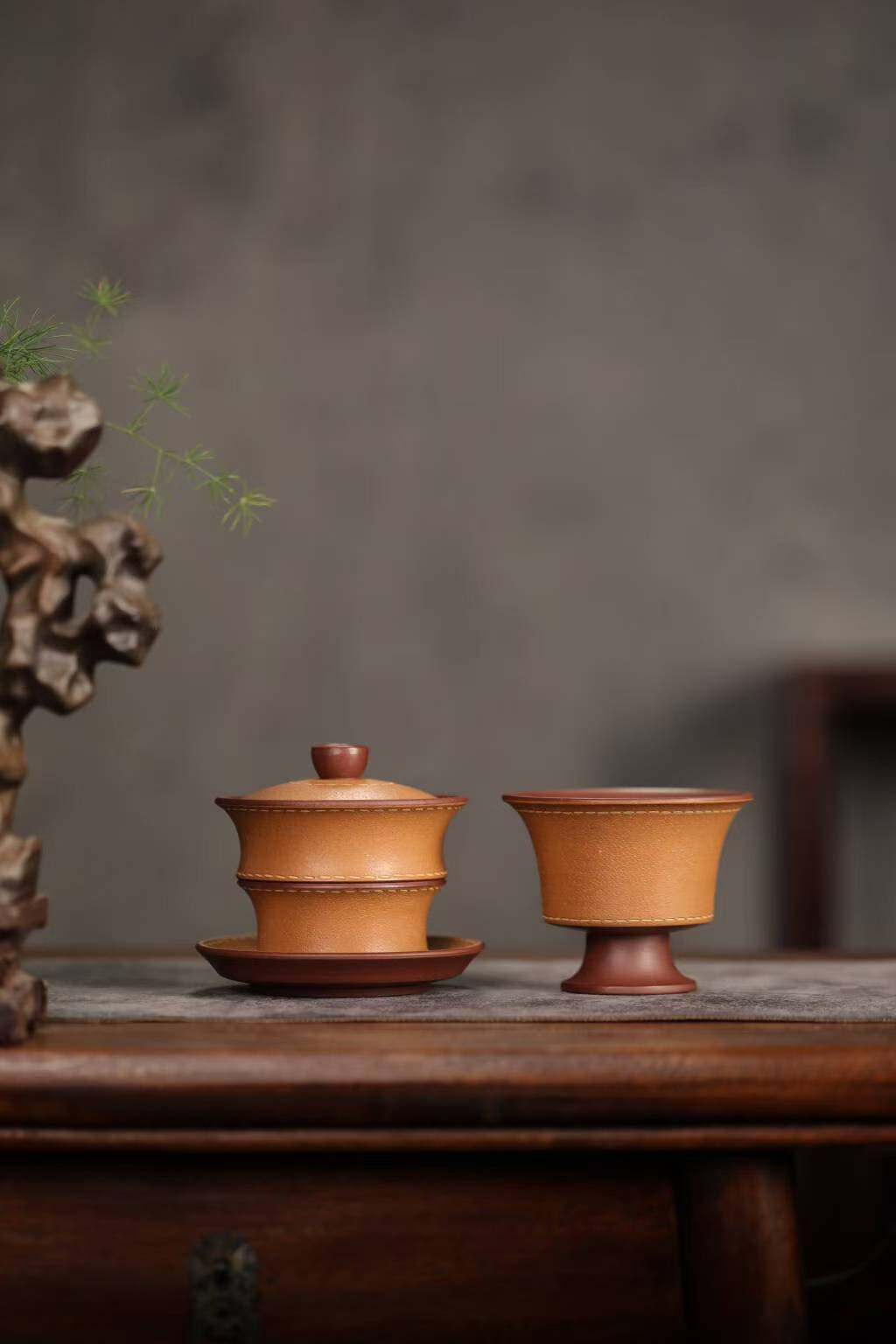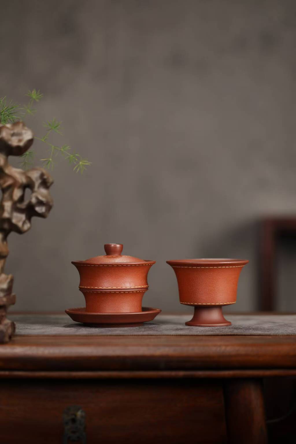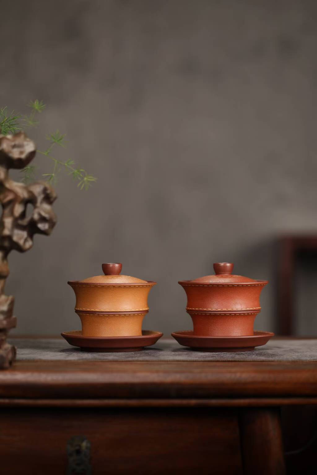 宜兴紫砂三才盖碗150CC/110CC创意皮革纹功夫茶具茶杯双色粉浆