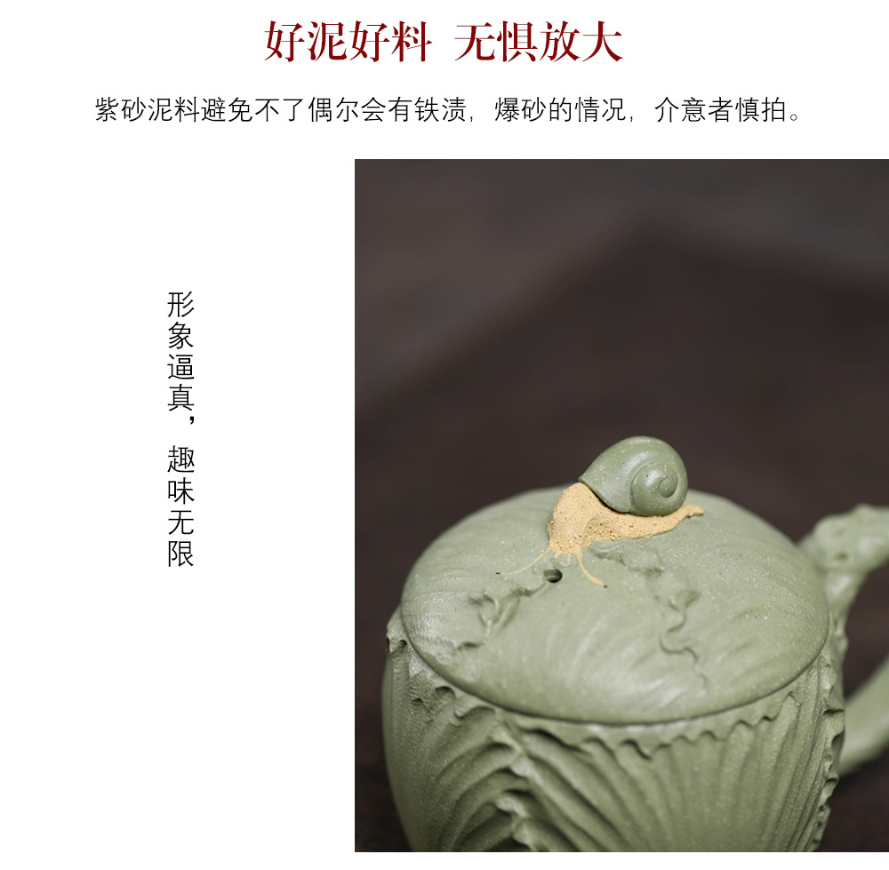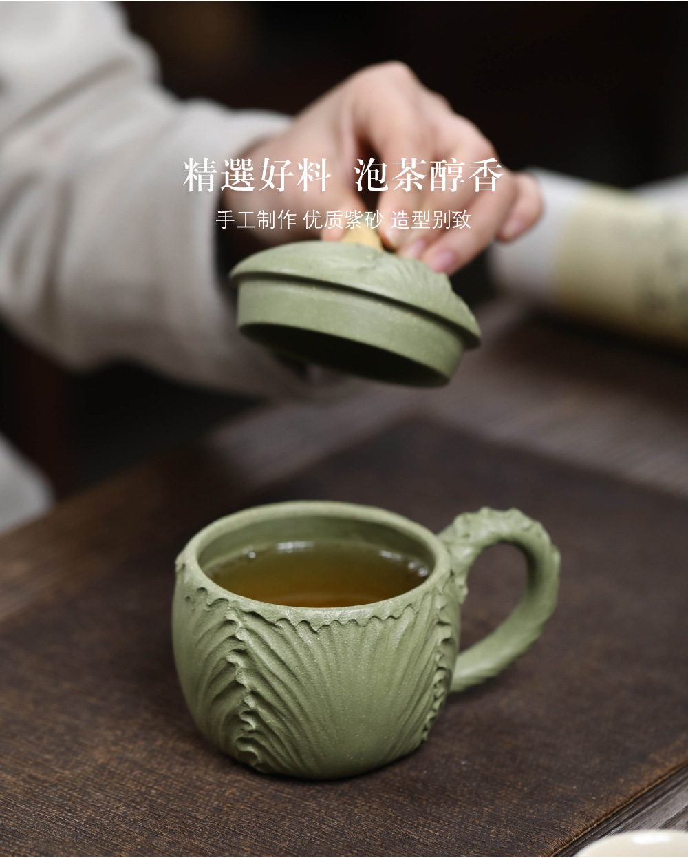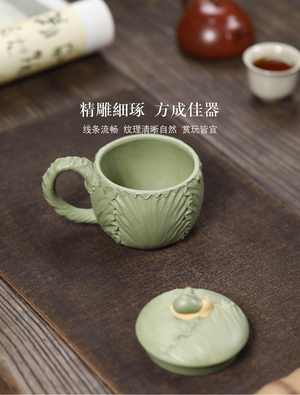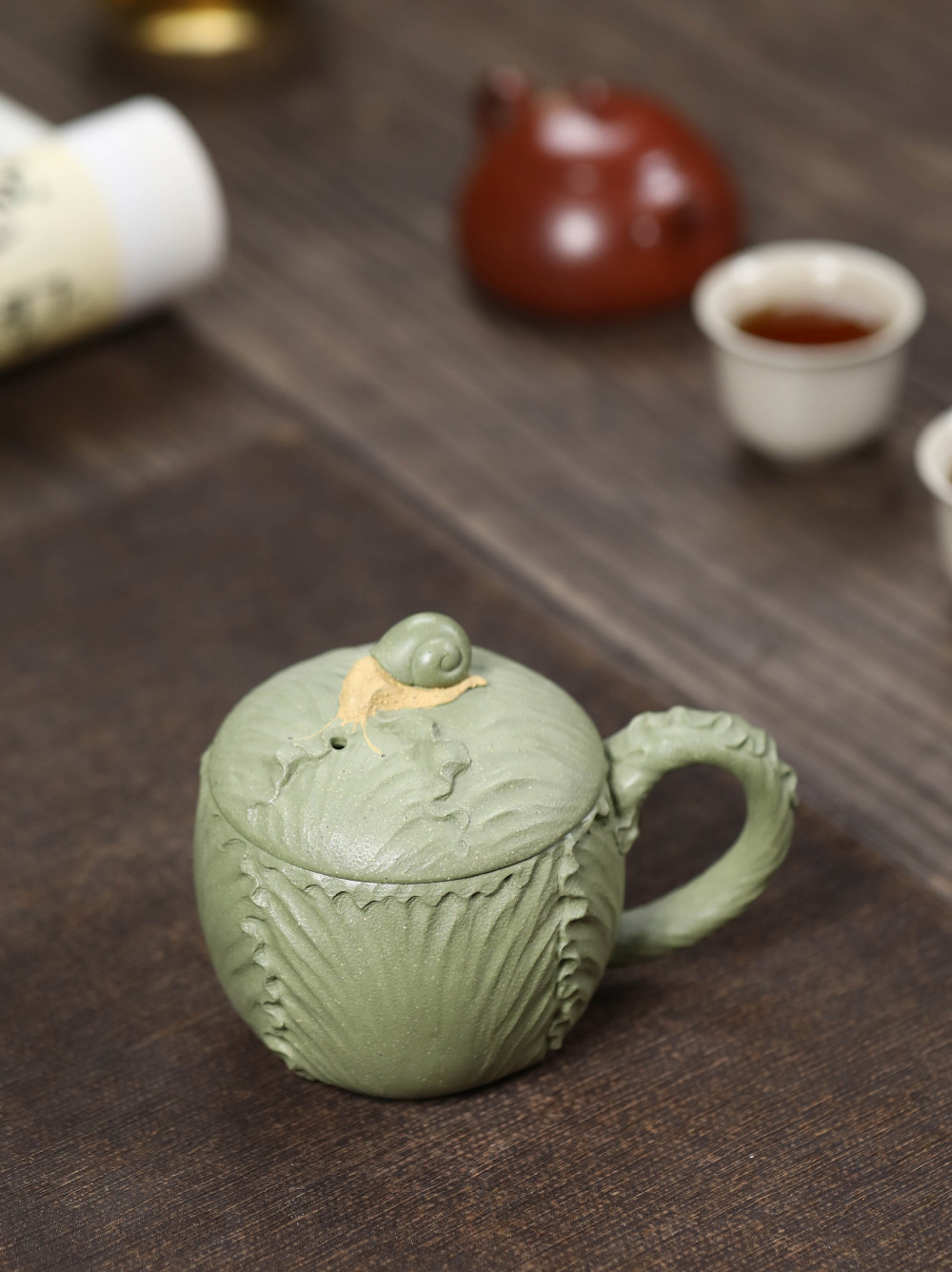 宜兴紫砂主人杯茶杯230CC手工创意仿生白菜百财蜗牛杯功夫品茗杯盖杯