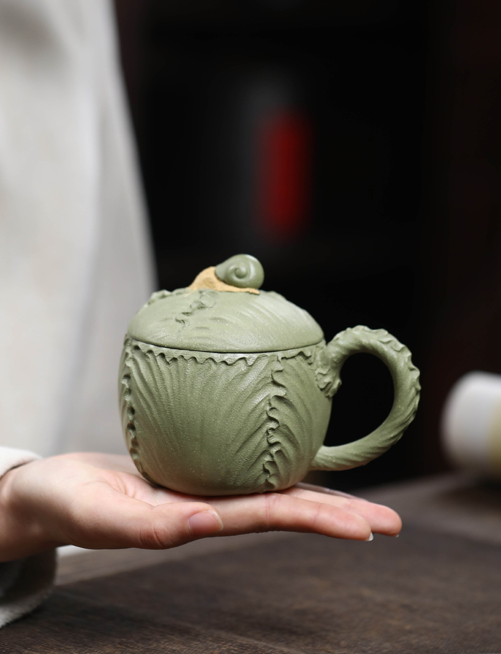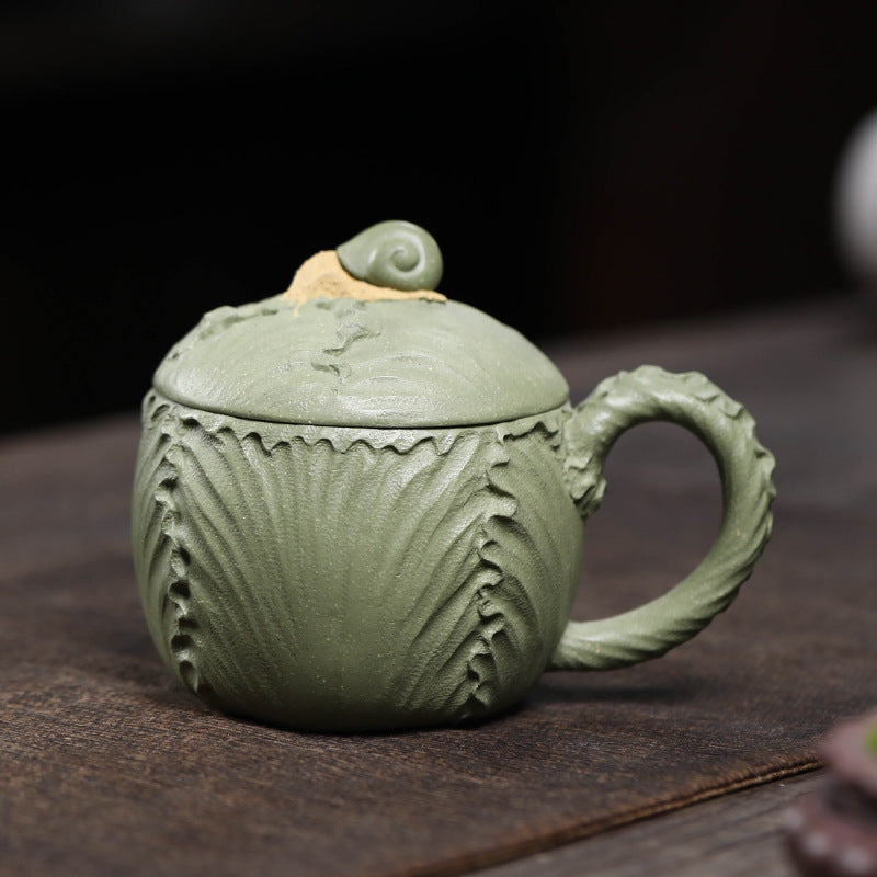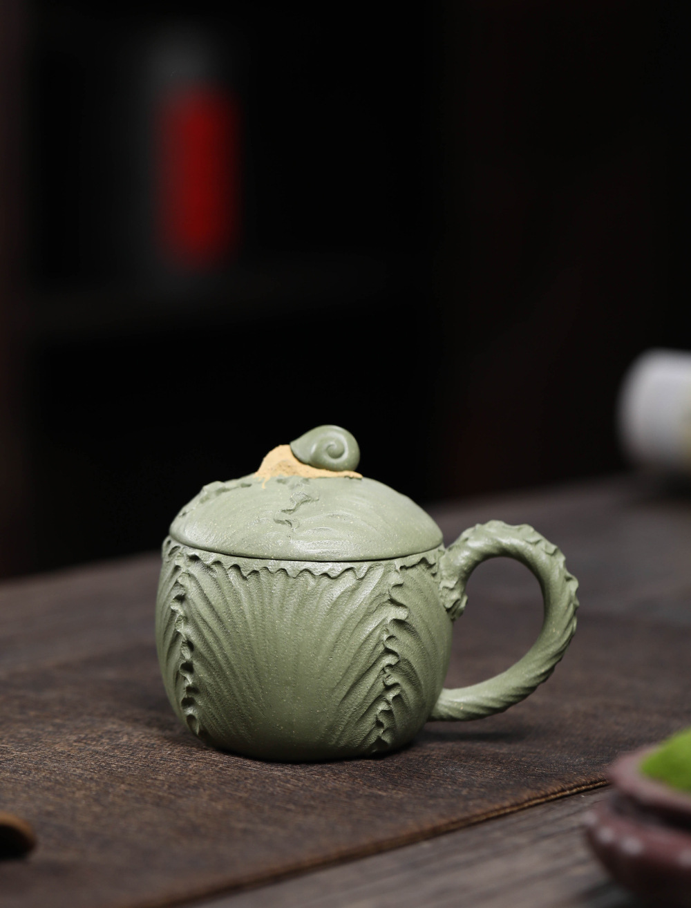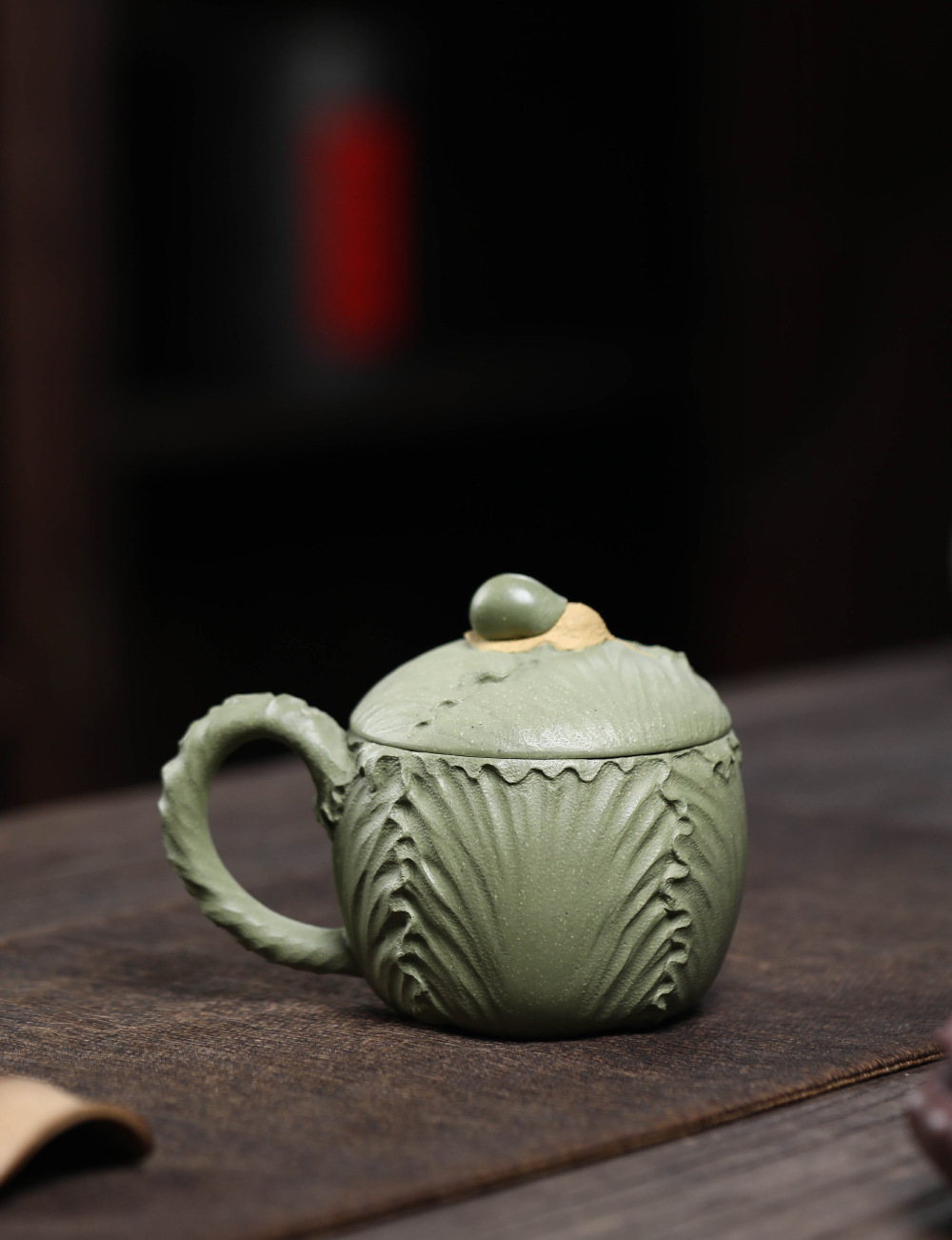宜兴紫砂主人杯茶杯230CC手工创意仿生白菜百财蜗牛杯功夫品茗杯盖杯