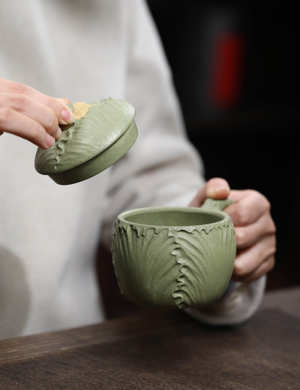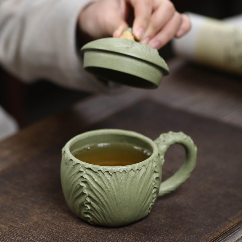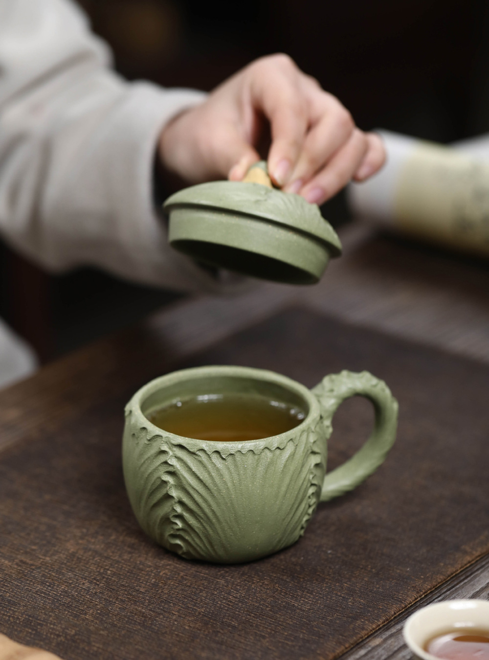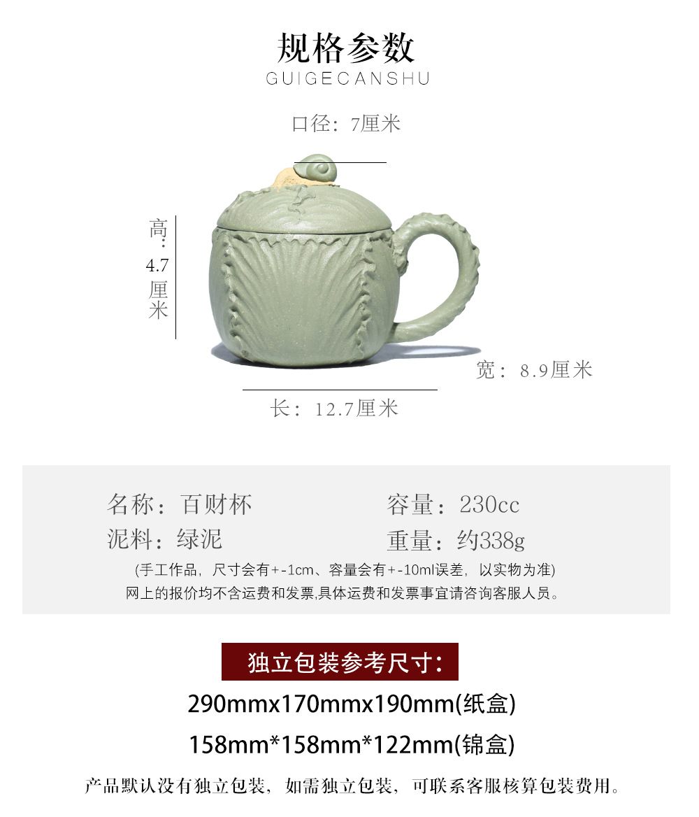 宜兴紫砂主人杯茶杯230CC手工创意仿生白菜百财蜗牛杯功夫品茗杯盖杯