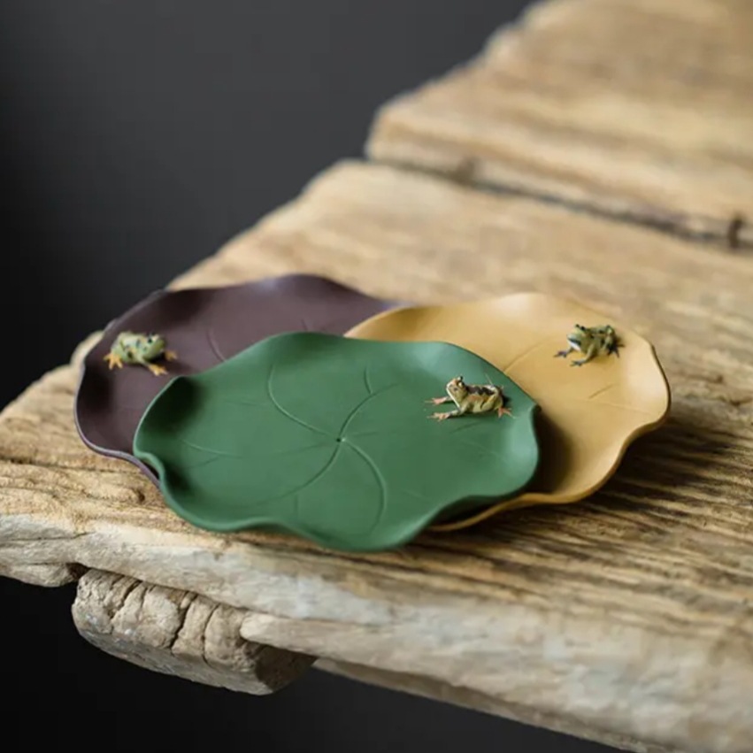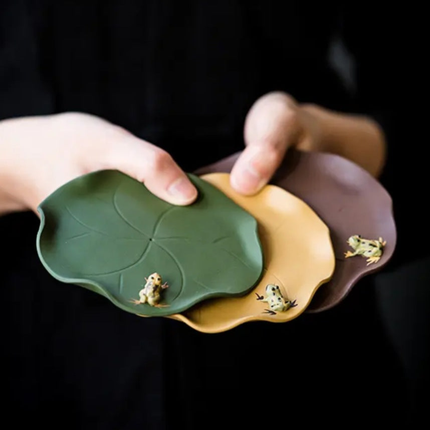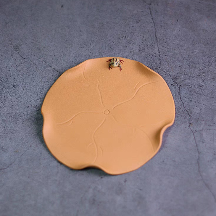 宜兴紫砂茶具配件茶托直径11.6CM原矿手工趣味荷叶青蛙仿生壶承壶垫杯垫杯托