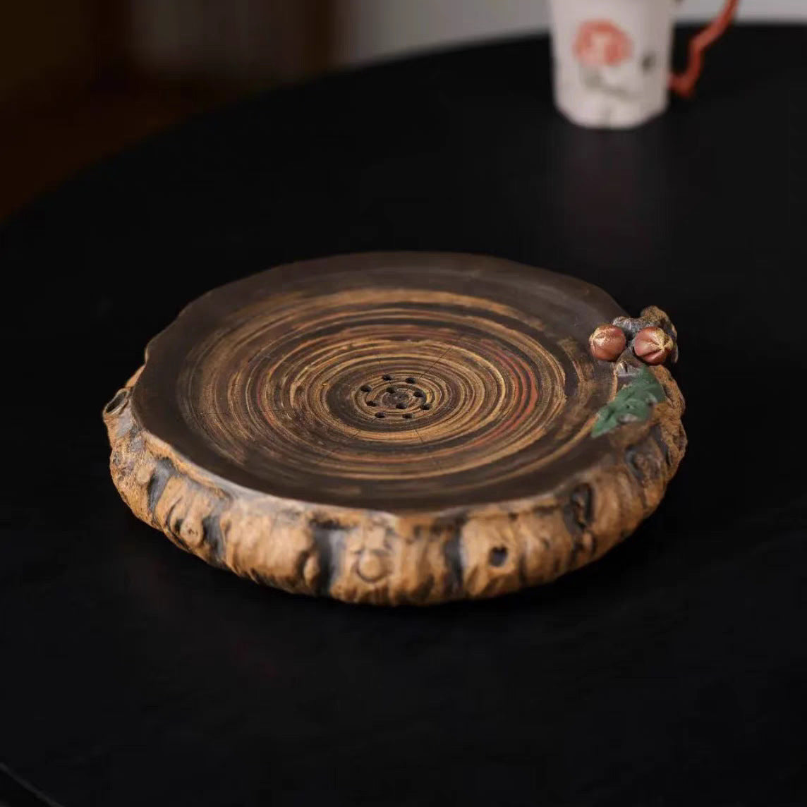 宜兴紫砂【桃子壶承双层可储水】直径18CM创意仿生桃子家用茶盘壶托茶盘