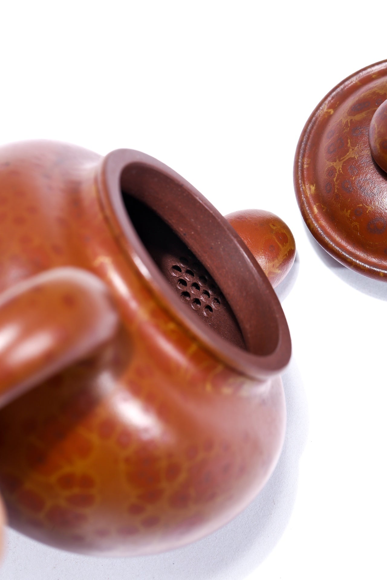 - 红金交织:壶身红褐与金黄纹理交织,形似鸿运当头、流光溢彩,寓意财源滚滚、富贵吉祥;