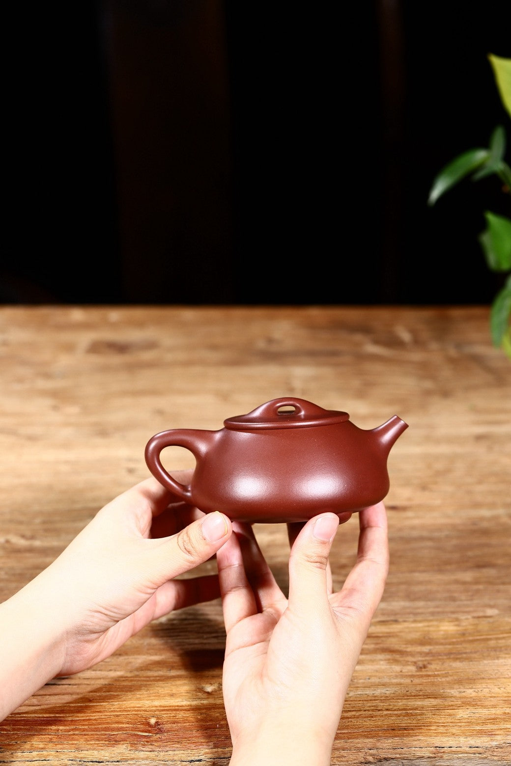 古朴内敛,实用性佳,光素器壶身工艺严谨,三角几何比例精准!紫砂易见,好“瓢”难寻!