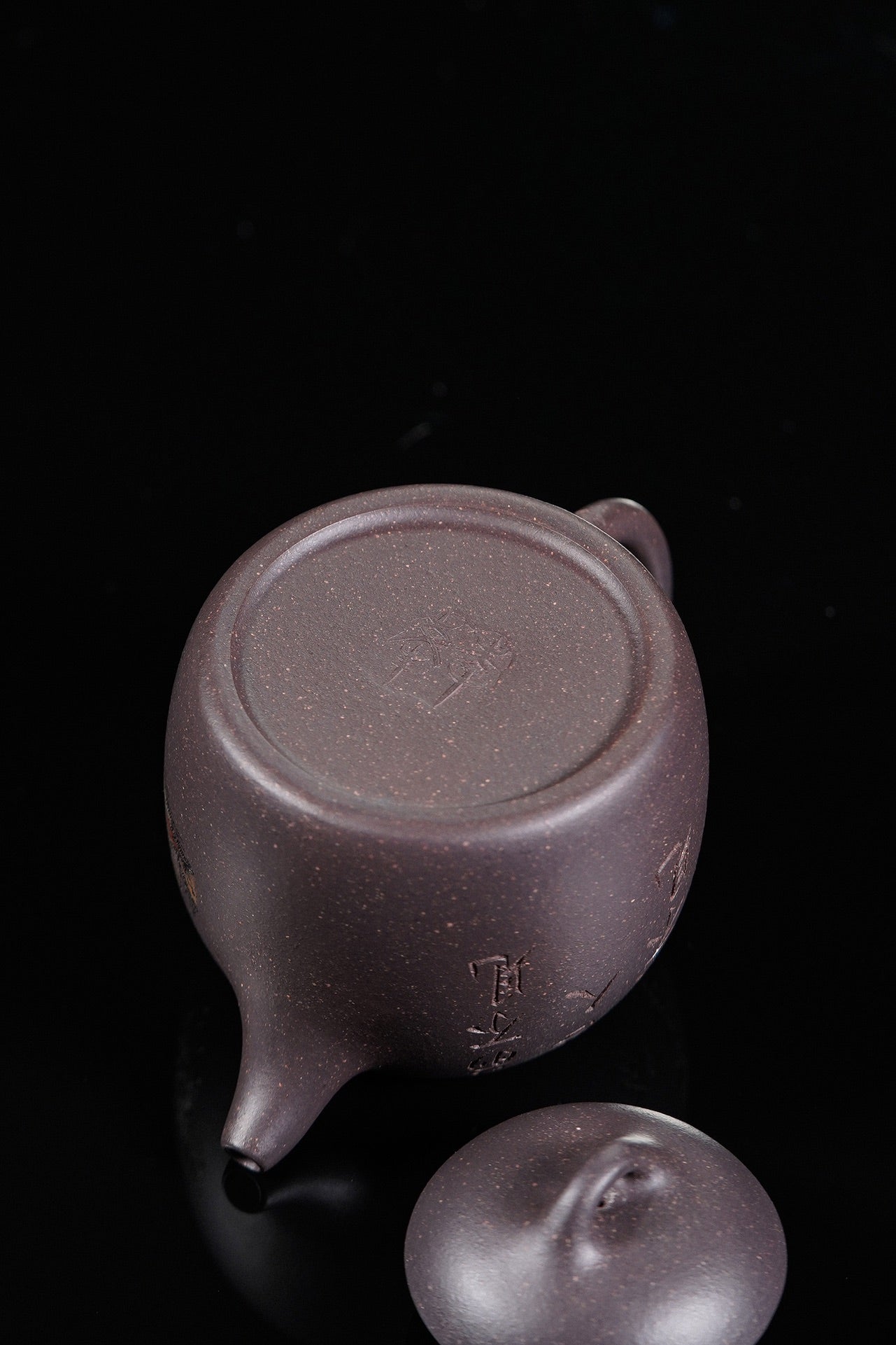 紫砂界彩刻山水标杆·李峰大师|恭王府馆藏臻品· 大拍16万同款《秦权壶》原矿极品天青泥·150cc