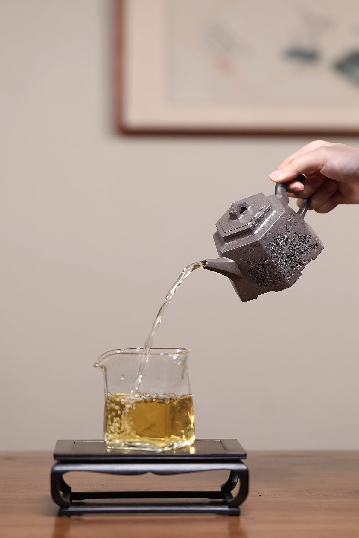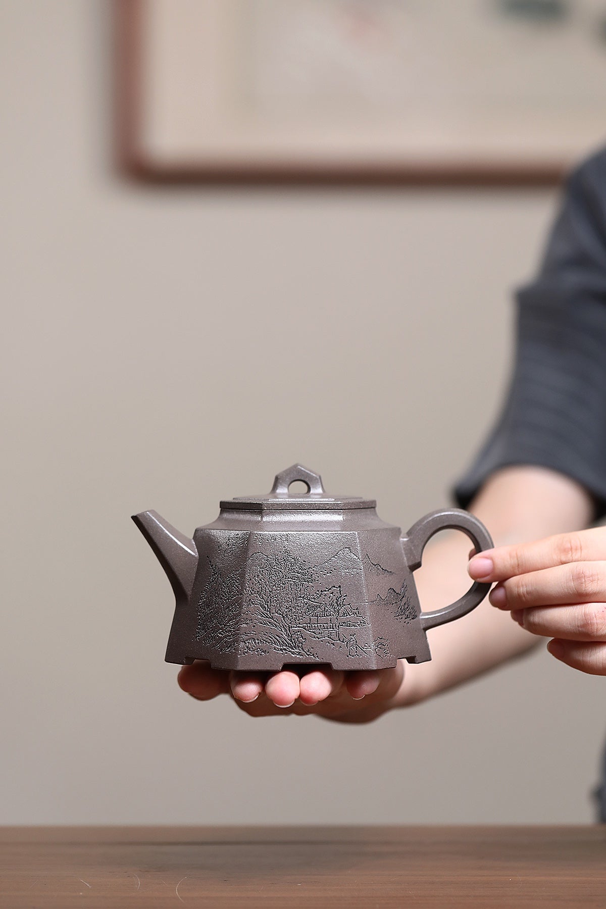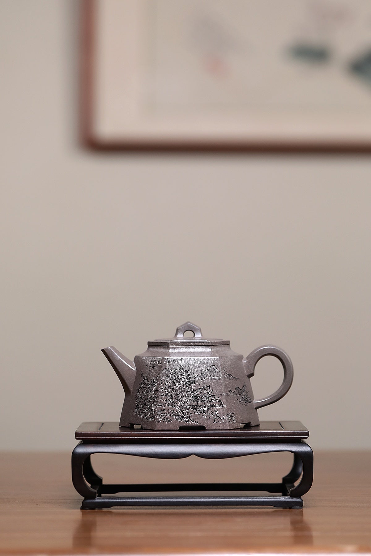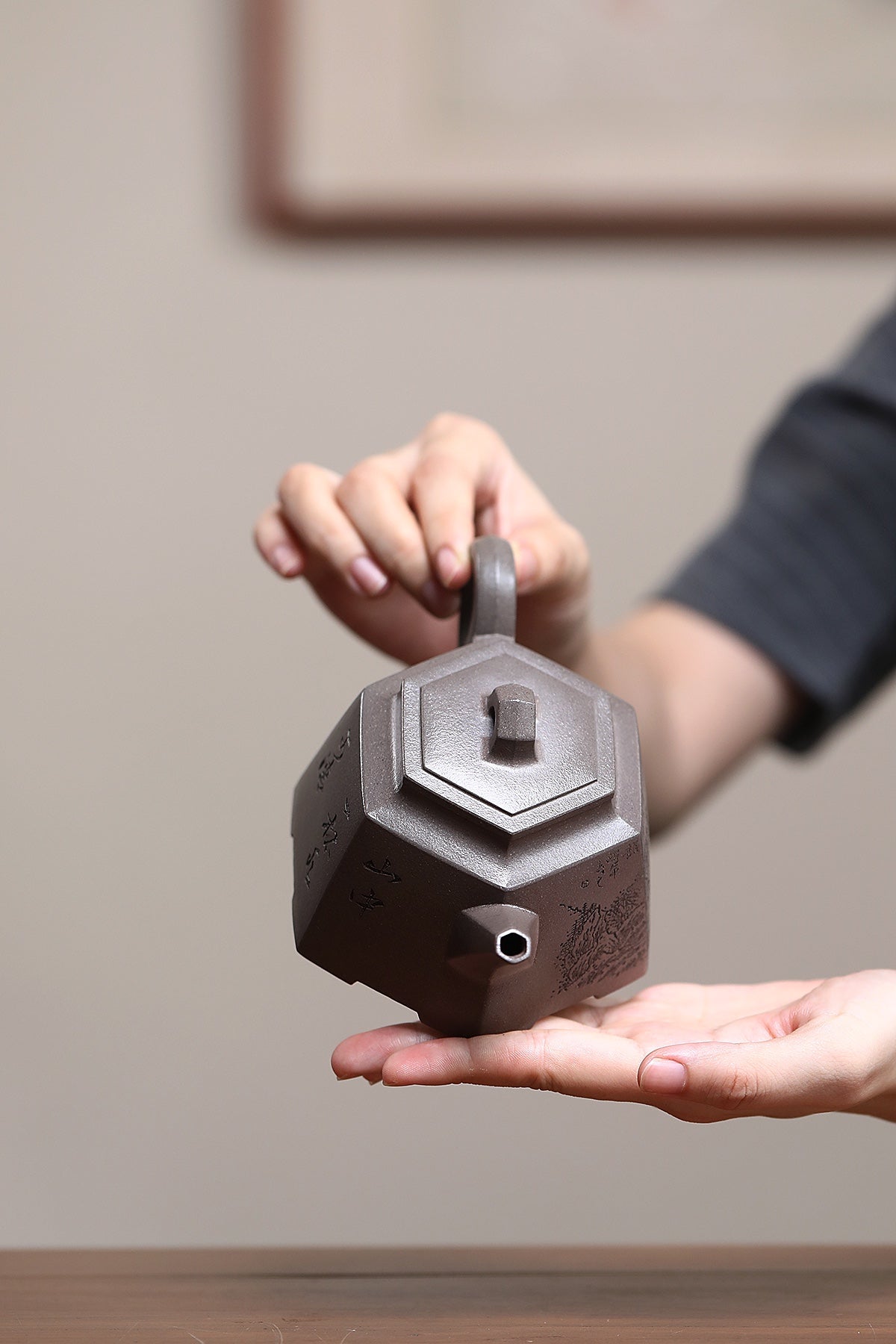 耿浩·方器臻藏 紫砂界80后方器巨匠扛鼎之作《六方井栏壶》原矿极品龙背青·320cc
