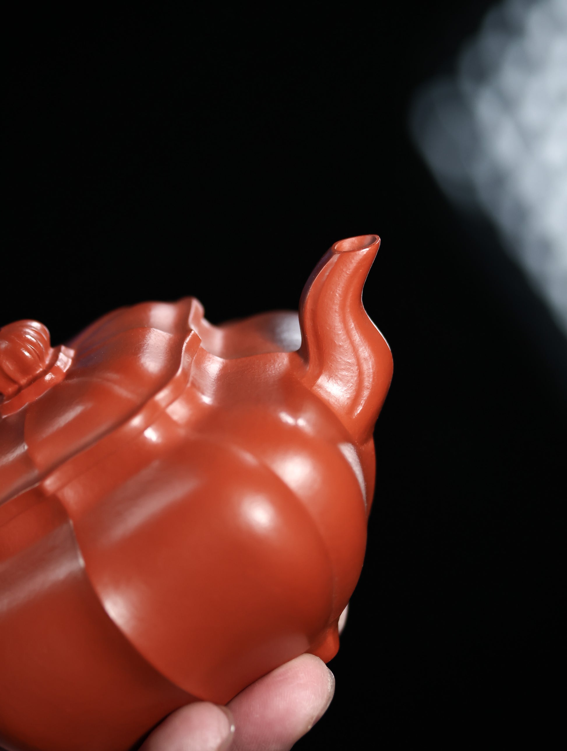 采用优质大红袍精工制作,传炉是紫砂壶的一个经典器形,其造型取材于青铜器,色泽醇厚,富有更多的神秘和细腻;此传炉器身形状以锦纹器为基本形,比一般方器圆器多了一份花纹和平等和谐之美;锦纹造型难度亦高,三弯流式曲折有致,出水流畅;壶盖延续了全器造型特微,压盖形式,制作精良的壶盖要能四面通转无碍,且面面俱到,能接续全壶气韵;底足皆采用四颗“钉足”形式,且多属短柱型,精巧别致,落地稳重。欢迎收藏。