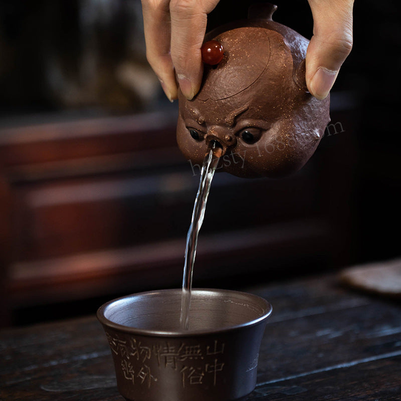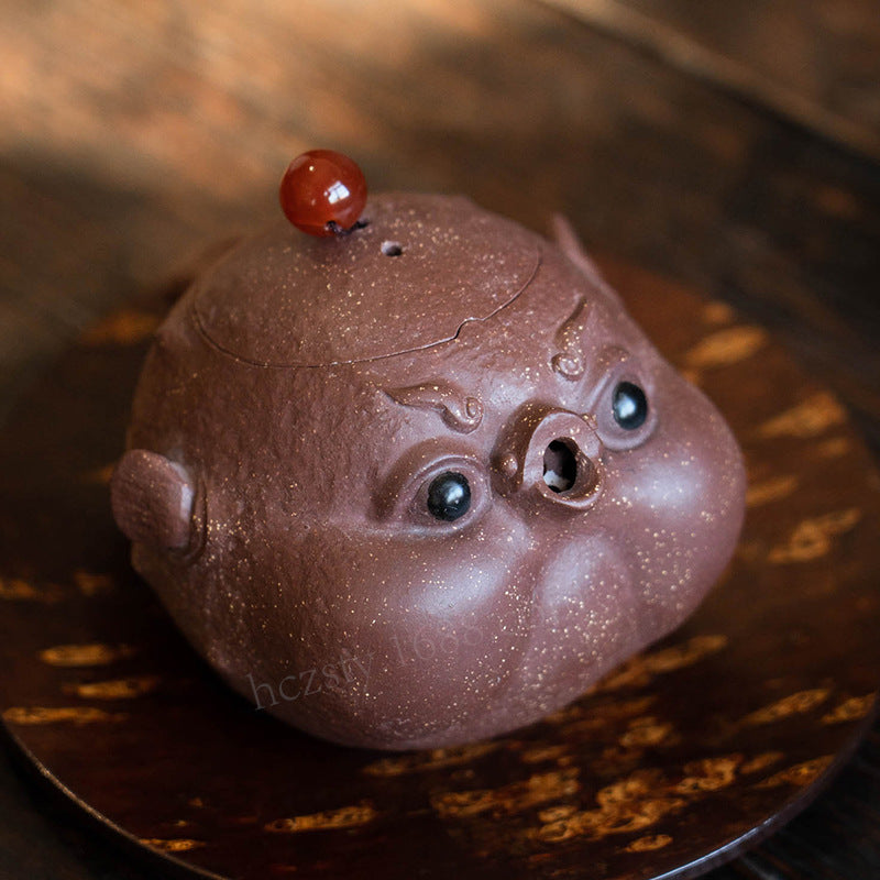 宜兴紫砂壶160CC河豚壶原矿手工内球孔手抓壶分茶器雕塑茶具泡茶盖碗