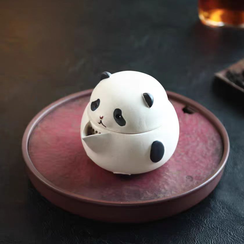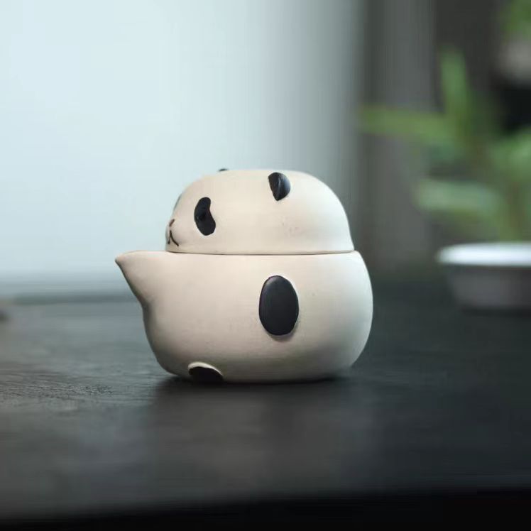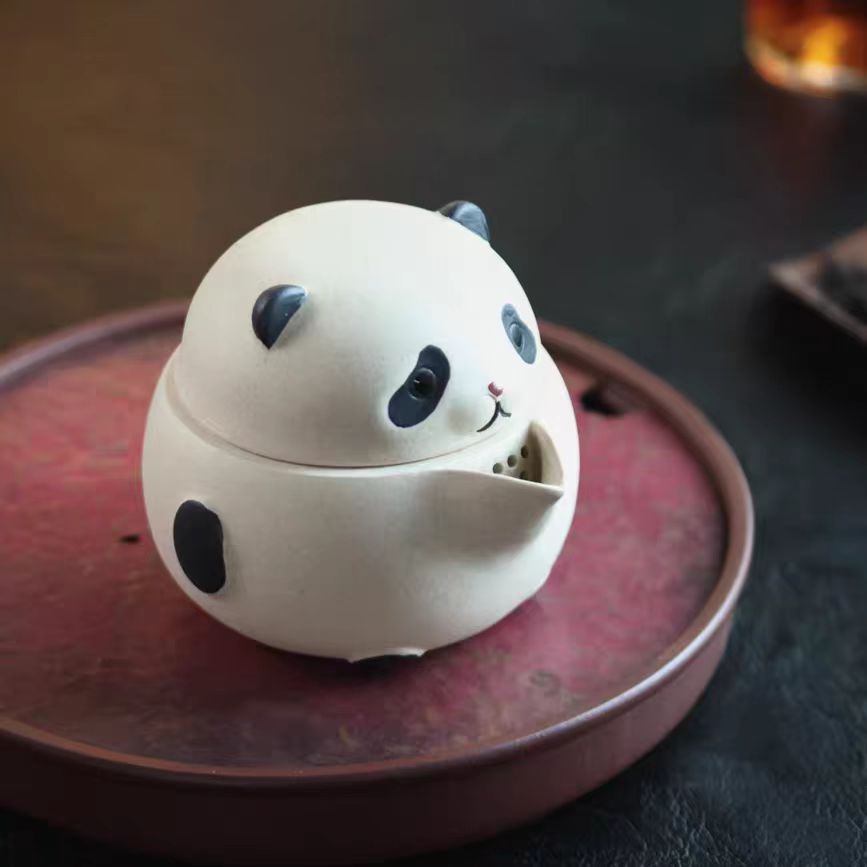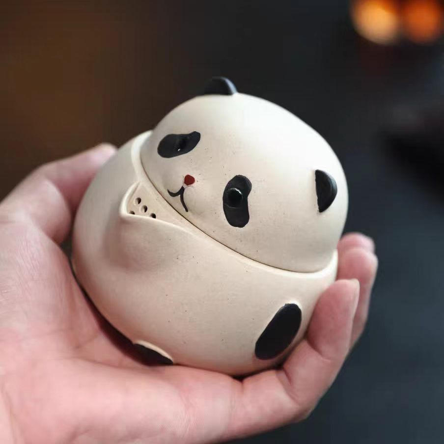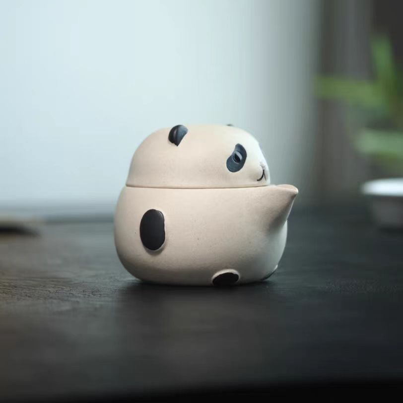宜兴紫砂壶200CC熊猫手抓壶原矿手工分茶器茶叶罐雕塑茶具泡茶盖碗