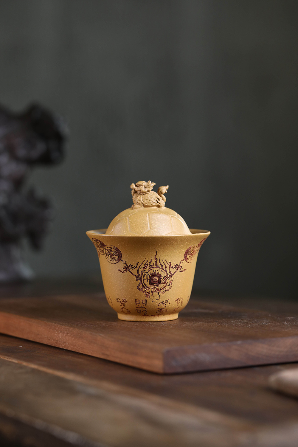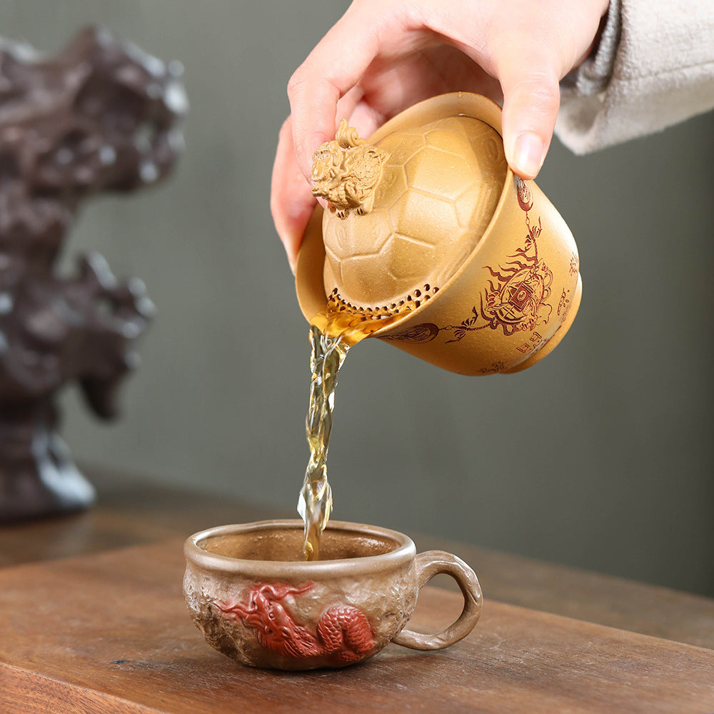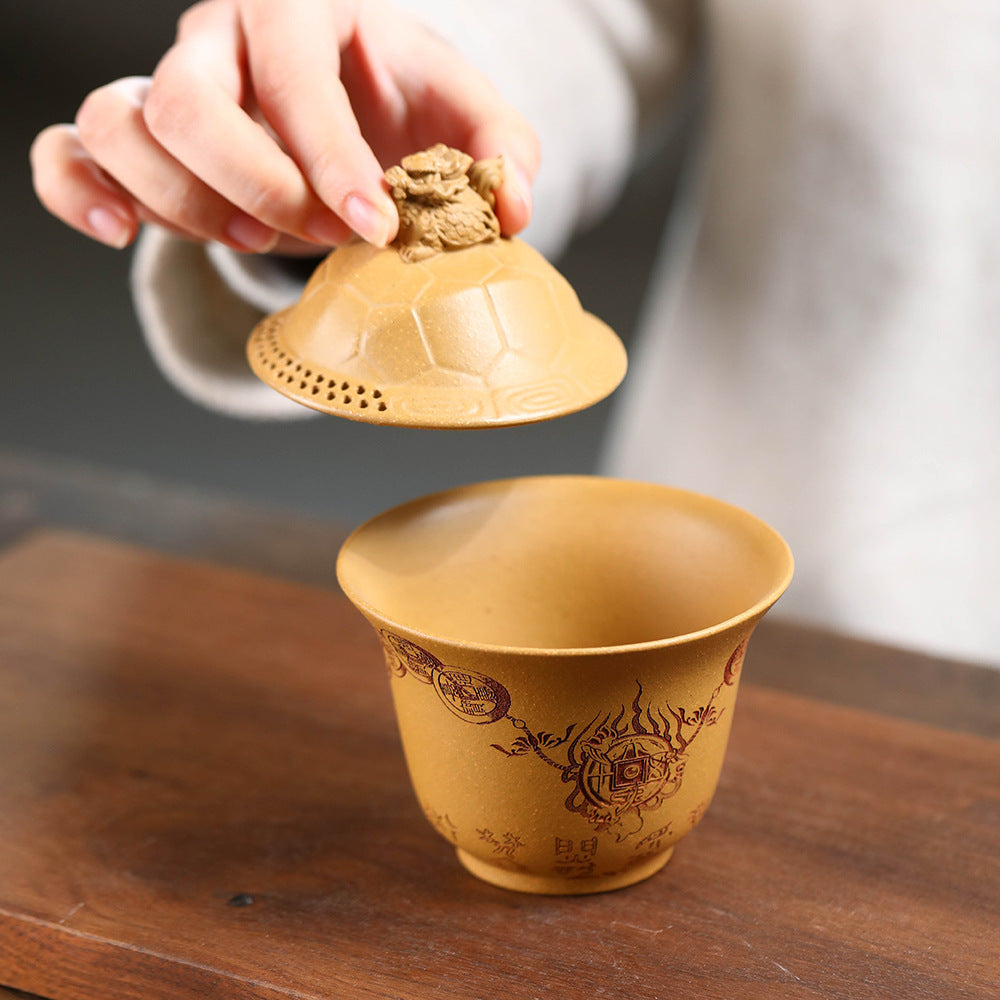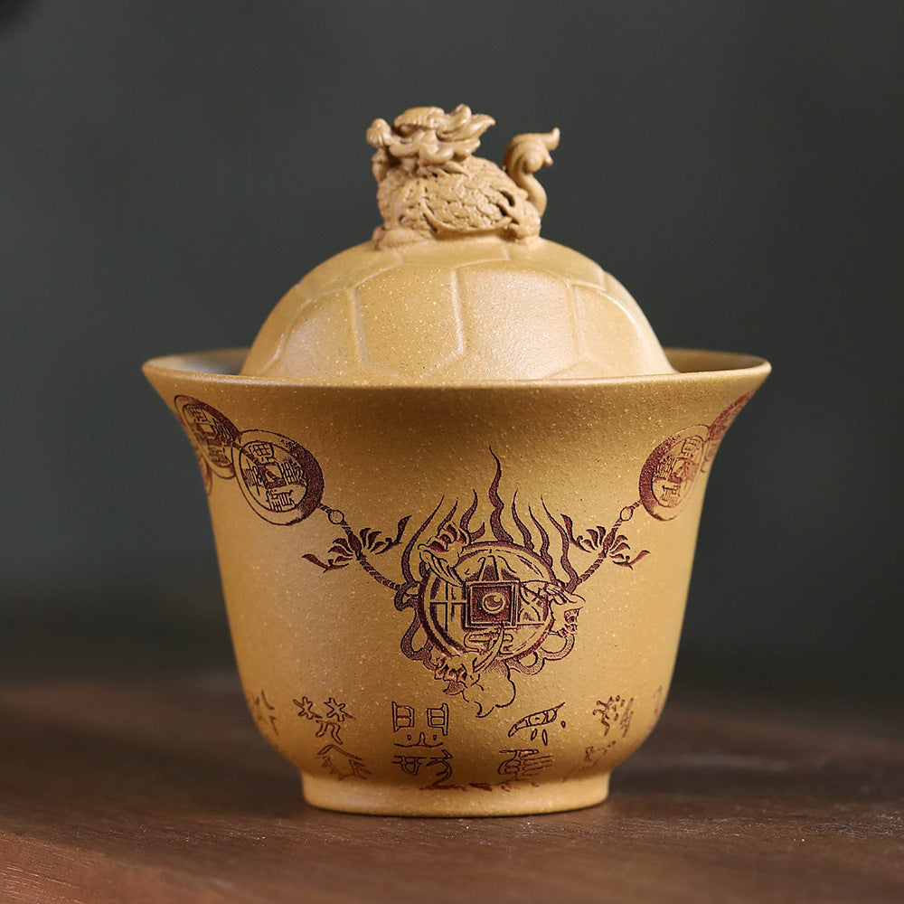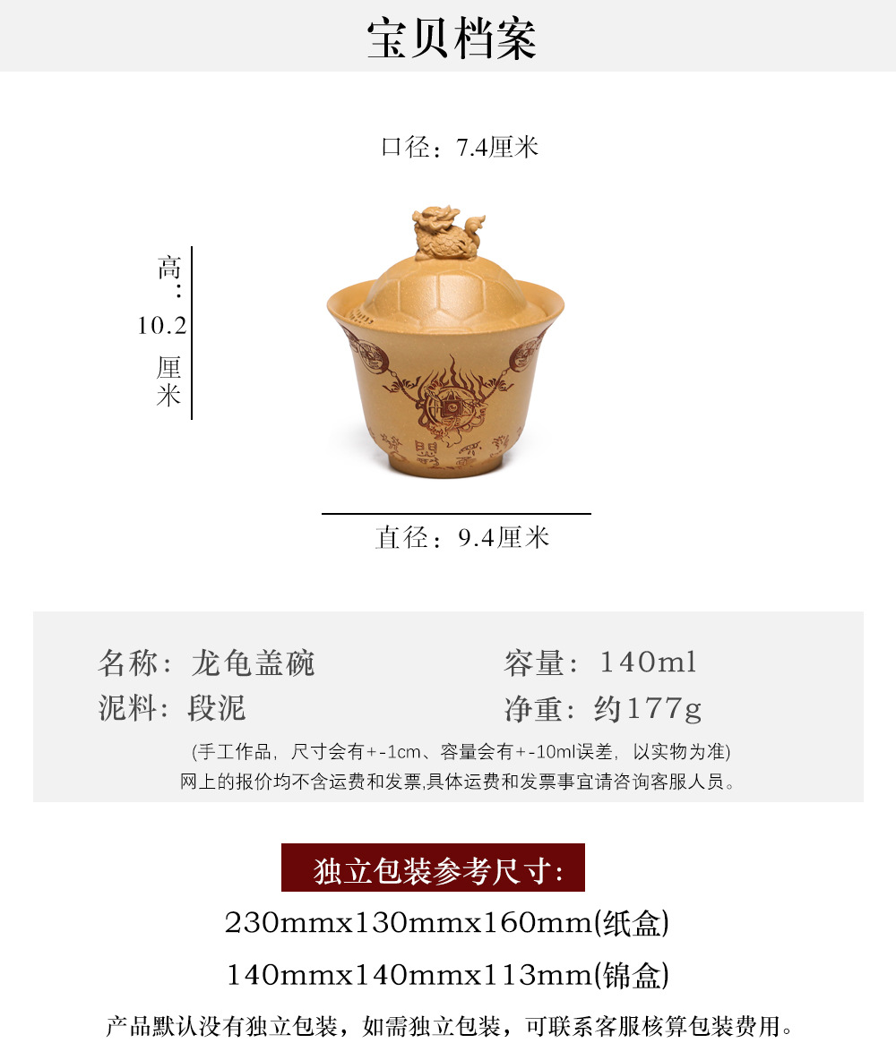 紫砂富甲一方盖碗140CC宜兴三才盖碗茶碗敬茶碗龙龟盖碗茶具套装配件