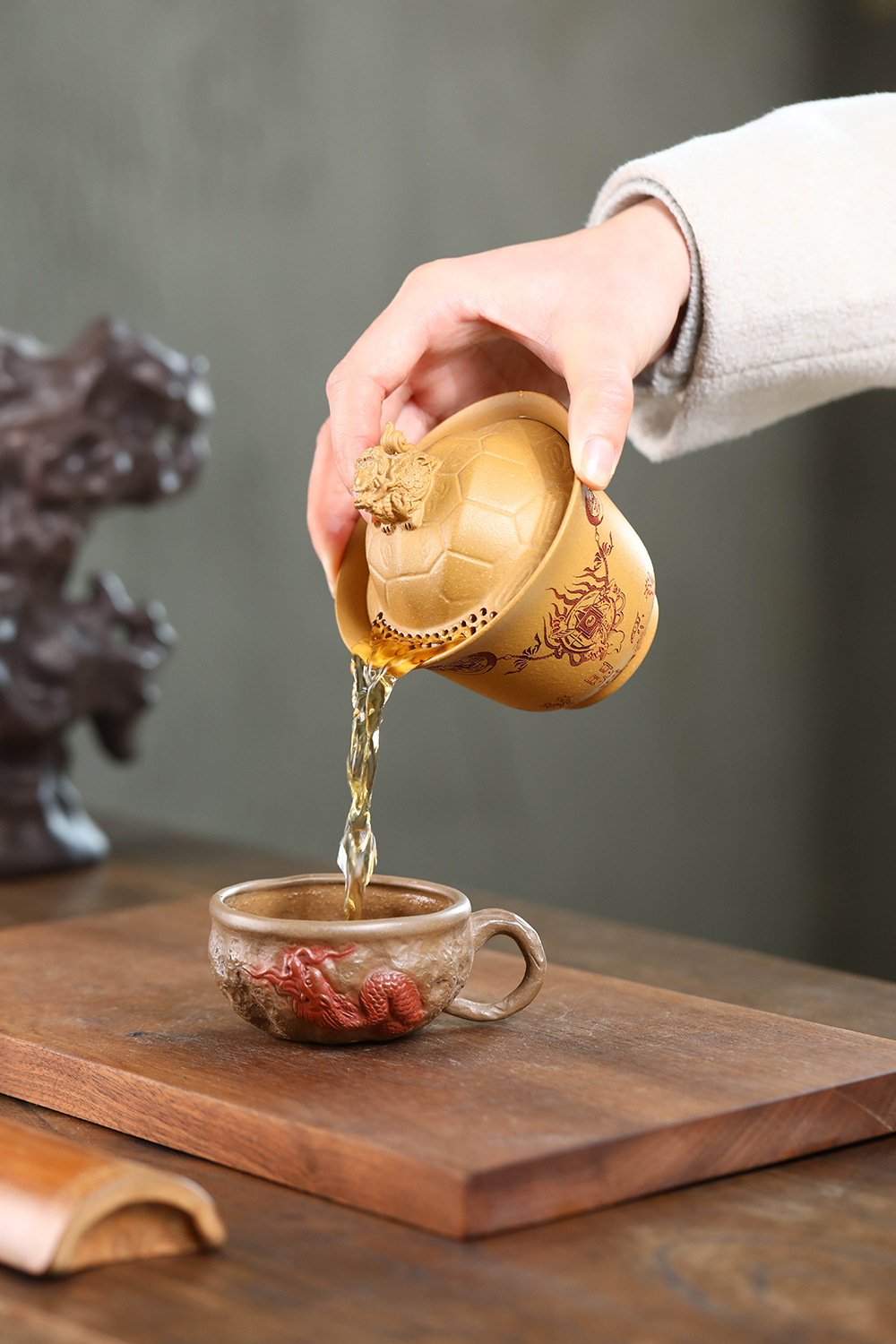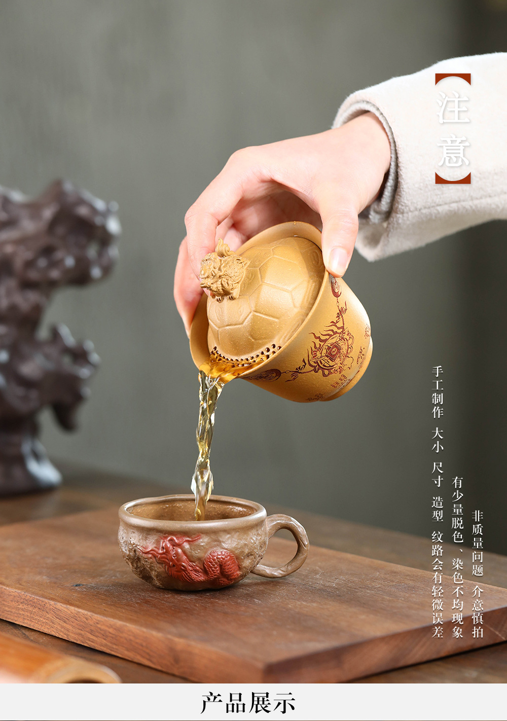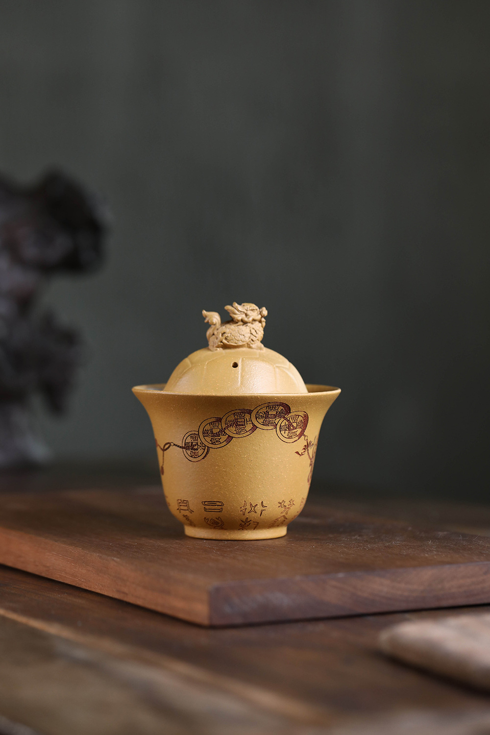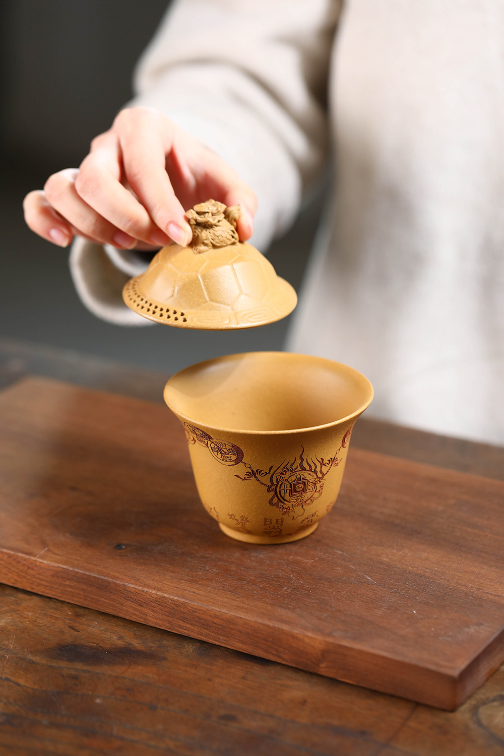 紫砂富甲一方盖碗140CC宜兴三才盖碗茶碗敬茶碗龙龟盖碗茶具套装配件